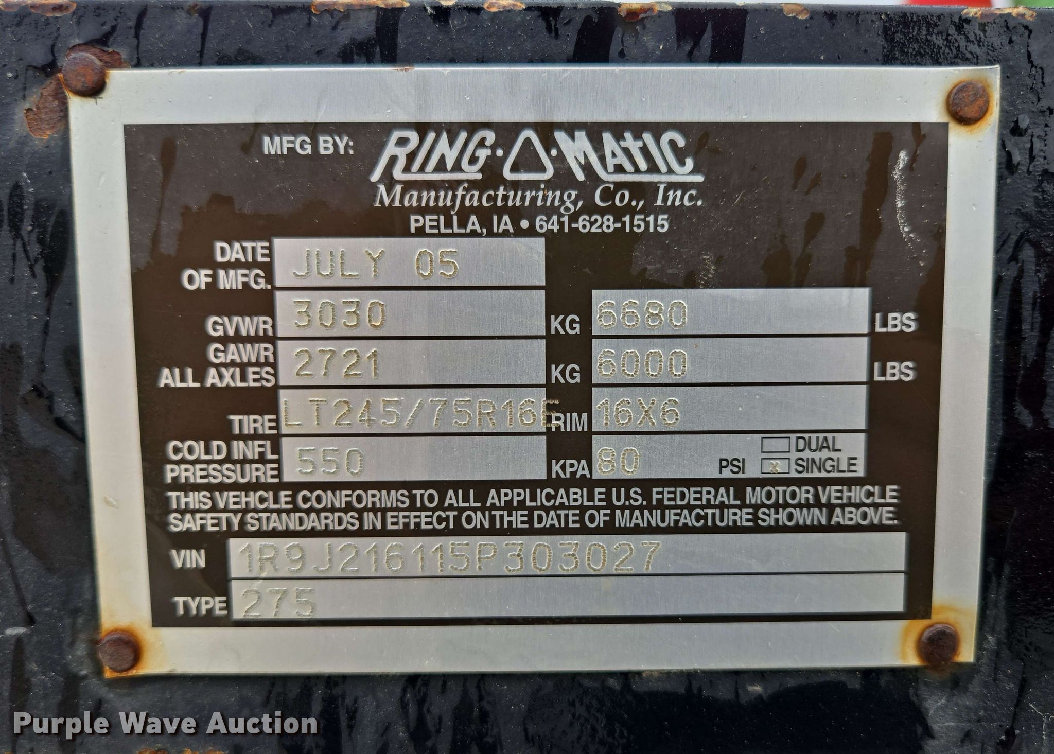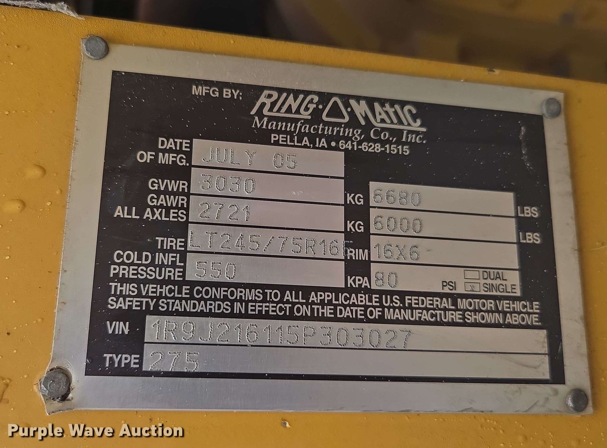 Purple Wave is selling a used Vacuum Excavator in Arkansas. This item is a 2005 Vermeer Ring-O-Matic 275 vacuum excavator with the following: Hours: 123 on meter, VIN: 1R9J216115P303027, Unit #: 0002