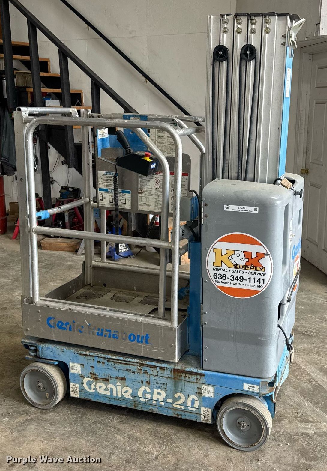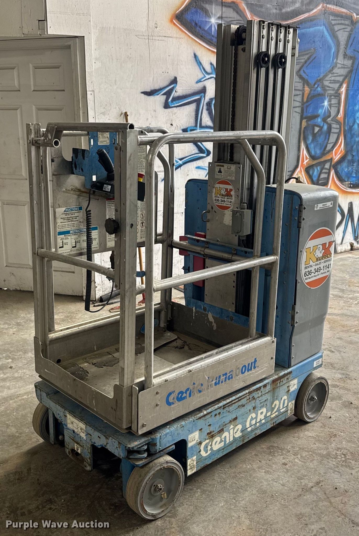 Purple Wave is selling a used Scissor or Vertical Lift in Missouri. This item is a 2012 Genie GR-20 vertical lift with the following: Hours: 181 on meter, Serial: GR12-21437