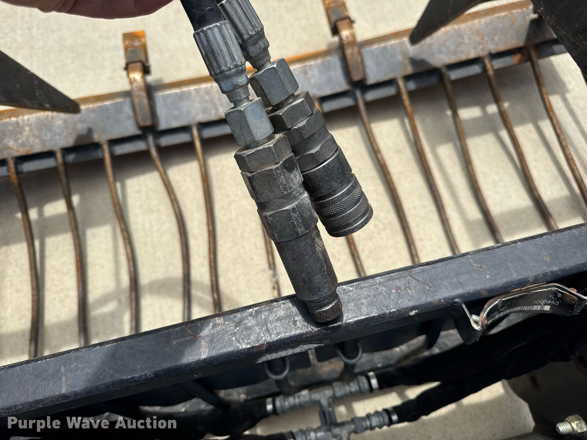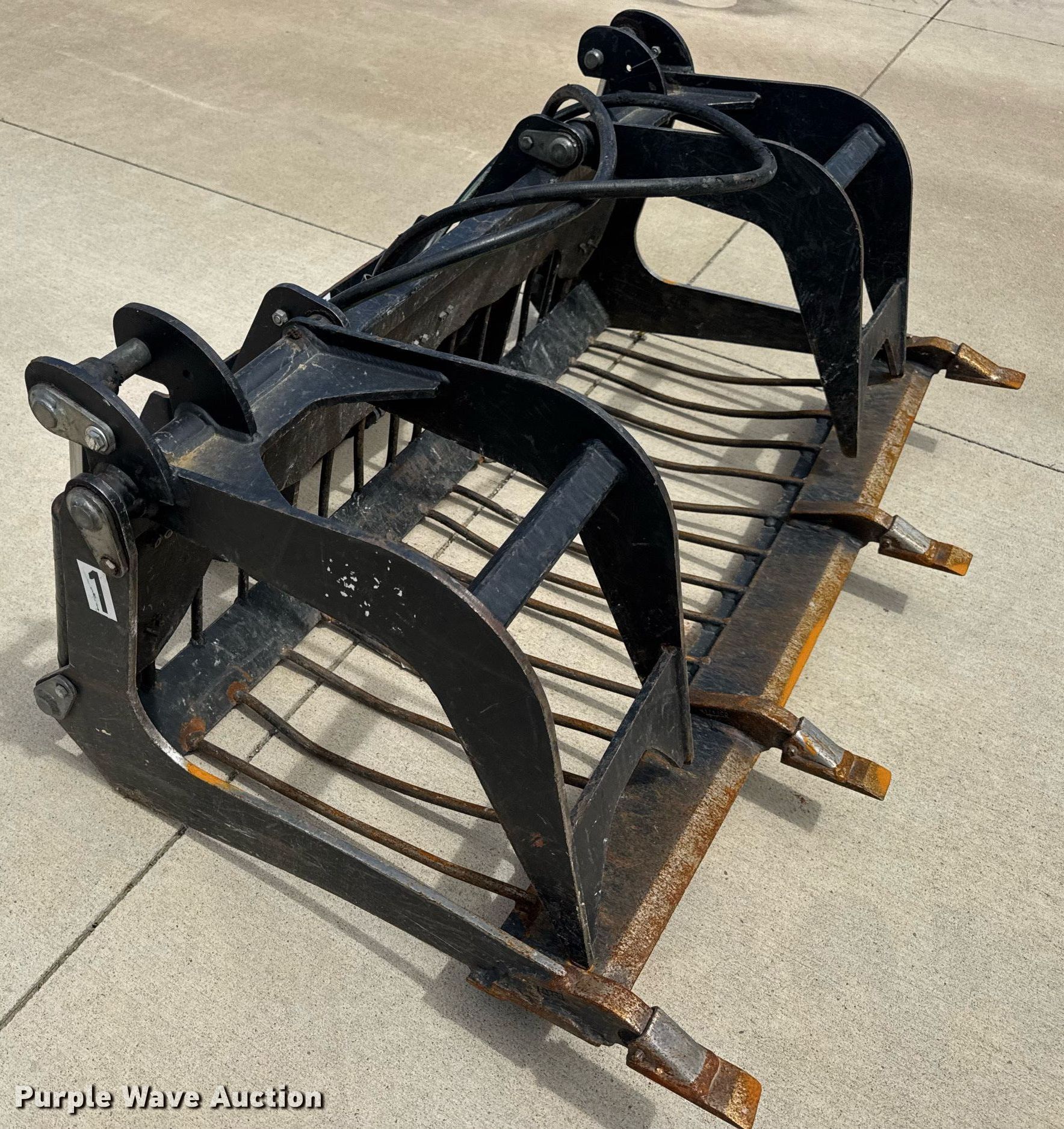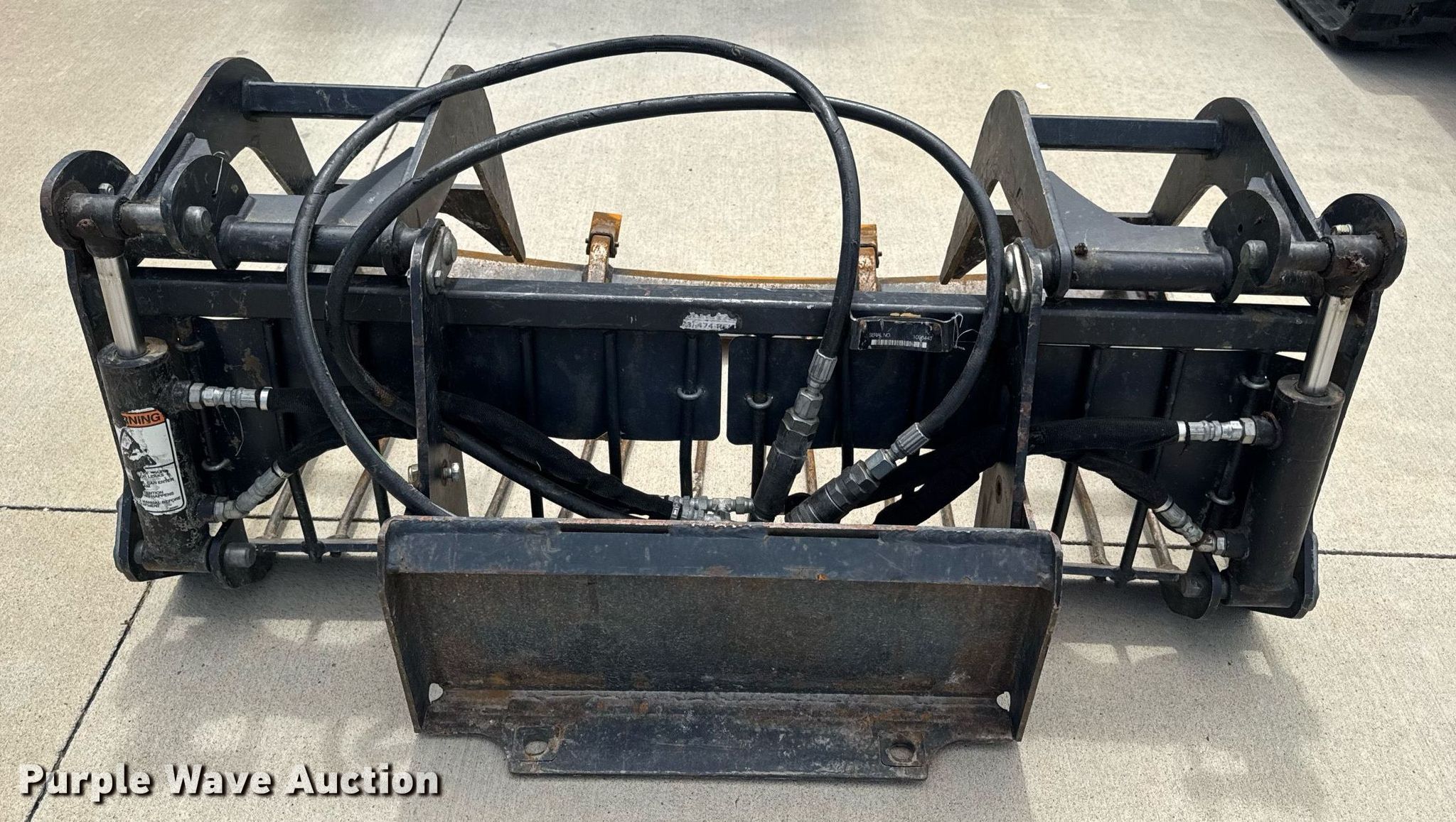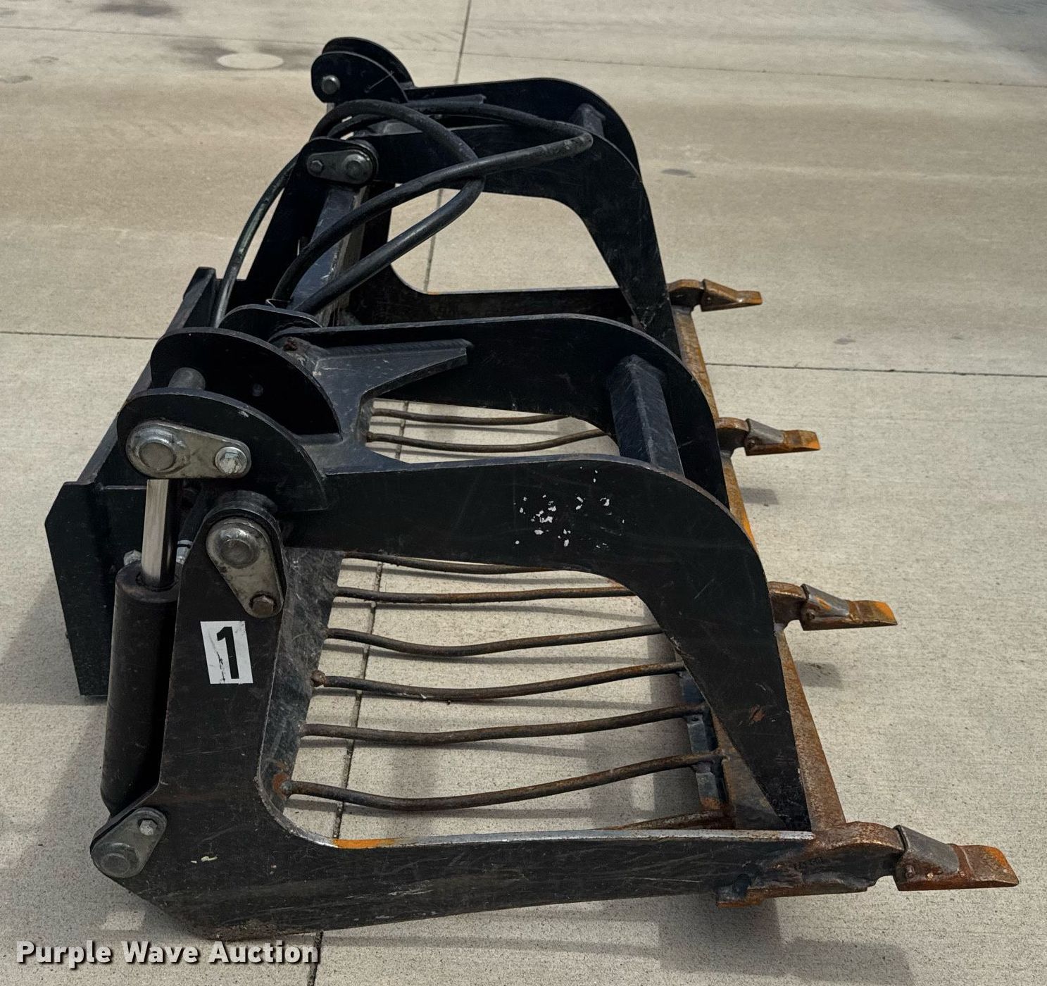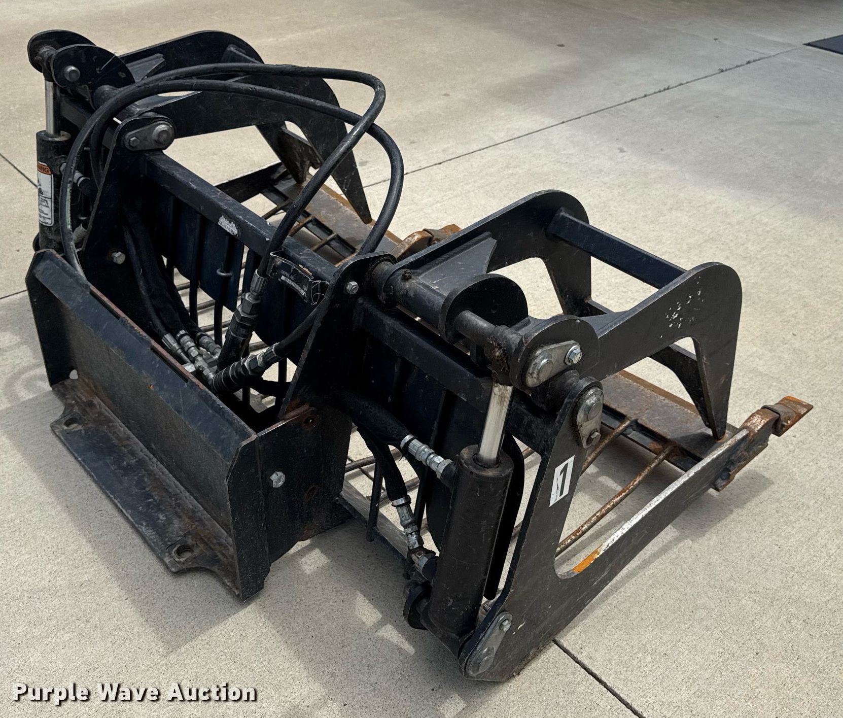 Purple Wave is selling a used Skid Steer Attach. in Missouri. This item is a Compact utility loader grapple bucket with the following: Serial: 1096443, Unit #: 1, Width: 49 1/2", Bucket damaged, bent
