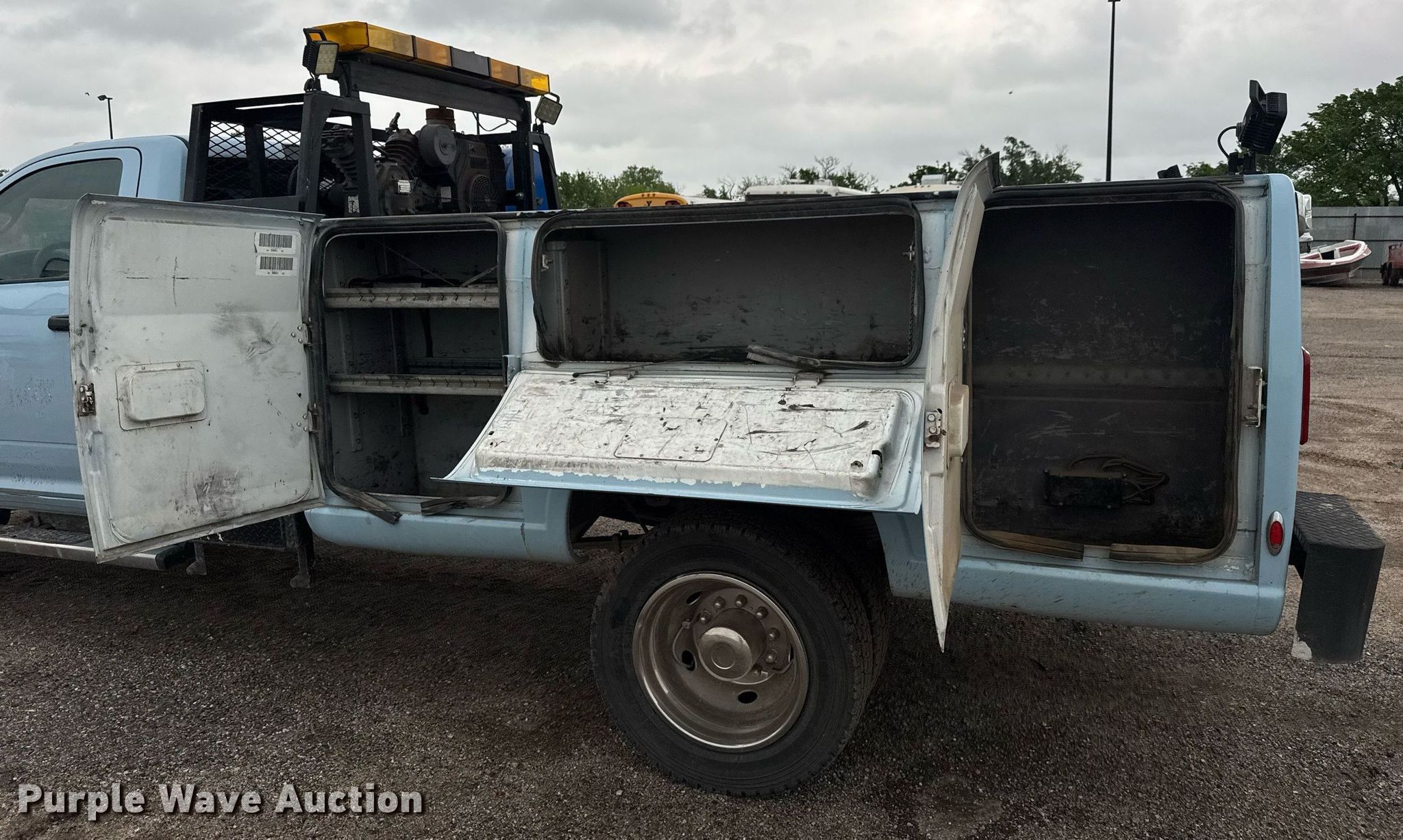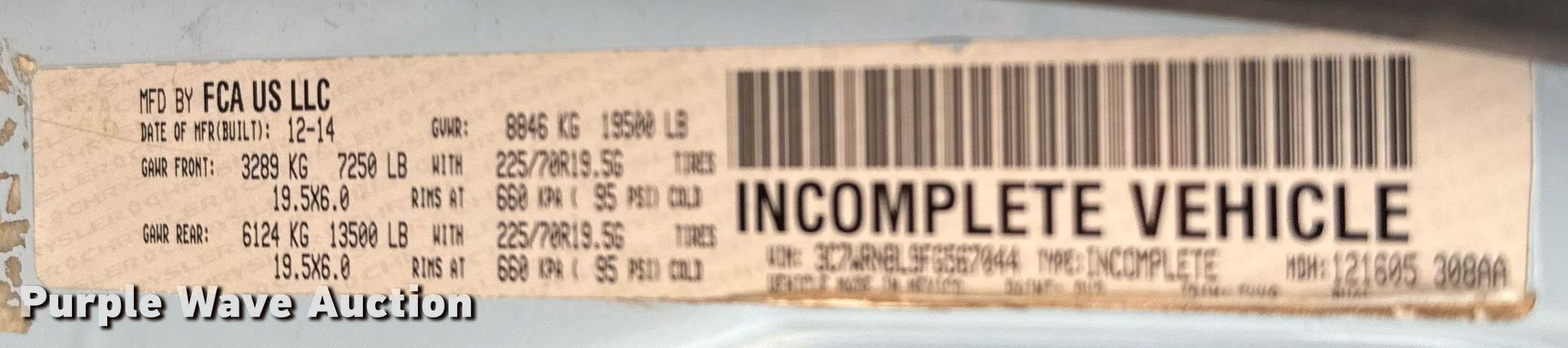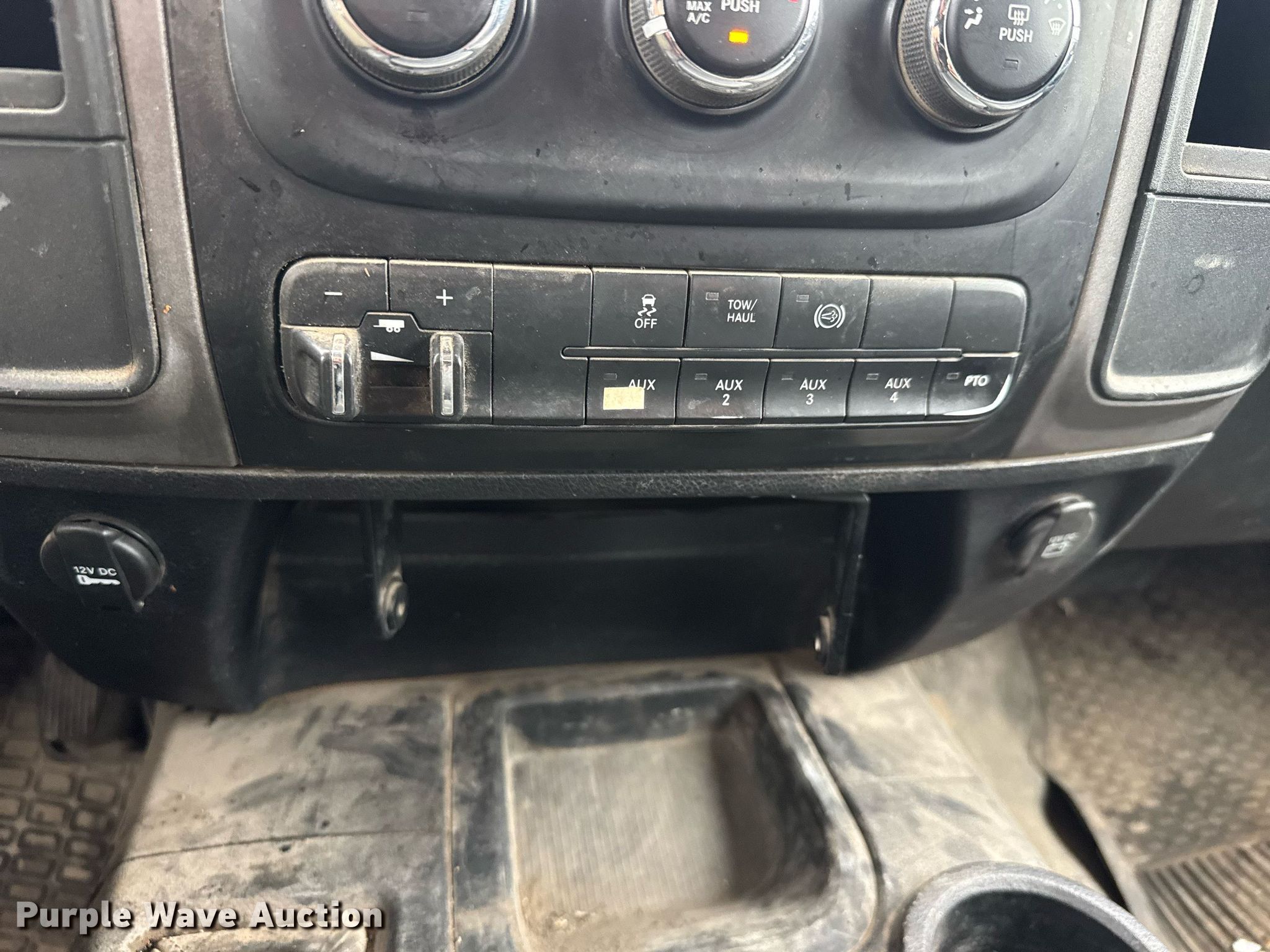 2015 Dodge Ram 5500 utility / service truck. Miles: 246,541 on odometer, VIN: 3C7WRNBL9FG567044, Unit #: 7044. Engine Cummins, Displacement: 6.7L, Cylinders: 6, Fuel type: Diesel. Transmission Automatic. Chassis Four wheel drive, Axles: Single, Suspension: Spring, Brakes: Hydraulic, GVWR: 19,500 lbs. Interior AC, Heat, Heated mirrors, Power windows, Power locks, Cruise control, Auxiliary controls, Brake controller. Features Bed 9' 1" L x 93" W, Air compressor Ingersoll Rand 2475, Kohler Command Pro 12.5.. Tires Size: 255/70R19.5. Notes Dash warning indicator: Check engine, Traction control, Service 4WD, Windshield chipped or cracked, PTO removed, Air compressor disconnected. Kansas title. Title distribution may be delayed up to 14 days from verification of funds. Tow Service Inc. Wichita, KS 67216