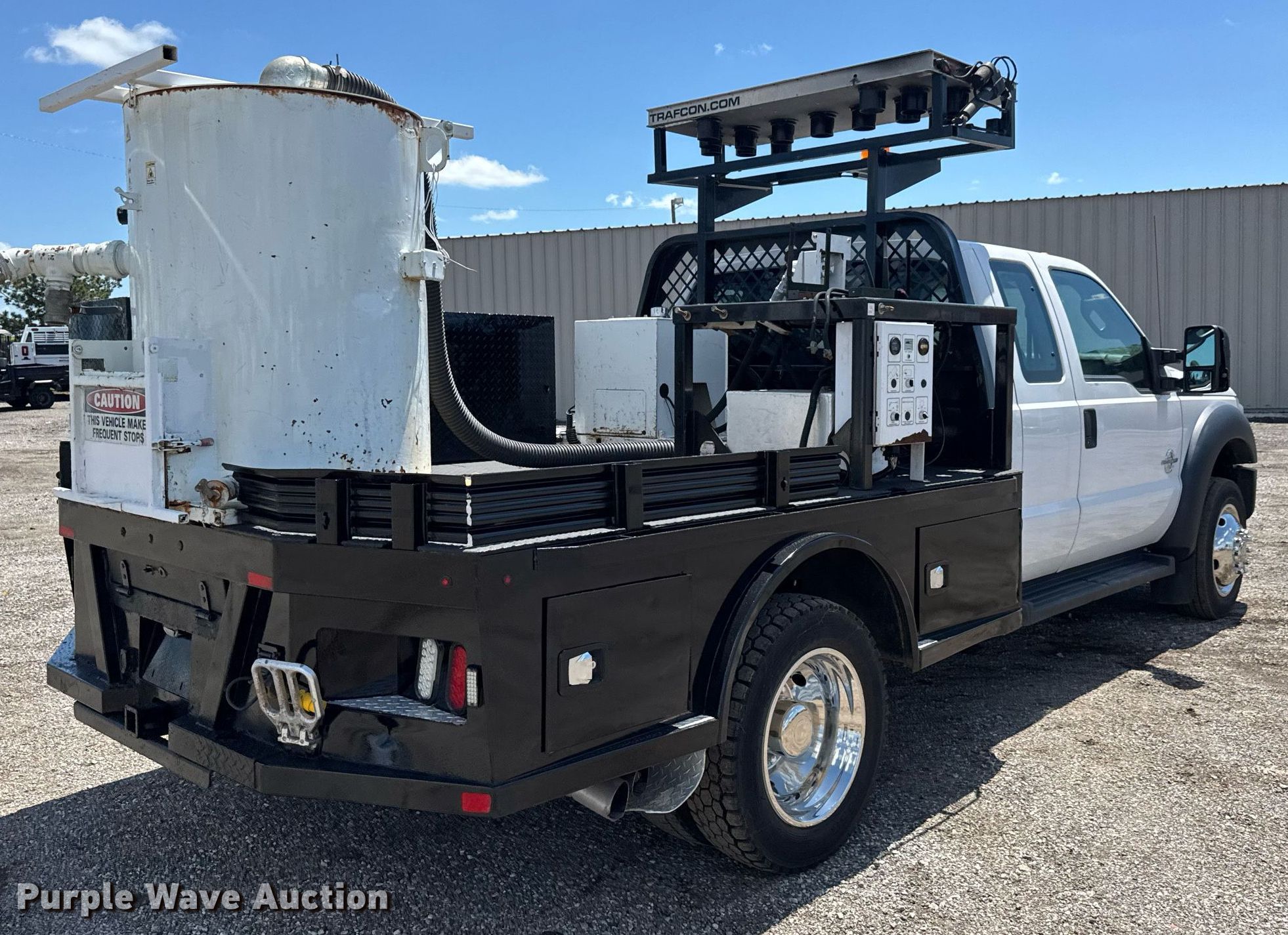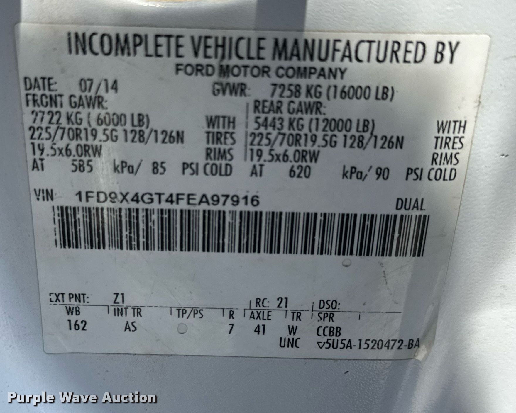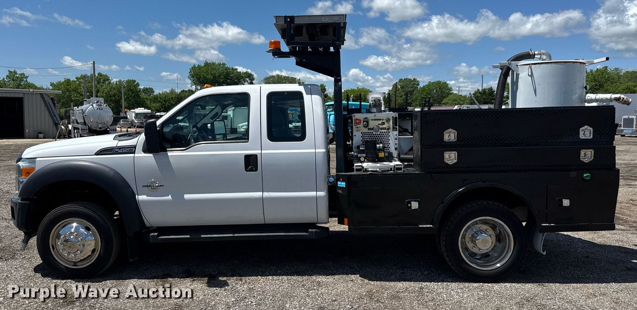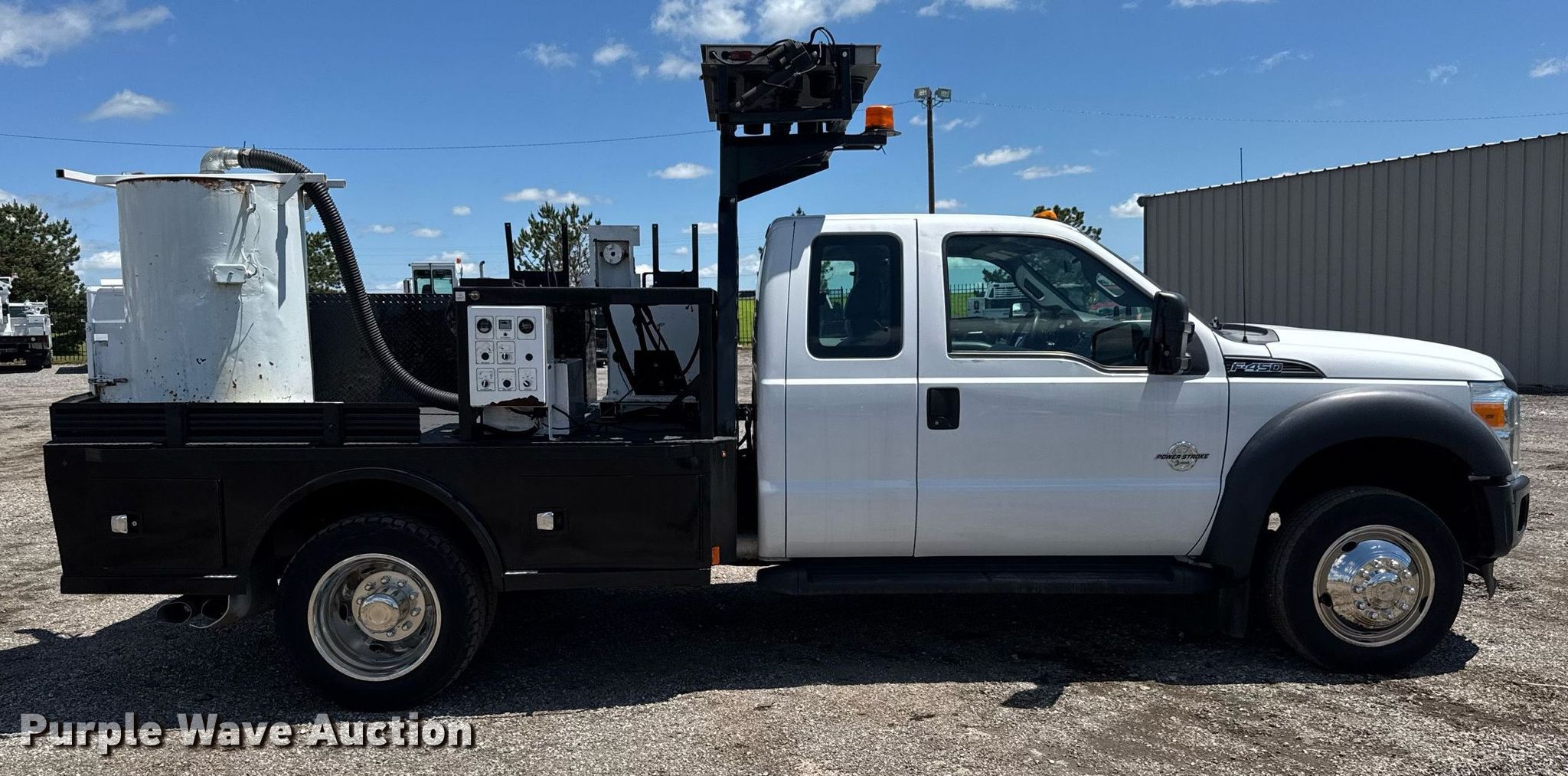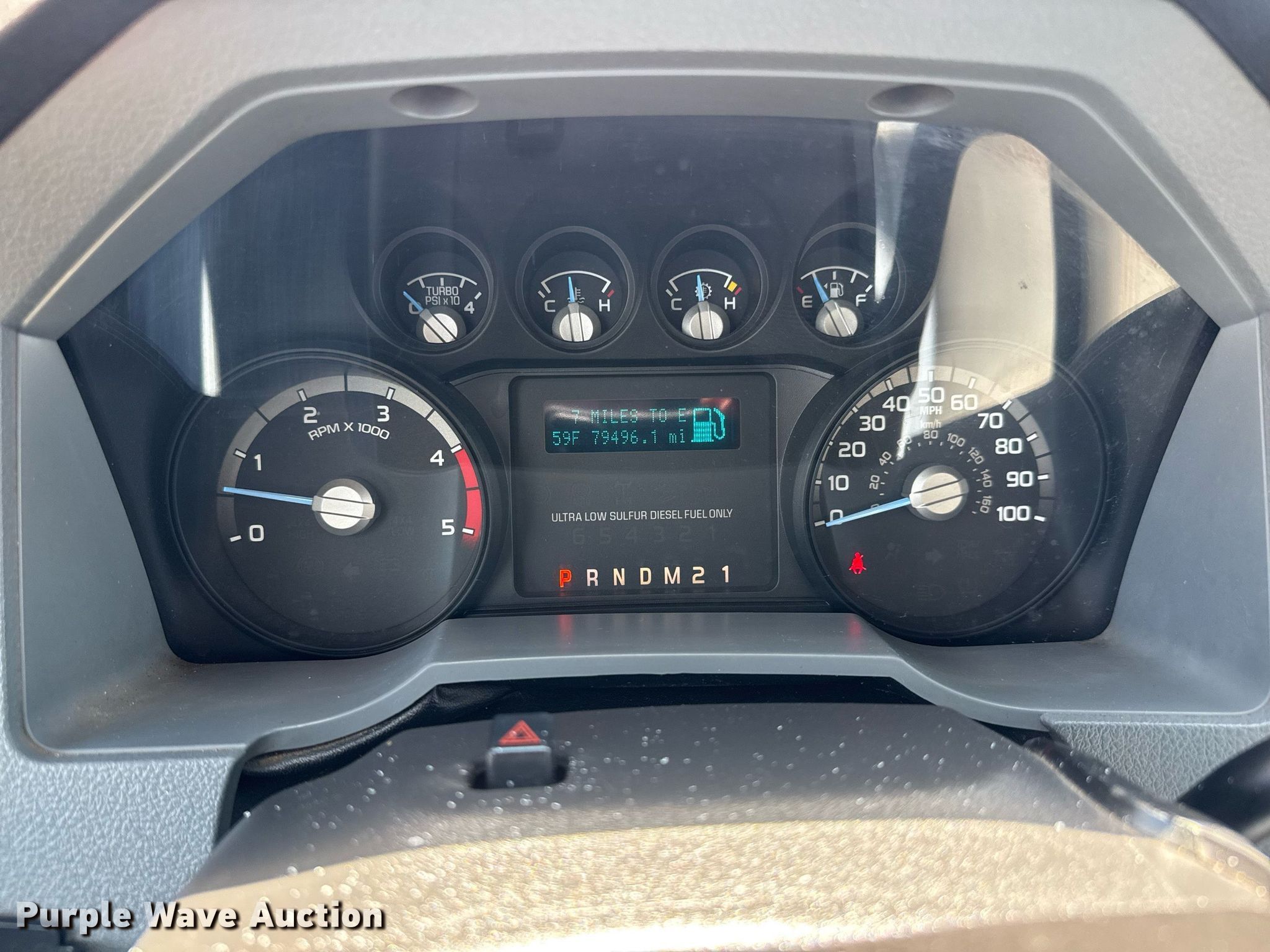 2015 Ford F450 Super Duty SuperCab flatbed truck. Miles: 79,496 on odometer, VIN: 1FD9X4GT4FEA97916. Engine Ford, Displacement: 6.7L, Cylinders: 8, Fuel type: Diesel. Transmission Automatic. Chassis Axles: Single, Suspension: Spring, Brakes: Hydraulic, GVWR: 16,000 lbs. Interior AC, Heat, Cruise control, Auxiliary controls. Features Flatbed Knapheide PGNC-96A, 9' 6" L x 92" W, Wachs TM-7 valve exerciser, Vacuum excavator, Trafcon arrow board. Tires Size: 225/70R19.5. Notes Arrow board controls missing. Oklahoma title. Seller is an Oklahoma licensed motor vehicle dealer. Title will be assigned and distributed by the dealer. Please contact the seller for distribution questions. Title distribution may be delayed up to 30 days from verification of funds. Collinsville, OK 74021