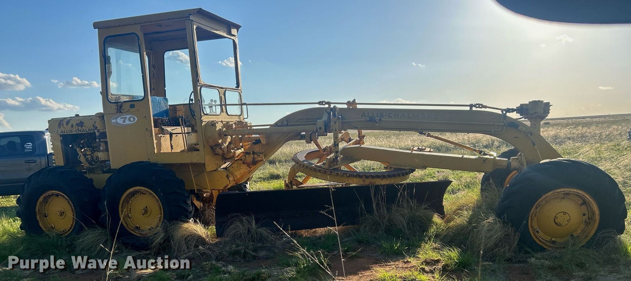 Purple Wave is selling a used Motor Grader in New Mexico. This item is a Allis-Chalmers M70 rigid frame motor grader with the following: Hours: 1,144 on meter