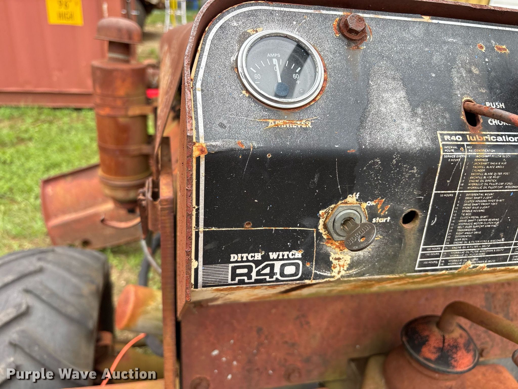 Purple Wave is selling a used Trencher or Rock Saw in Texas. This item is a 1979 Ditch Witch R40 trencher with the following: Hours: 1,820 on meter, Serial: 407430