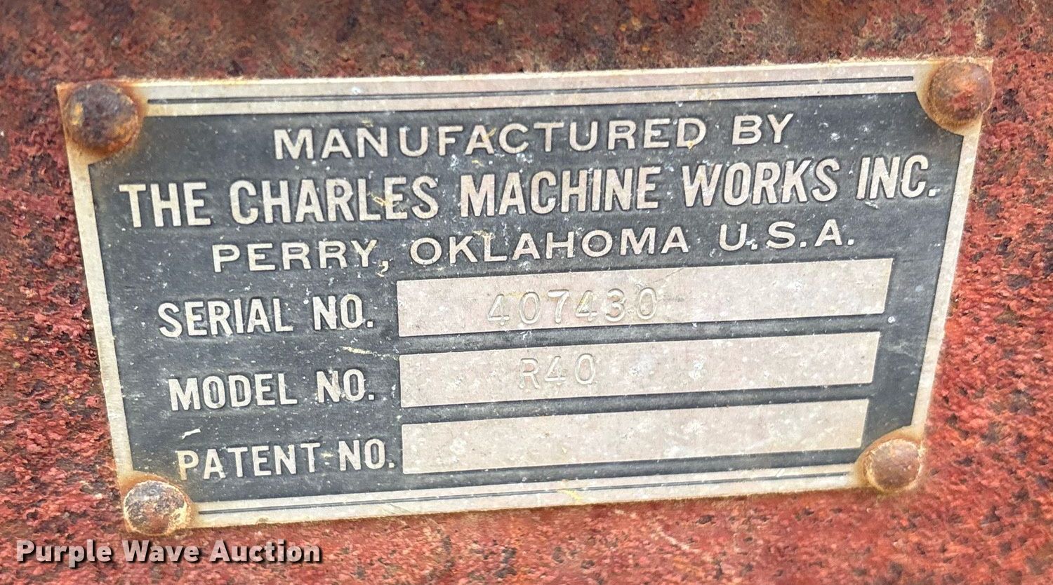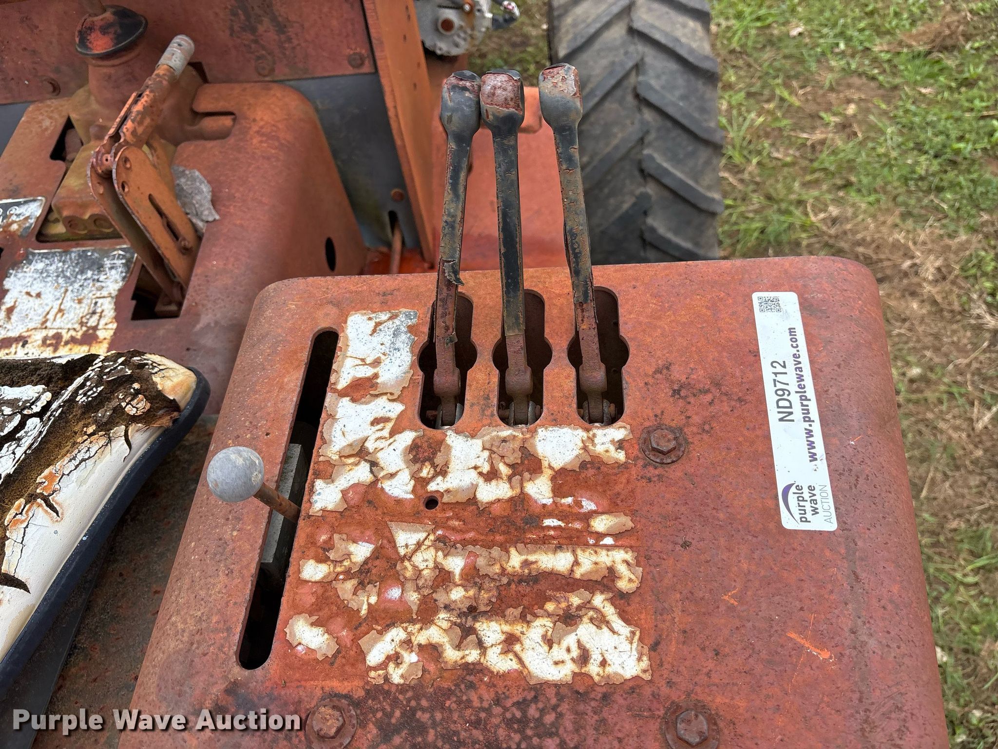 1979 Ditch Witch R40 trencher. Hours: 1,820 on meter, Serial: 407430. Engine Cylinders: 4, Fuel type: Gas. Transmission Manual, 4F - 1R, Four wheel drive. Features Trencher Estimated dig depth: 84", Cutting width: 5", Teeth: Dirt, Manual crumber, Backfill blade Width: 72". Tires Front: 29x12.50-15NHS. Notes Dead battery, Tires may need replaced. Elkhart, TX 75839