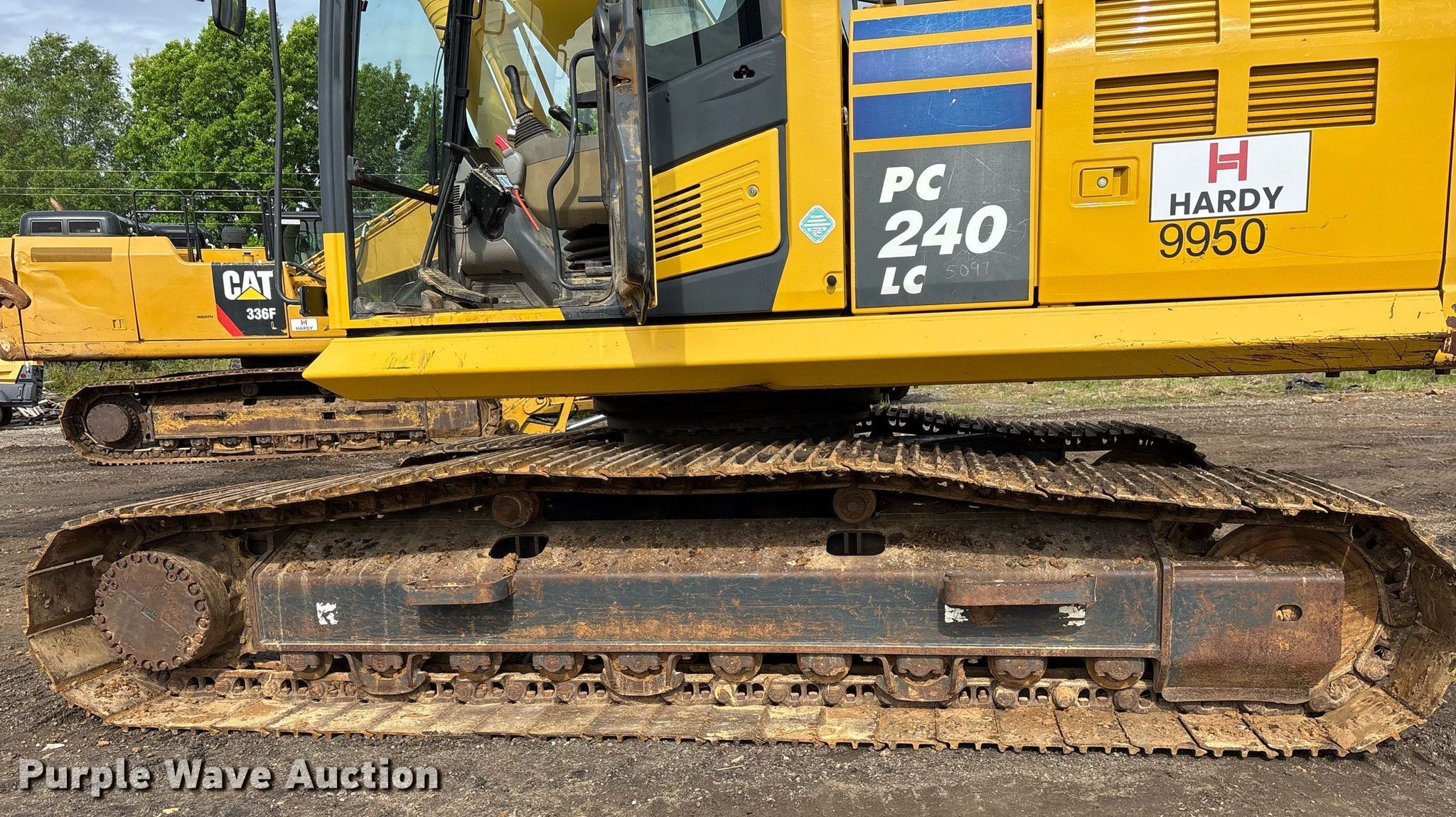 2016 Komatsu PC240LC-11 excavator. Hours: 4,664 on meter, Serial: KMTPC252VFC095097, Unit #: 9950. Engine Komatsu, Displacement: 6.7L, Cylinders: 6, Fuel type: Diesel. Transmission Hydrostatic, Three speed travel. Operators station Enclosed cab, AC, Heat, Backup camera, Pattern changer. Features Auxiliary hydraulics Two-way, Boom Standard, Stick Stick length: 10', Quick coupler: Hydraulic Strickland, Thumb: Hydraulic, Bucket Width: 48", Cutting edge: Bolt-on, Teeth: 6. Tracks Width: 32.5", Steel, Grouser pads: Triple. View repairs. Hardy Holding Group. Humphrey, AR 72073