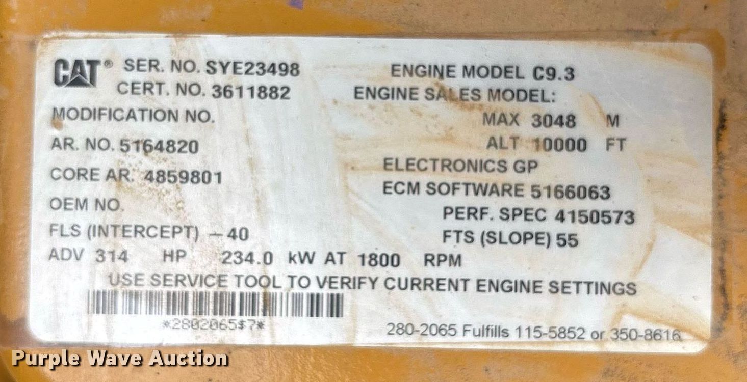 2018 Caterpillar 336F excavator. Hours: 9,279 on meter, Serial: CAT0336FPRKB20274, Unit #: 9953. Engine Caterpillar C9.3, Displacement: 9.3L, Cylinders: 6, Fuel type: Diesel. Transmission Hydrostatic, Two speed travel. Operators station Enclosed cab, AC, Heat, Backup camera. Features Auxiliary hydraulics Two-way, Boom Standard, Stick Stick length: 12' 6", Quick coupler: Hydraulic Caterpillar, Bucket Width: 41", Cutting edge: Bolt-on, Teeth: 4. Tracks Width: 33.5", Steel, Grouser pads: Triple. View repairs. Hardy Holding Group. Humphrey, AR 72073