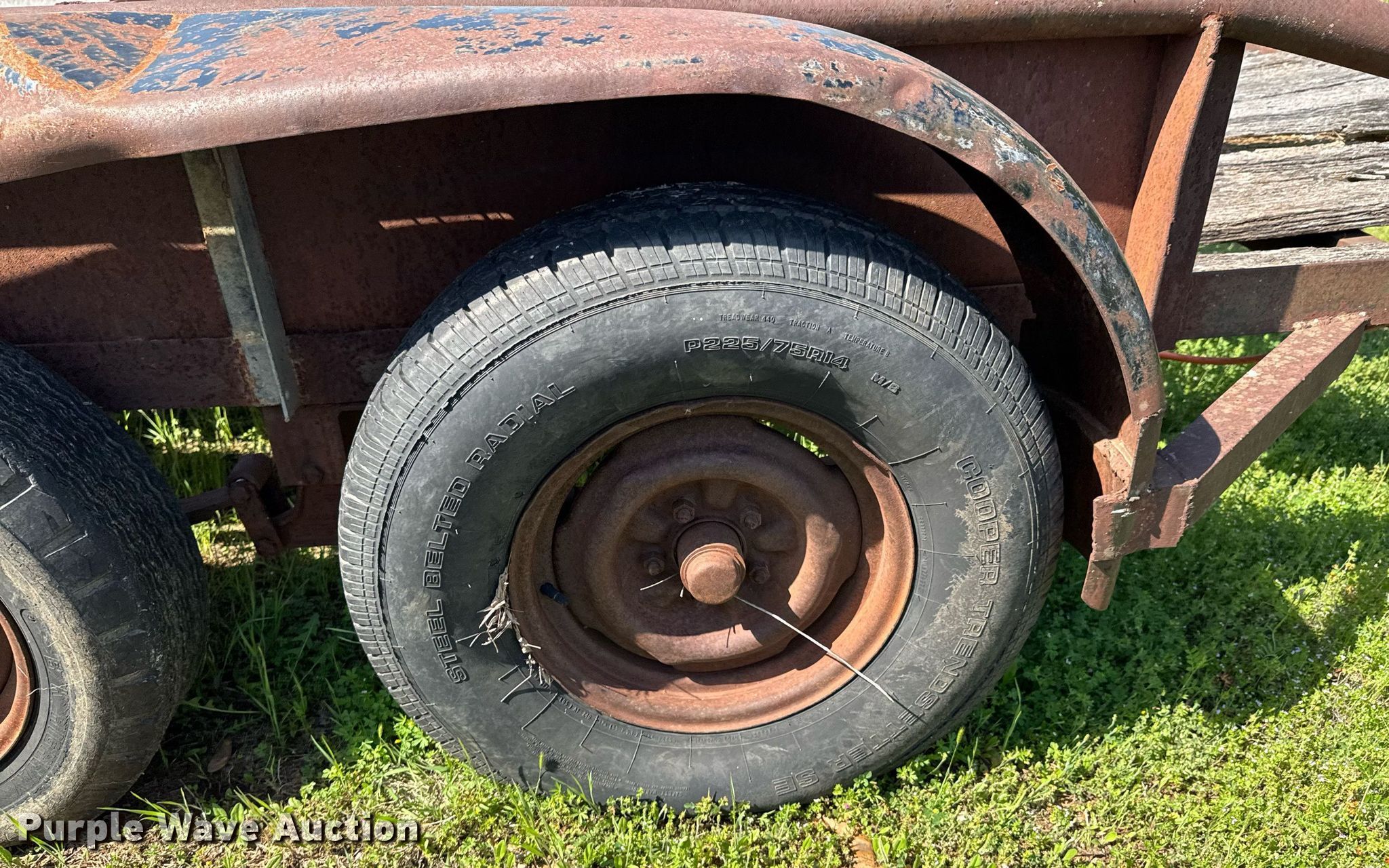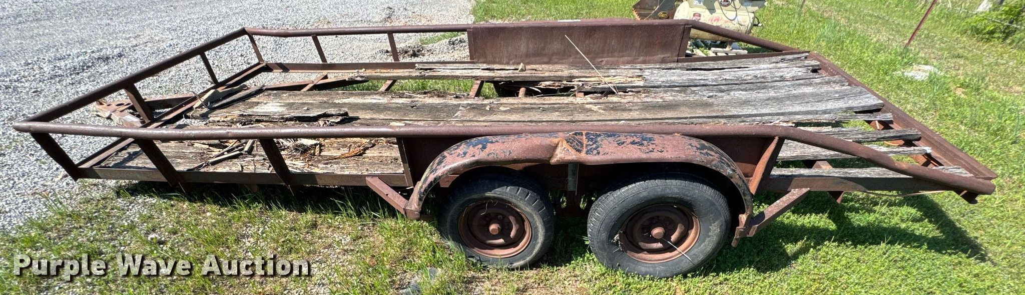 Shop built utility trailer. VIN: B1171A41. Dimensions Overall: 19' L x 98" W, Deck: 16' L x 76" W. Features Deck type: Wood. Chassis Ball hitch: 2 5/16", Suspension: Spring, Axles: Tandem. Tires Steel wheels, Size: P225/75R14. Notes Deck boards damage, Unit must be towed or hauled, Ball hitch issues, will not latch. Transfer of ownership documentation will be a bill of sale. Mayes County District 2. Chouteau, OK 74337