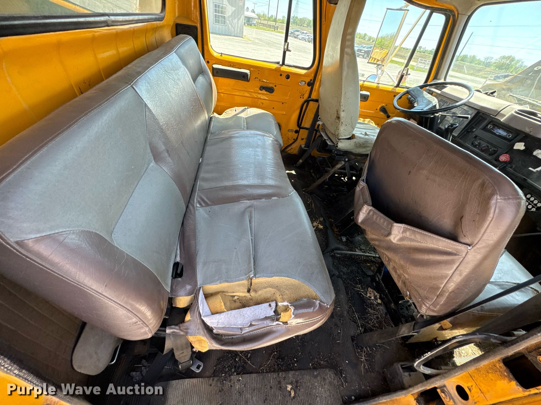 1996 International 4900 Crew Cab dump truck. Miles: 221,484 on odometer, Hours: 15,135 on meter, VIN: 1HTSDAAN8TH419705. Engine International DT466, Displacement: 7.64L, Cylinders: 6, Fuel type: Diesel. Transmission International, Manual, Speed: 7. Chassis Axles: Single, Suspension: Spring, Brakes: Air, PTO, Front mount PTO, Wheelbase: 176". Interior Heat, Heated mirrors. Features Dump bed 9' L x 96" W, Side height: 30", Bed type: Steel, Roll tarp, Ram: Single, End gate: Air operated. Tires Size: 11R22.5. Notes Possible fuel issues, requires ether to start , Front mount PTO issues, will not lower without weight, Non-operational roll tarp. Oklahoma title. Title distribution may be delayed up to 14 days from verification of funds. Mayes County District 2. Chouteau, OK 74337