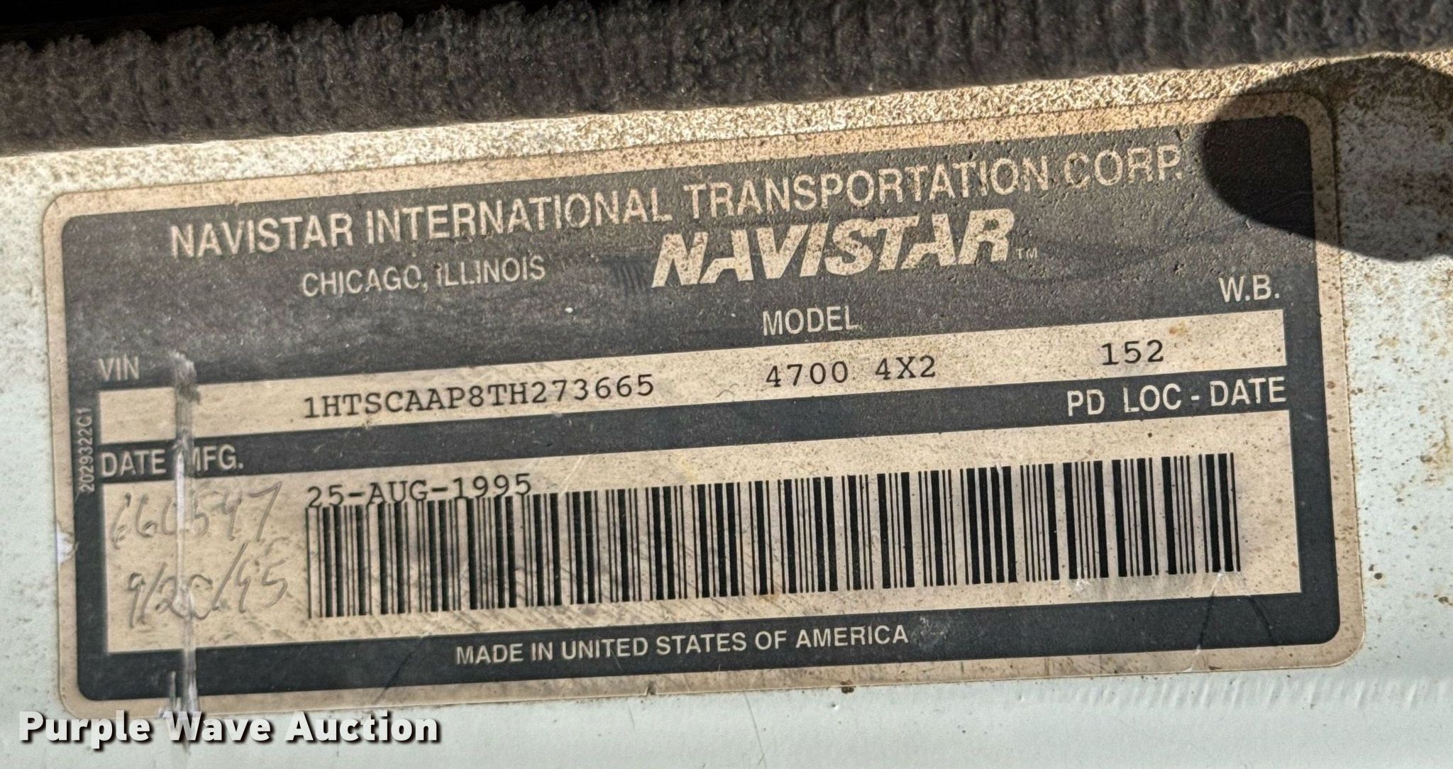 Purple Wave is selling a used Construction Dump Truck in Oklahoma. This item is a 1996 International 4700 dump truck with the following: Miles: 222,618 on odometer, VIN: 1HTSCAAP8TH273665