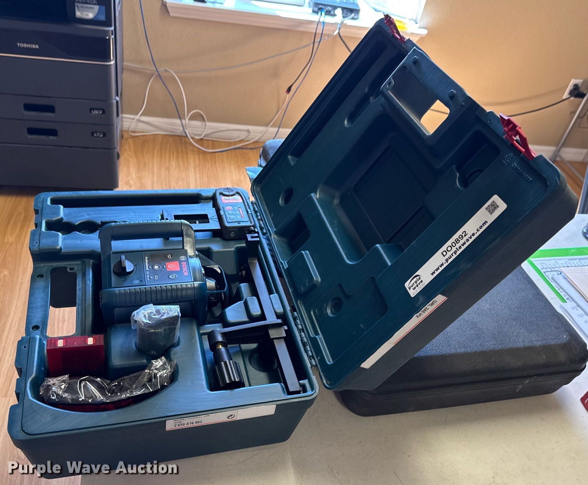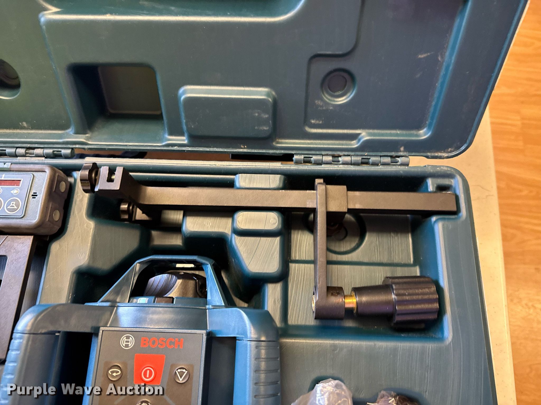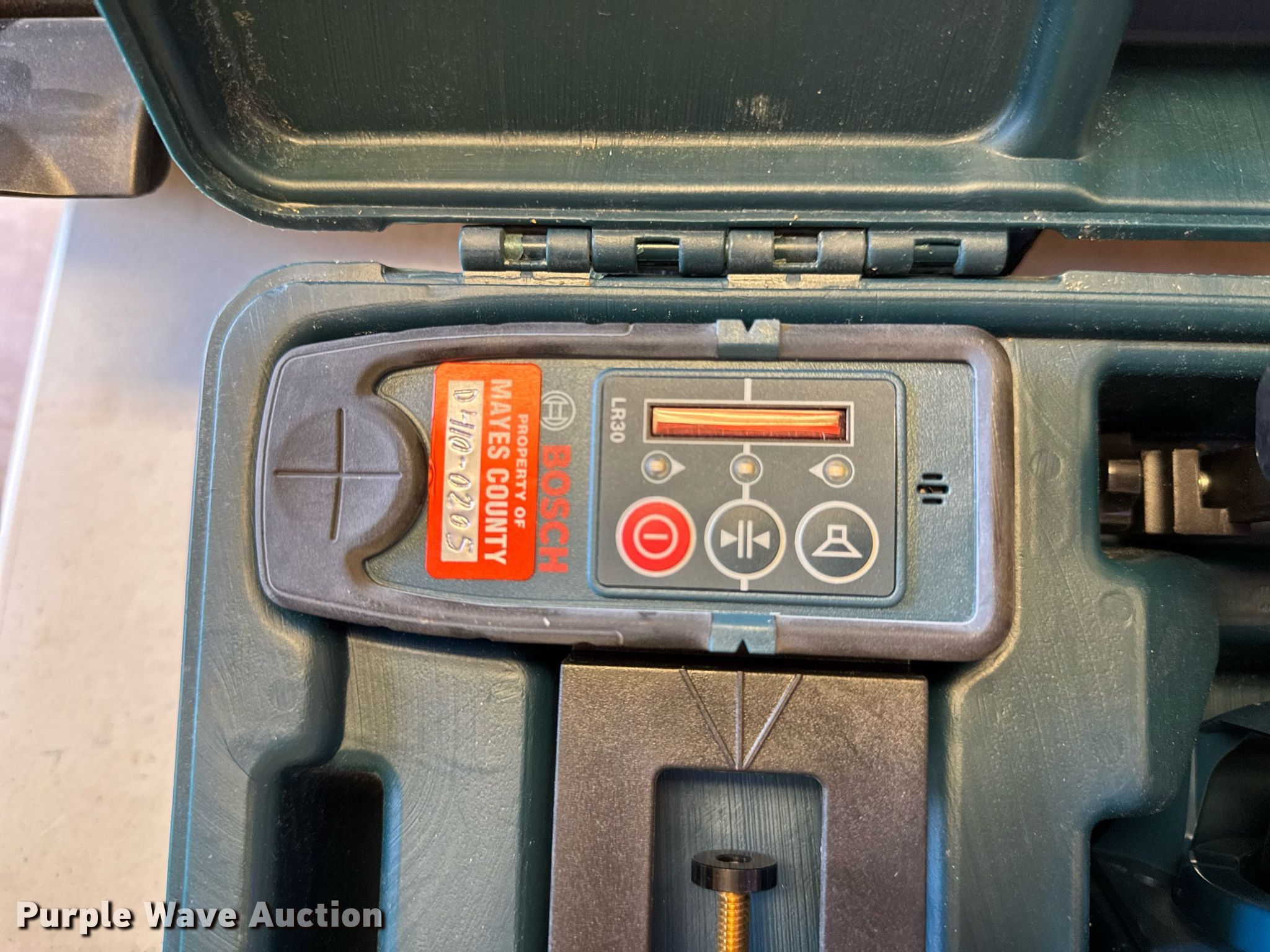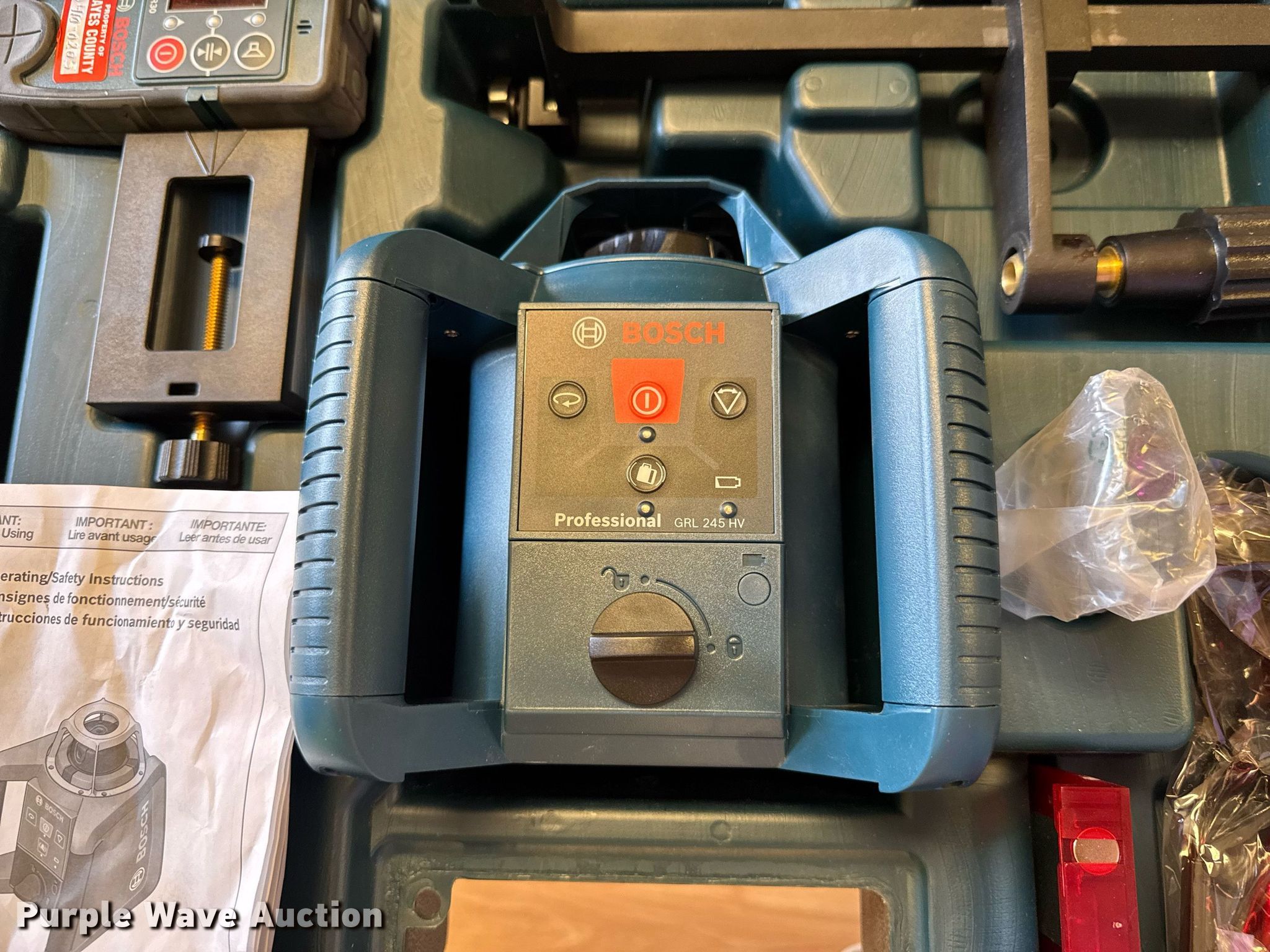 Purple Wave is selling a used Surveying Equip. in Oklahoma. This item is a Bosch GRL 245 HV self-leveling rotary laser with the following: Serial: 811107105
