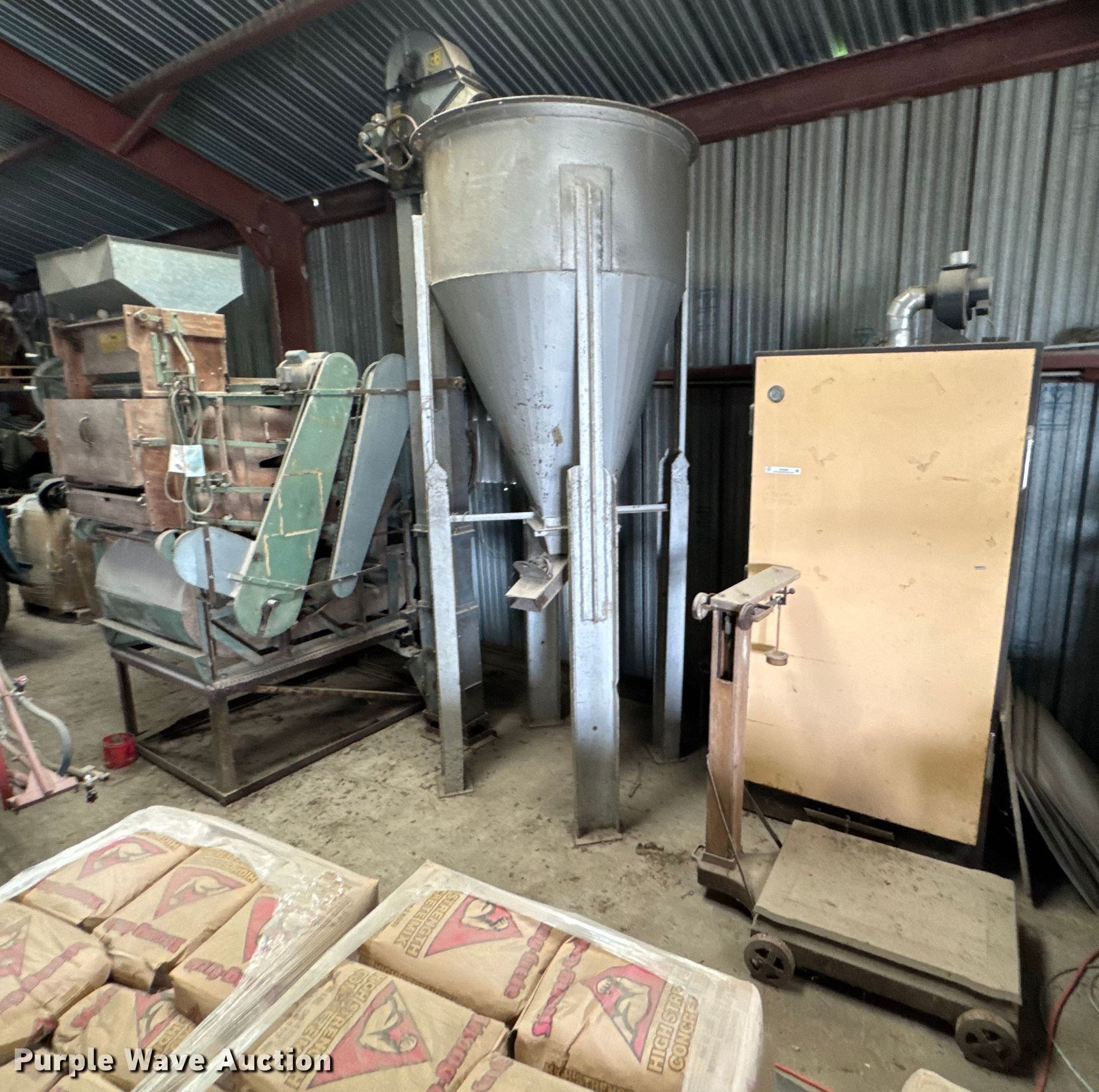 Purple Wave is selling a used Other Grain or Fertilizer Handling in Kansas. This item is a Seed handling equipment with the following: Crippen Elevator, Baldor electric motor, HP: 1.5, Phase: Single, Volt: 115/230, B2-300 holding tank, Dimensions: 87" x 42" x 32", Universal seed cleaner