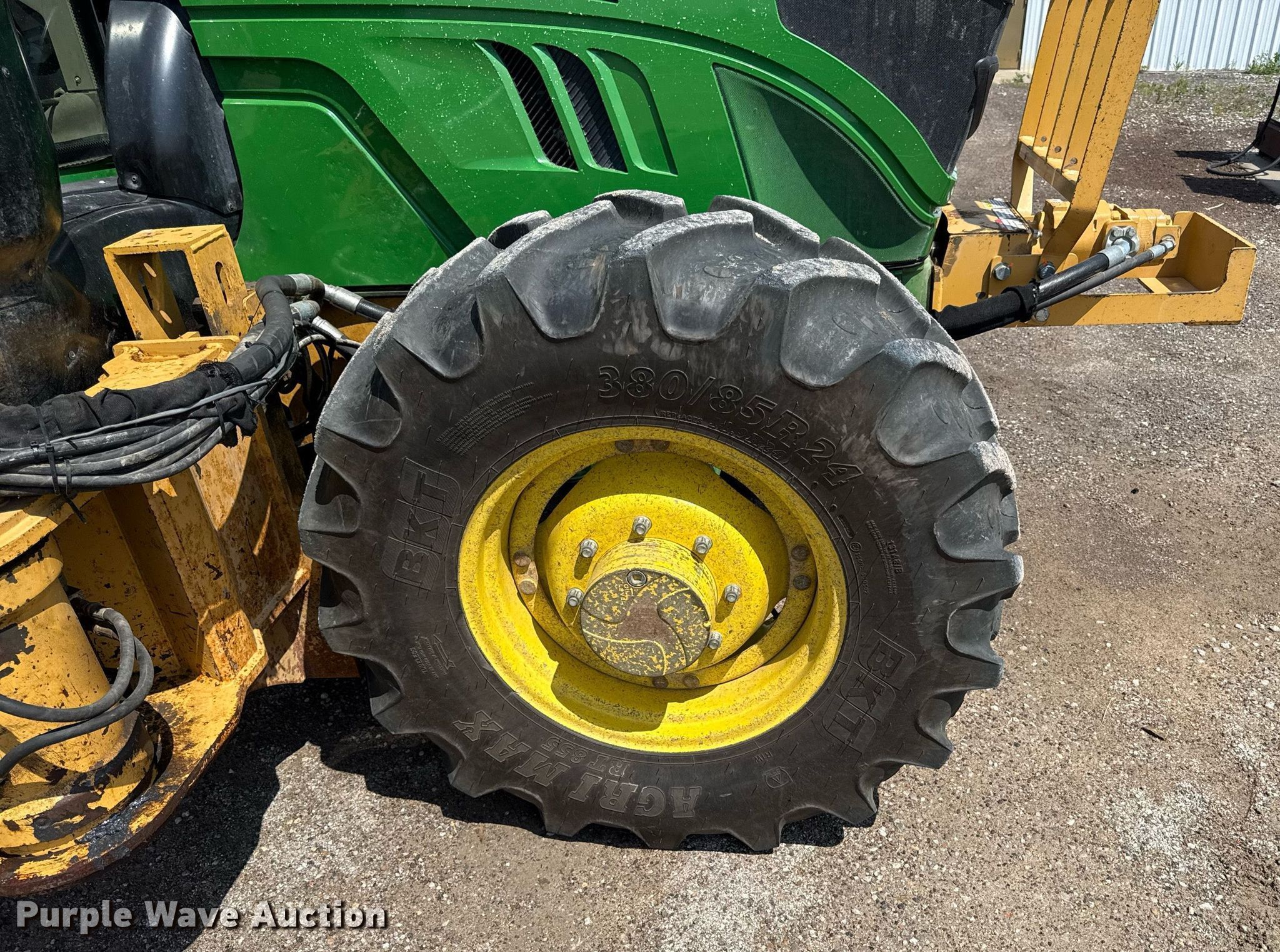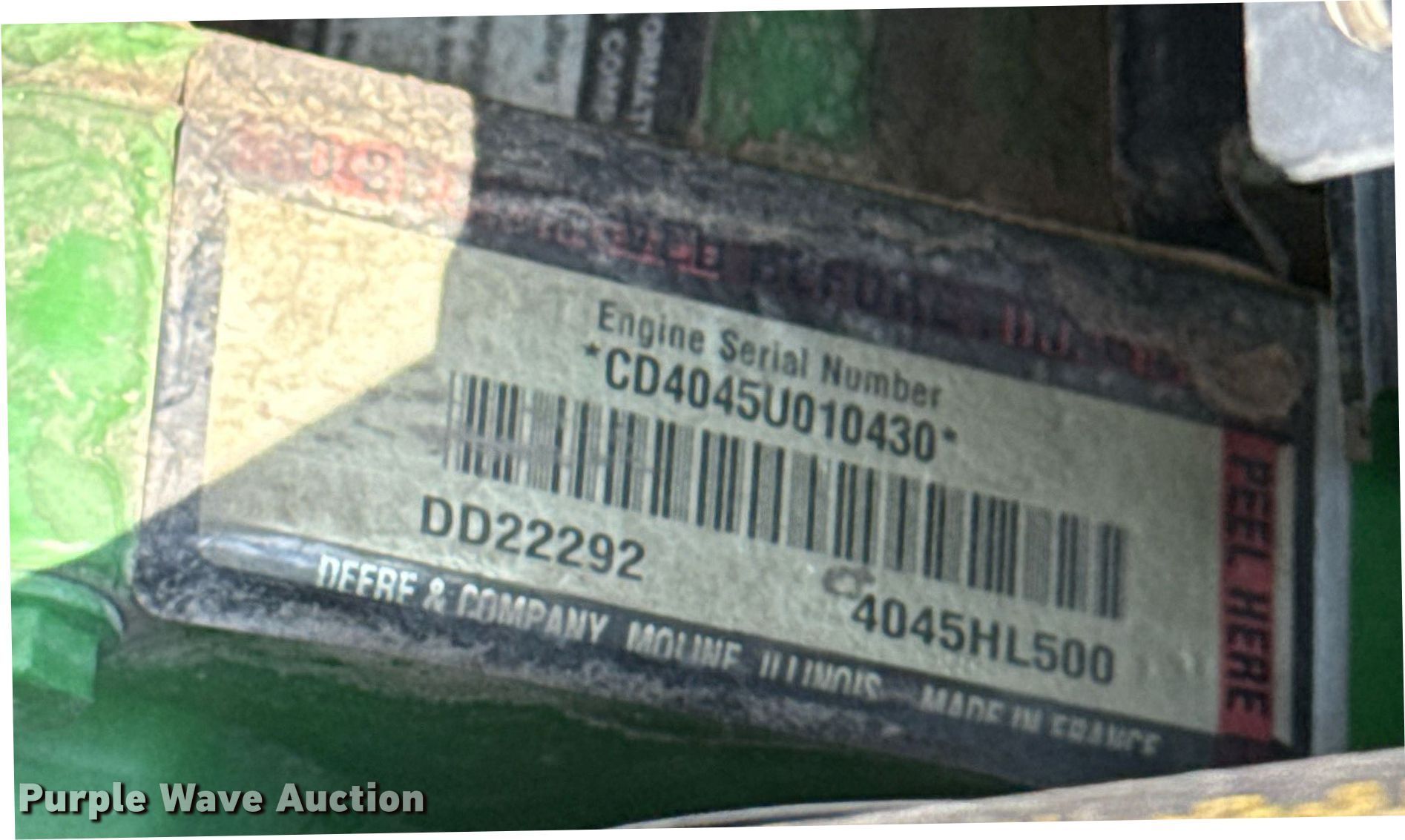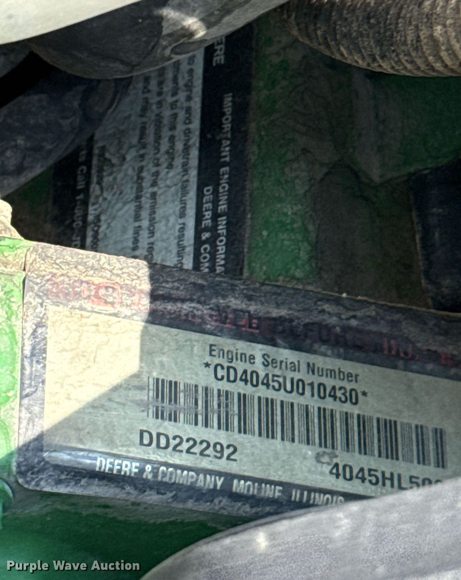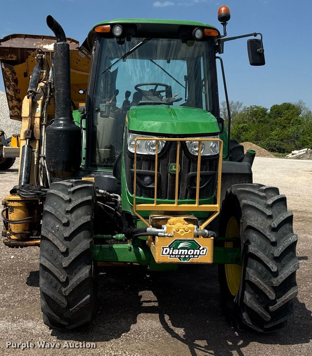 2016 John Deere 6110M MFWD tractor. Hours: 3,112 on meter, Serial: 1L06110MCGG850746. Engine John Deere, Displacement: 4.5L, Cylinders: 4, Fuel type: Diesel. Transmission Powershift, 24F - 24R, Left-hand reverser, Differential lock. Operators station AC, Heat. Features PTO: 540, 1000, Three point, Seven pin outlet, Hydraulic remote sets Rear: 2, Side boom rotary mower Diamond, Width: 64�. Tires Front: 380/85R24, Rear: 460/85R34. Williams Port Township. Wakarusa, KS 66546