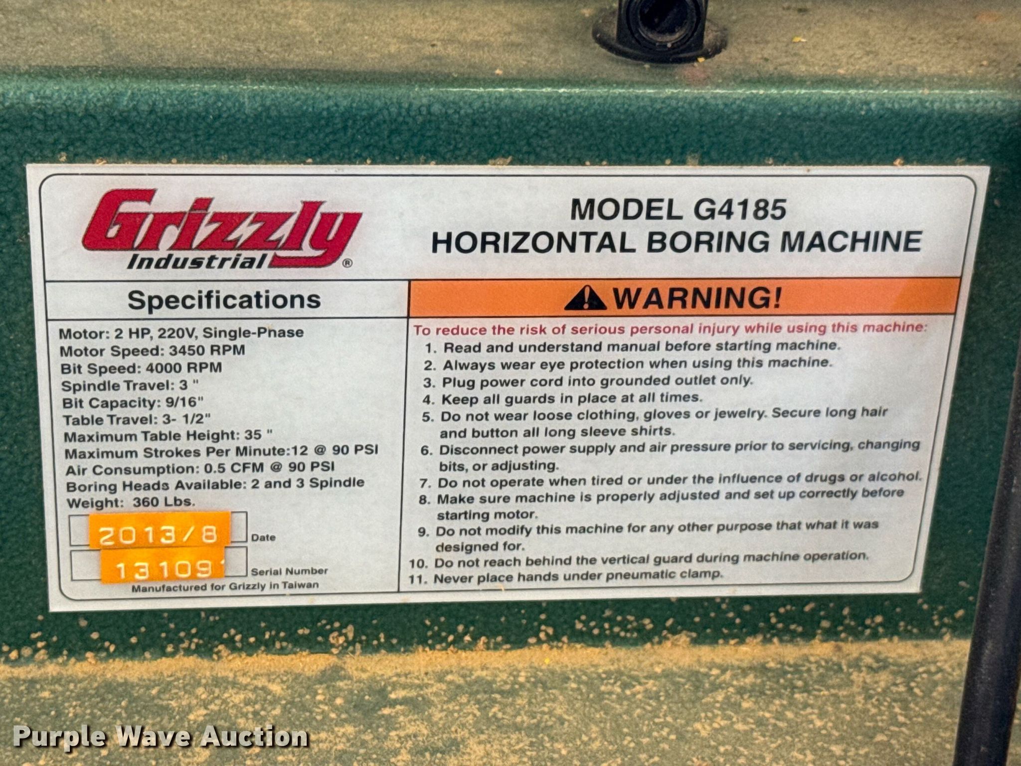 - Grizzly G4185 horizontal boring machine