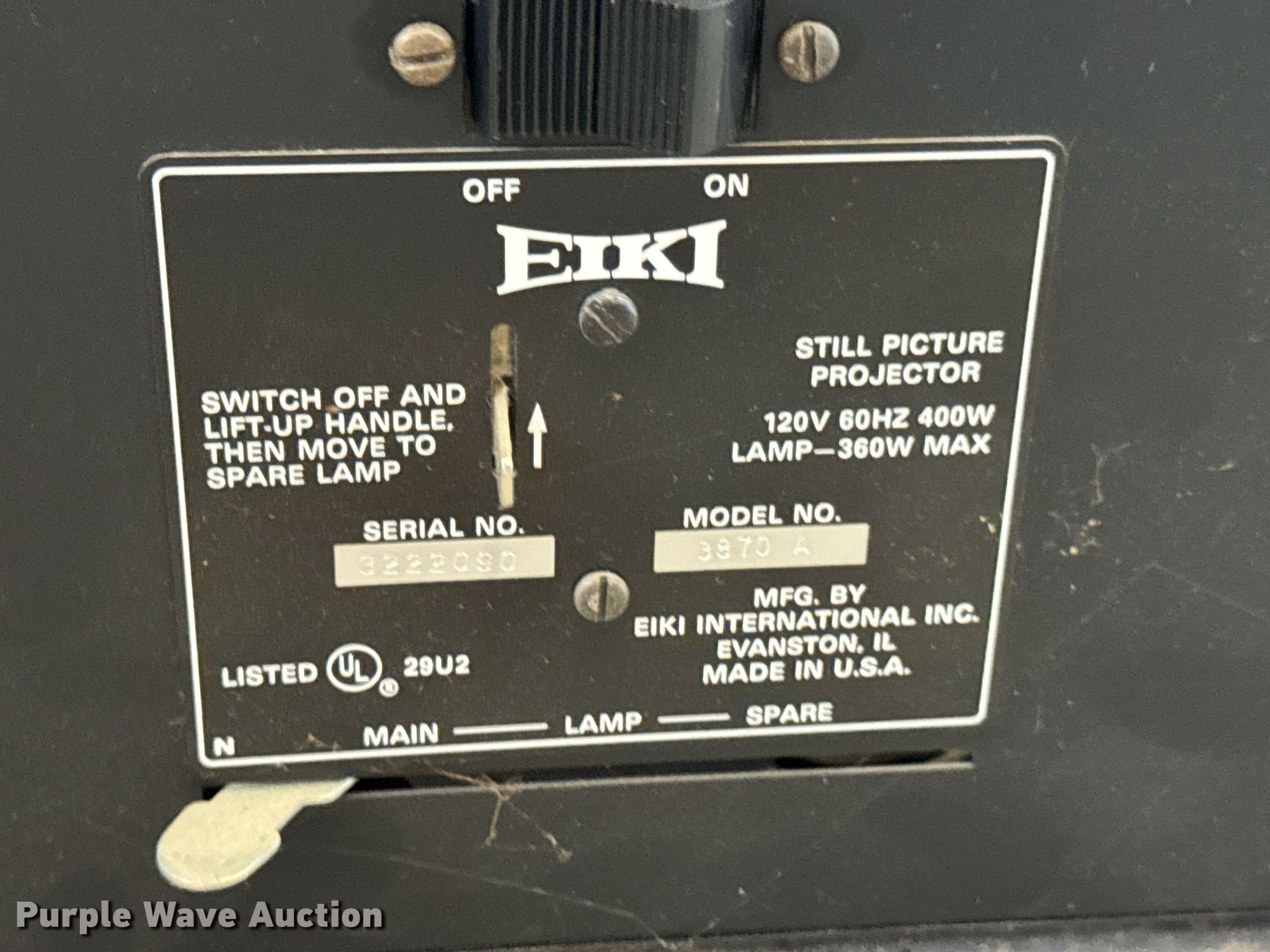 Purple Wave is selling a used Electronics in Kansas. This item is a Projectors with the following: (6) Eiki 3870A, Watts: 400, Volts: 120, Phase: Single, (2) Elmo document cameras, Elmo projector