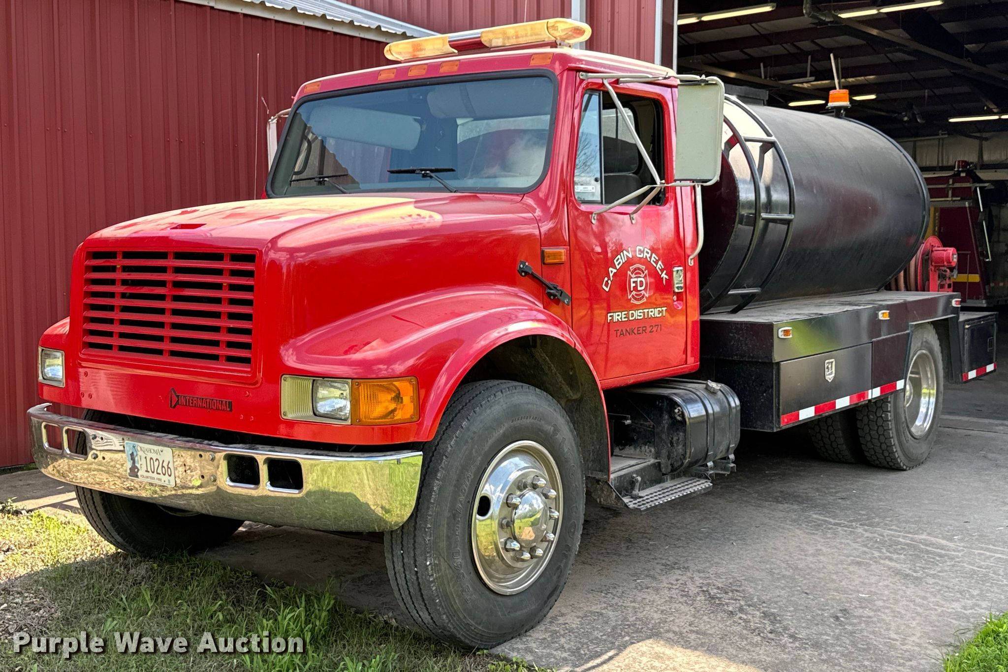Purple Wave is selling a used Tank Truck or Water Truck in Oklahoma. This item is a 1997 International 4700 water truck with the following: Miles: 146,366 on odometer, VIN: 1HTSCAAP4VH471923