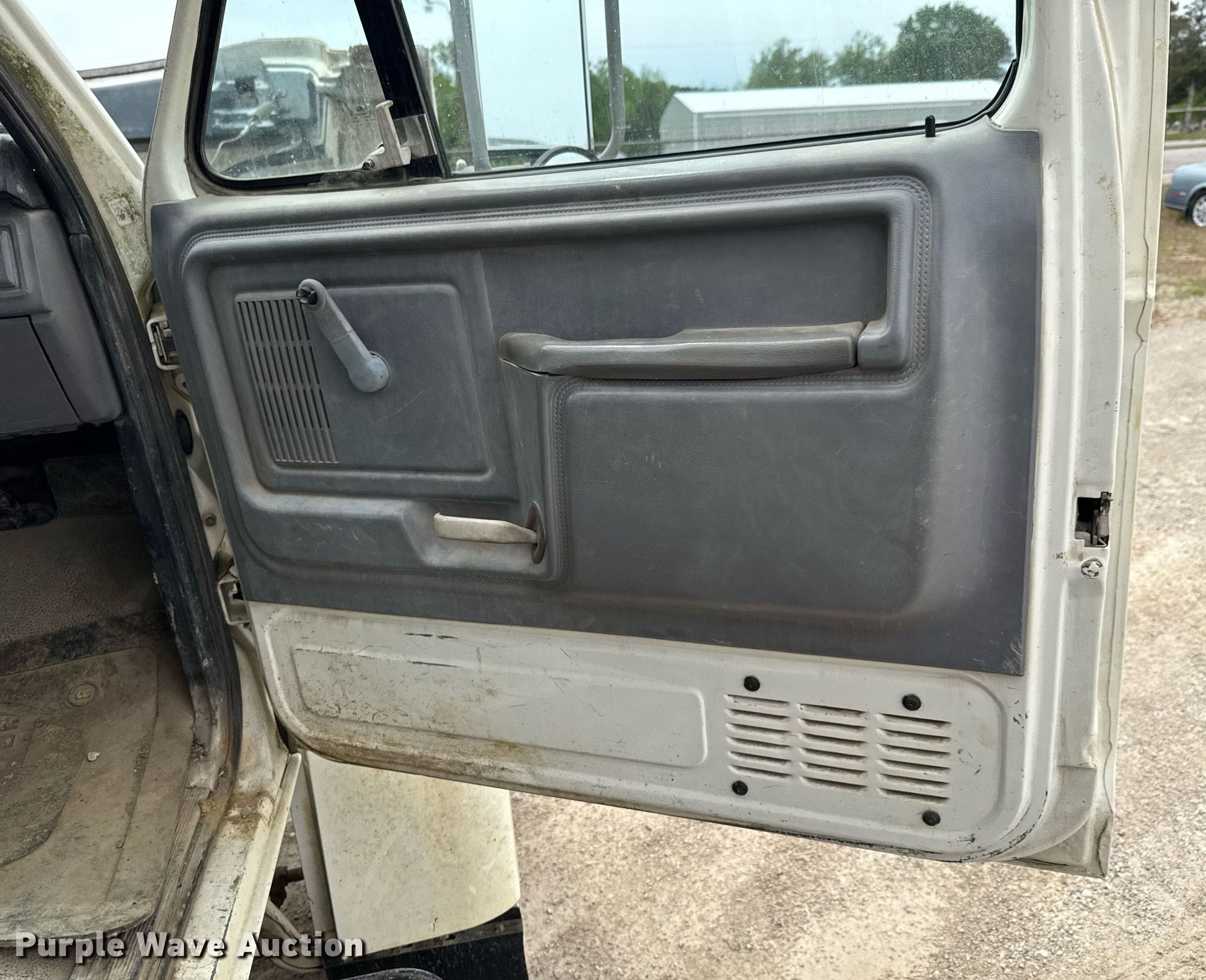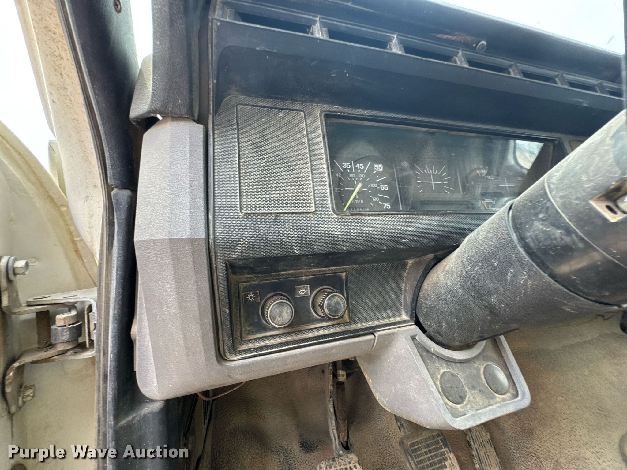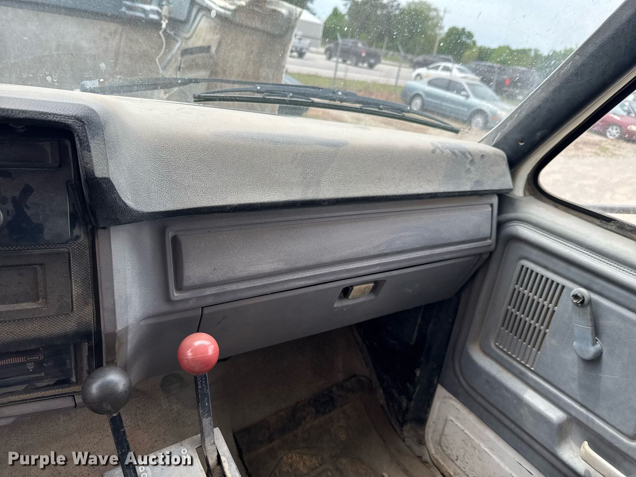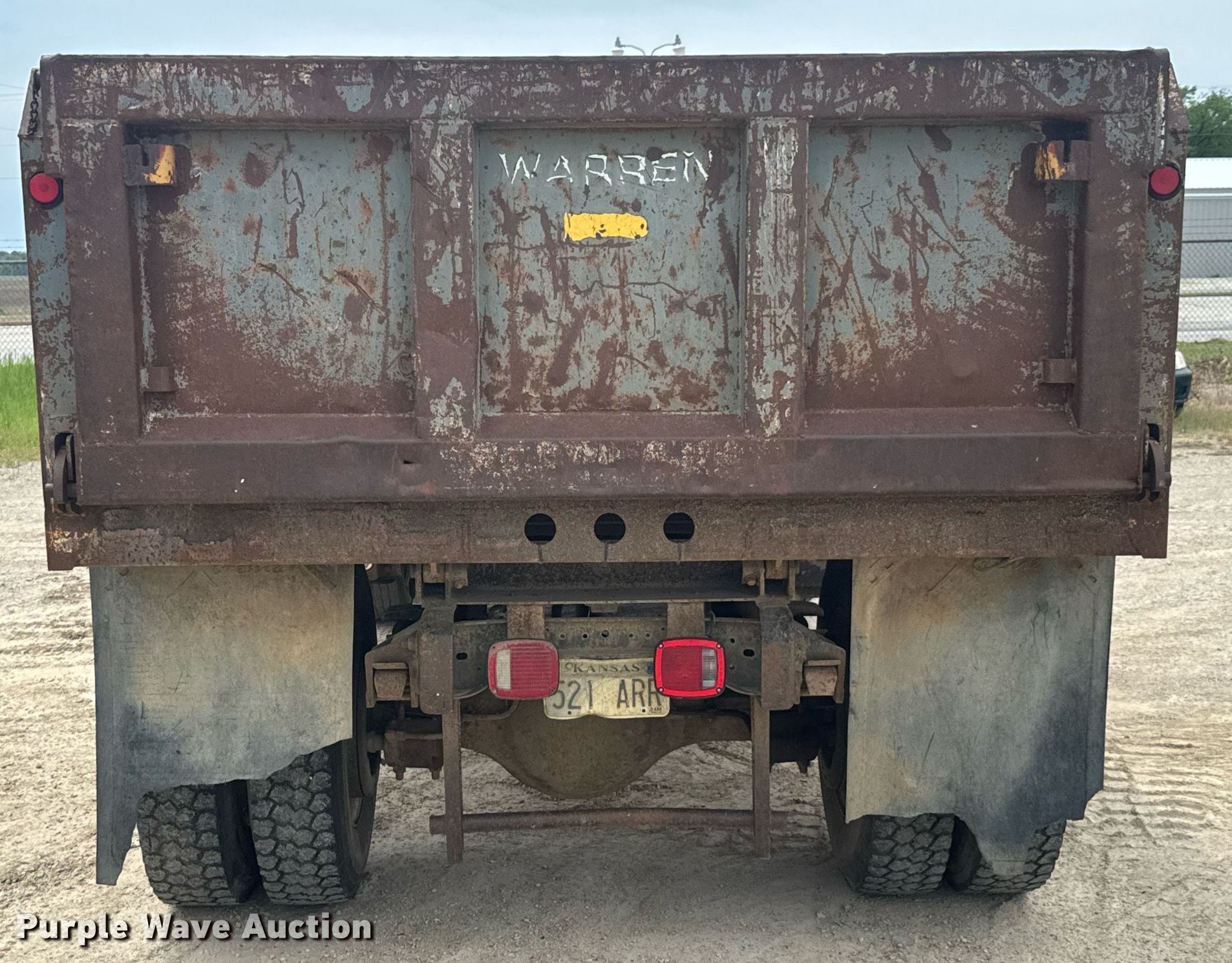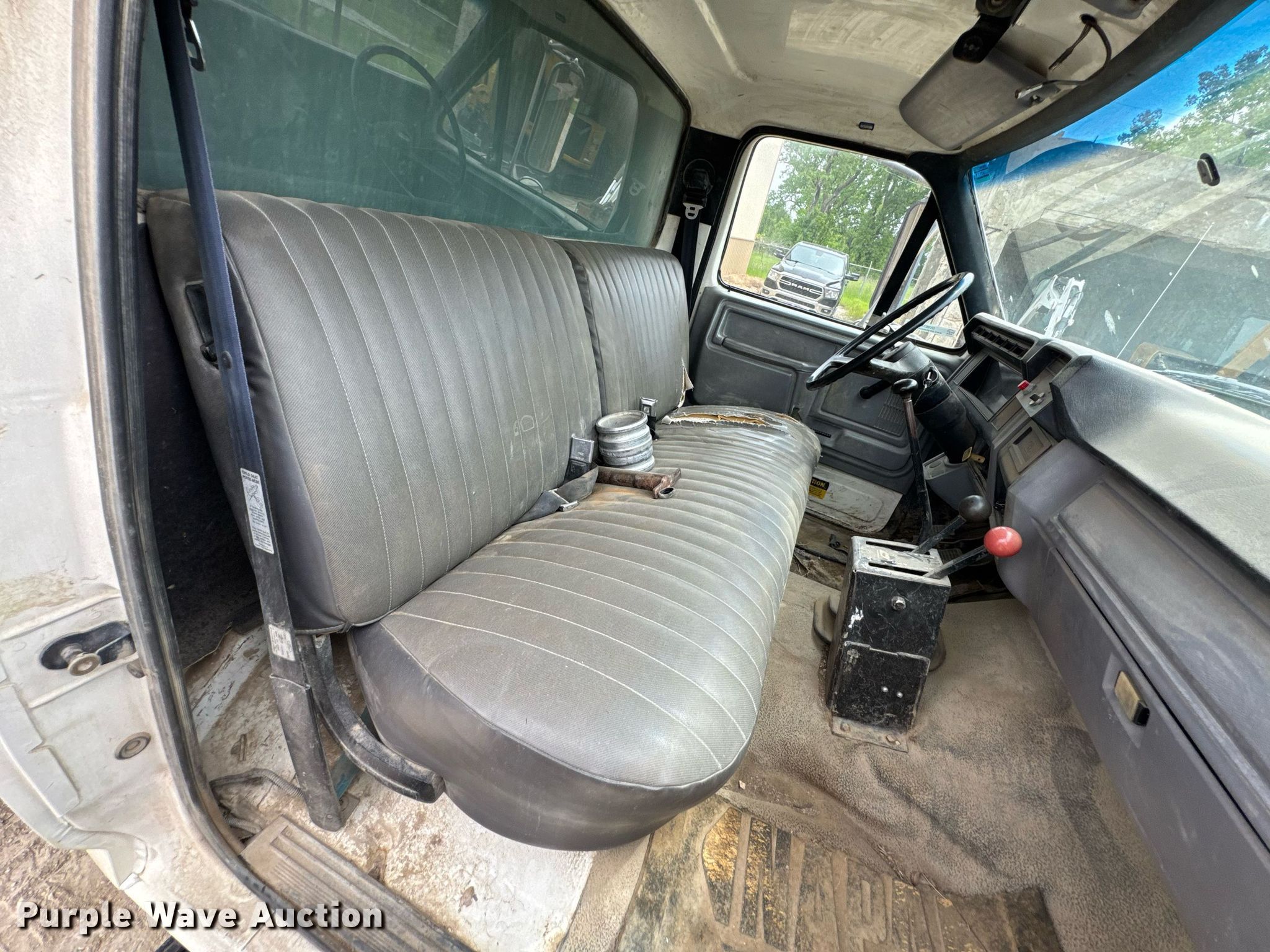 1995 Ford F700 dump truck. Miles: 86,087 on odometer, VIN: 1FDNF70J0SVA82285. Engine Ford, Displacement: 7.0L, Cylinders: 8, Fuel type: Gas. Transmission Manual, Speed: 5. Chassis Axles: Single, Suspension: Spring, Brakes: Hydraulic, PTO, GVWR: 24,500 lbs FAWR: 7,000 lbs, RAWR: 17,500 lbs, Wheelbase: 153". Interior AC, Heat. Features Dump bed Warren, 10' L x 96" W, Side height: 32", Bed type: Steel, Ram: Single, End gate: Air operated. Tires Size: 10R22.5. Kansas title. Title distribution may be delayed up to 14 days from verification of funds. City of Chanute, KS. Chanute, KS 66720