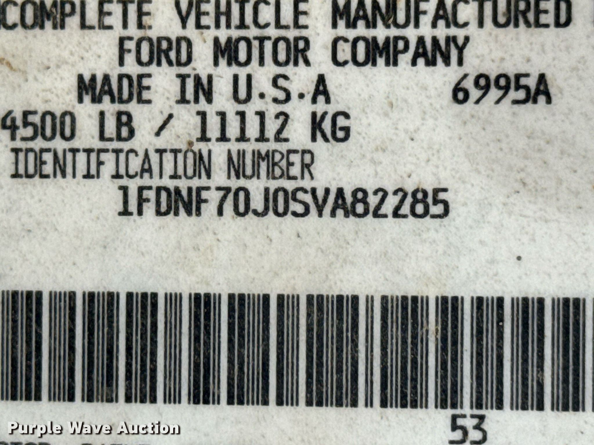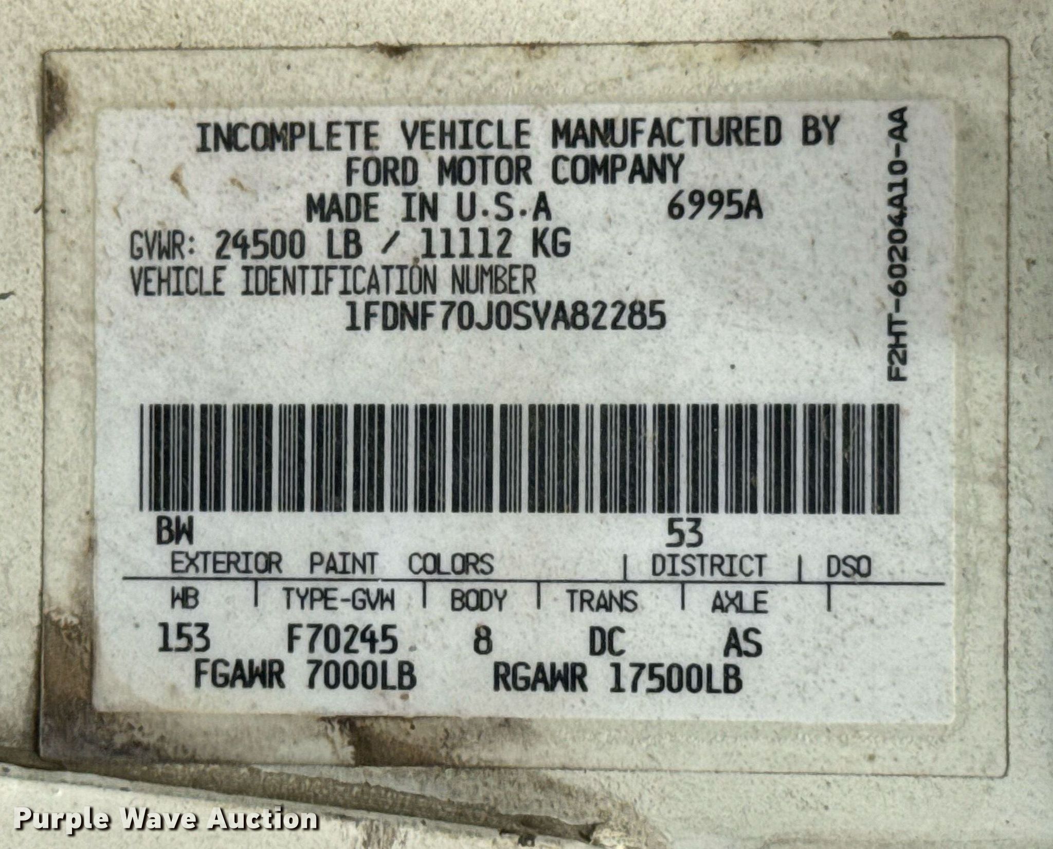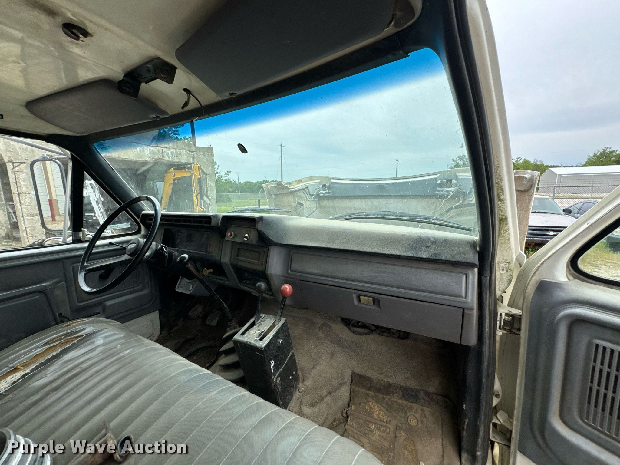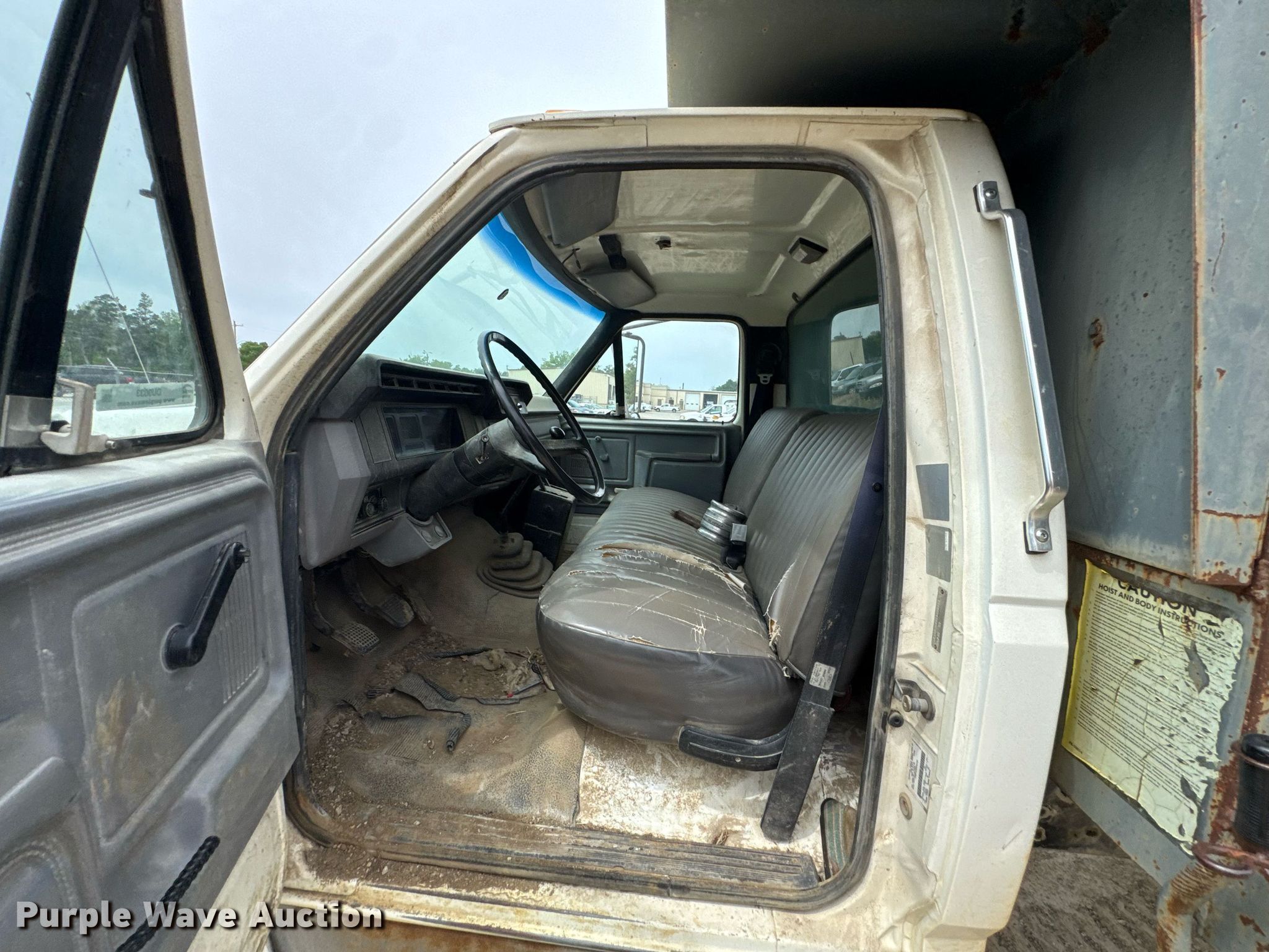 1995 Ford F700 dump truck. Miles: 86,087 on odometer, VIN: 1FDNF70J0SVA82285. Engine Ford, Displacement: 7.0L, Cylinders: 8, Fuel type: Gas. Transmission Manual, Speed: 5. Chassis Axles: Single, Suspension: Spring, Brakes: Hydraulic, PTO, GVWR: 24,500 lbs FAWR: 7,000 lbs, RAWR: 17,500 lbs, Wheelbase: 153". Interior AC, Heat. Features Dump bed Warren, 10' L x 96" W, Side height: 32", Bed type: Steel, Ram: Single, End gate: Air operated. Tires Size: 10R22.5. Kansas title. Title distribution may be delayed up to 14 days from verification of funds. City of Chanute, KS. Chanute, KS 66720