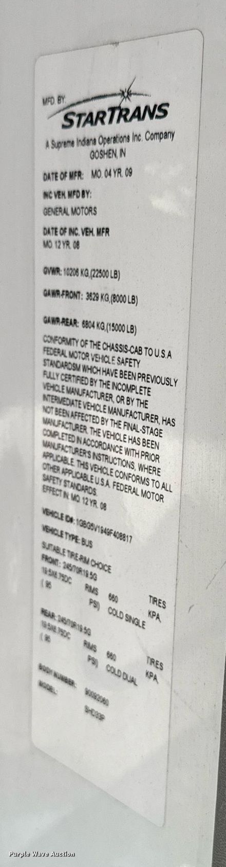 Purple Wave is selling a used Bus in Iowa. This item is a 2009 Chevrolet C5500 Supreme shuttle bus with the following: Miles: 241,861 on odometer, VIN: 1GBG5V1949F408817
