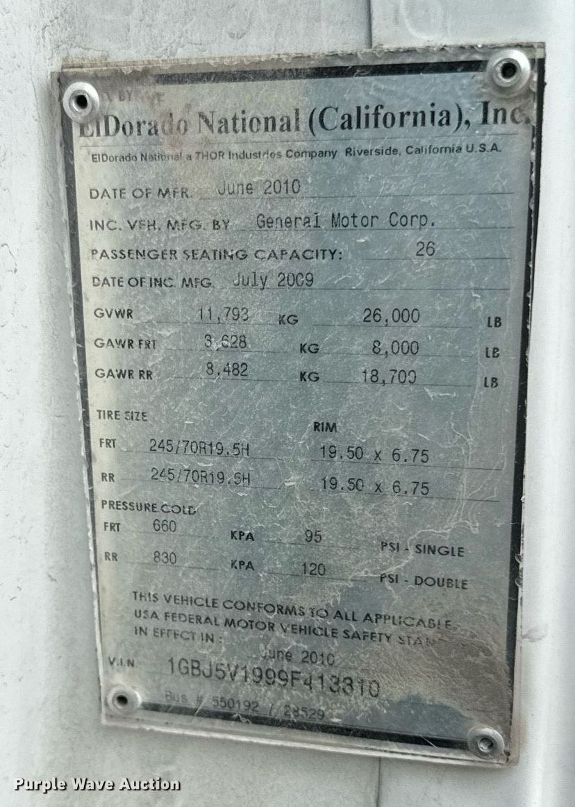 Purple Wave is selling a used Bus in Iowa. This item is a 2009 Eldorado National shuttle bus with the following: Miles: 262,427 on odometer, Hours: 8,665 on meter, VIN: 1GBJ5V1999F413310