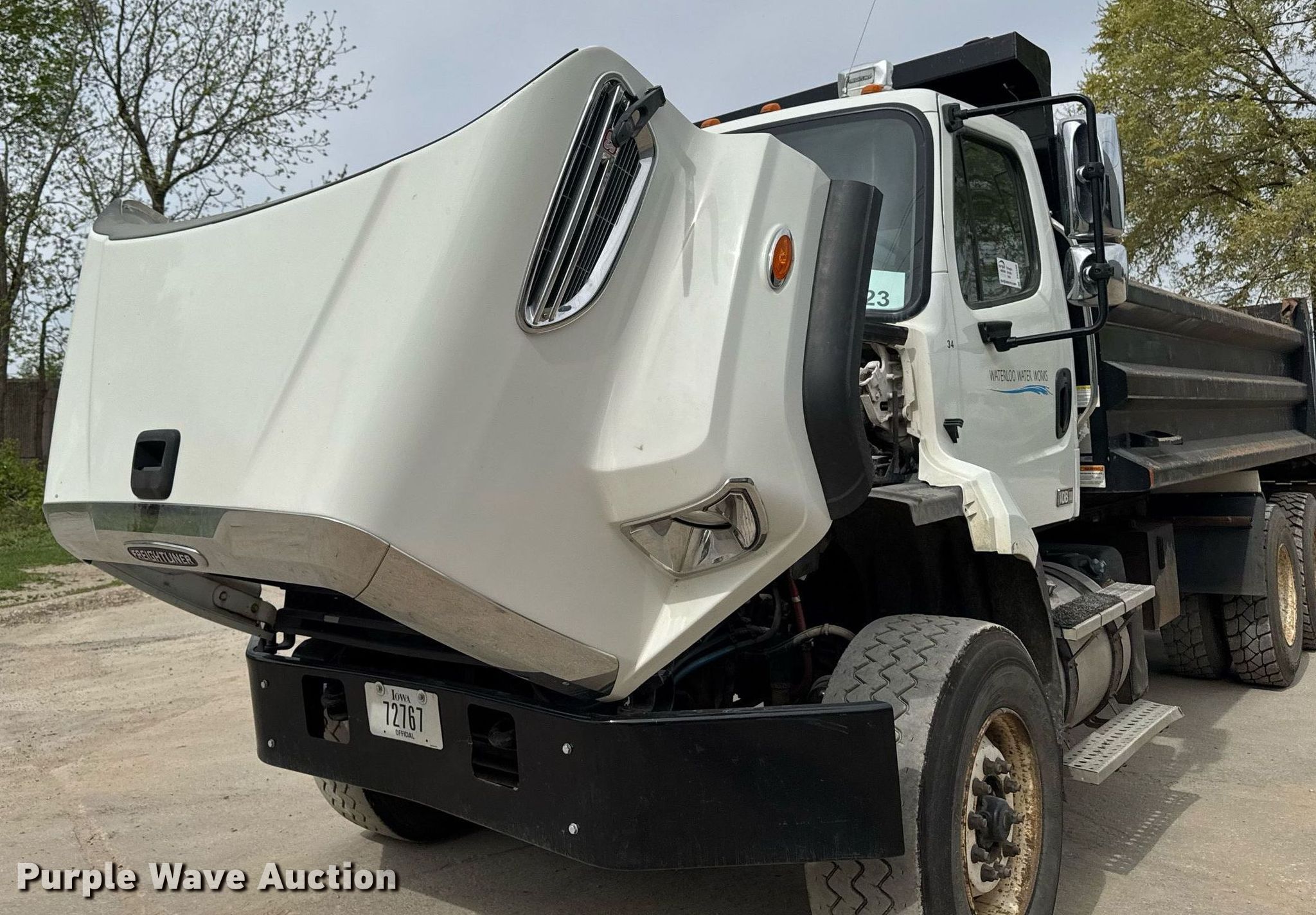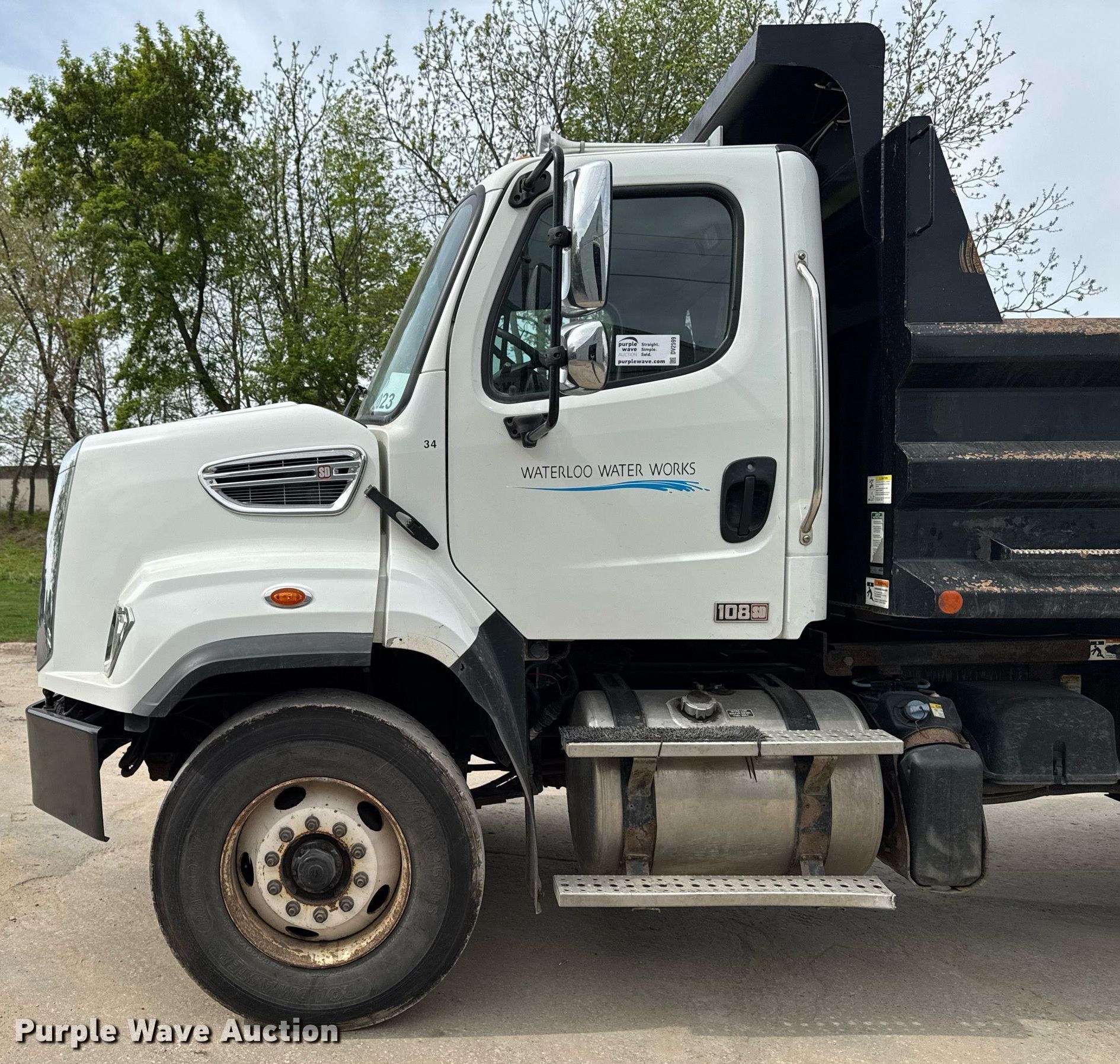 2013 Freightliner 108SD dump truck. Miles: 82,833 on odometer, Hours: 7,434 on meter, VIN: 1FVHG5BS0DHFD2918. Engine Cummins ISC 330, Displacement: 8.3L, Cylinders: 6, Fuel type: Diesel, HP: 330. Transmission Allison 3000 RDS, Automatic. Chassis Axles: Tandem, Differential lock: Full, Suspension: Spring over walking beam, Brakes: Air, PTO, GVWR: 58,000 lbs. FAWR: 18,000 lbs., IAWR: 20,000 lbs., RAWR: 20,000 lbs.. Interior AC, Heat, Heated mirrors, Cruise control. Features Dump bed Henderson 16x36xMKE, 16' L x 96" W, Side height: 36", Bed type: Steel, Ram: Single, End gate: Air operated. Tires Front: 385/65R22.5, Rear: 11R22.5. View repairs. Iowa title. Seller is a government entity who will be assigning and distributing the title. Please contact the seller for distribution questions. Title distribution may be delayed up to 14 days from verification of funds. Waterloo Waterworks. Waterloo, IA 50703