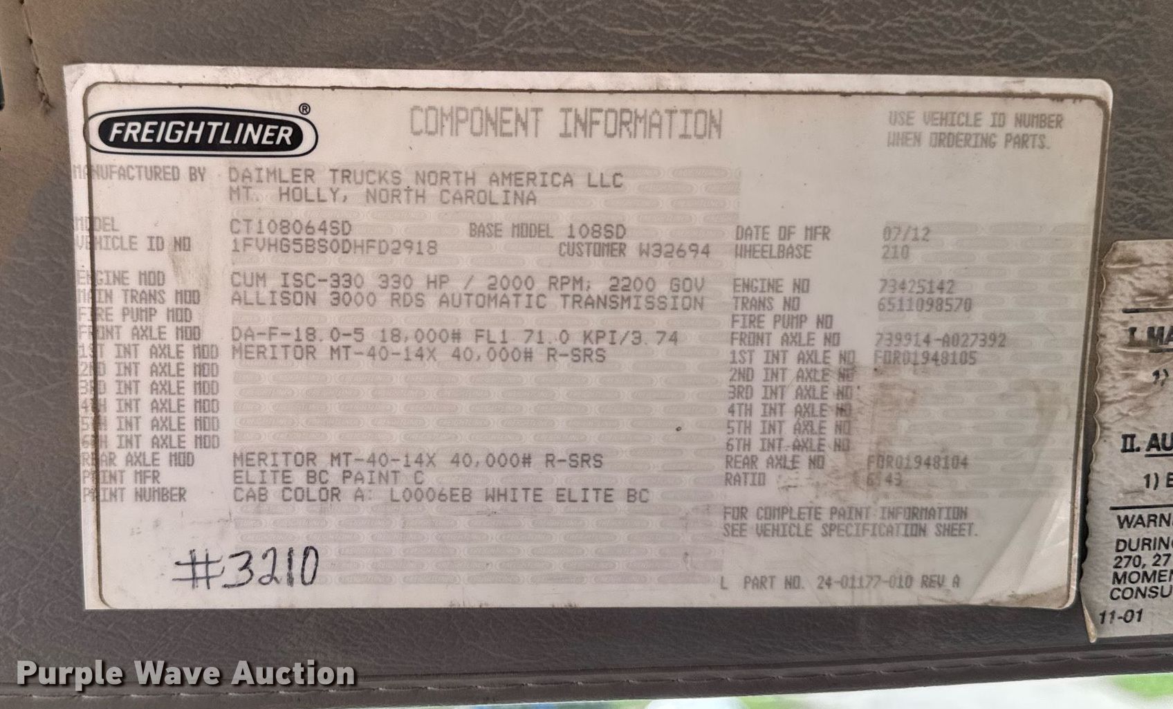 - VIN: 1FVHG5BS0DHFD2918