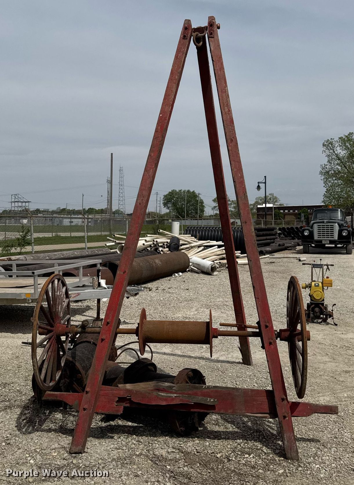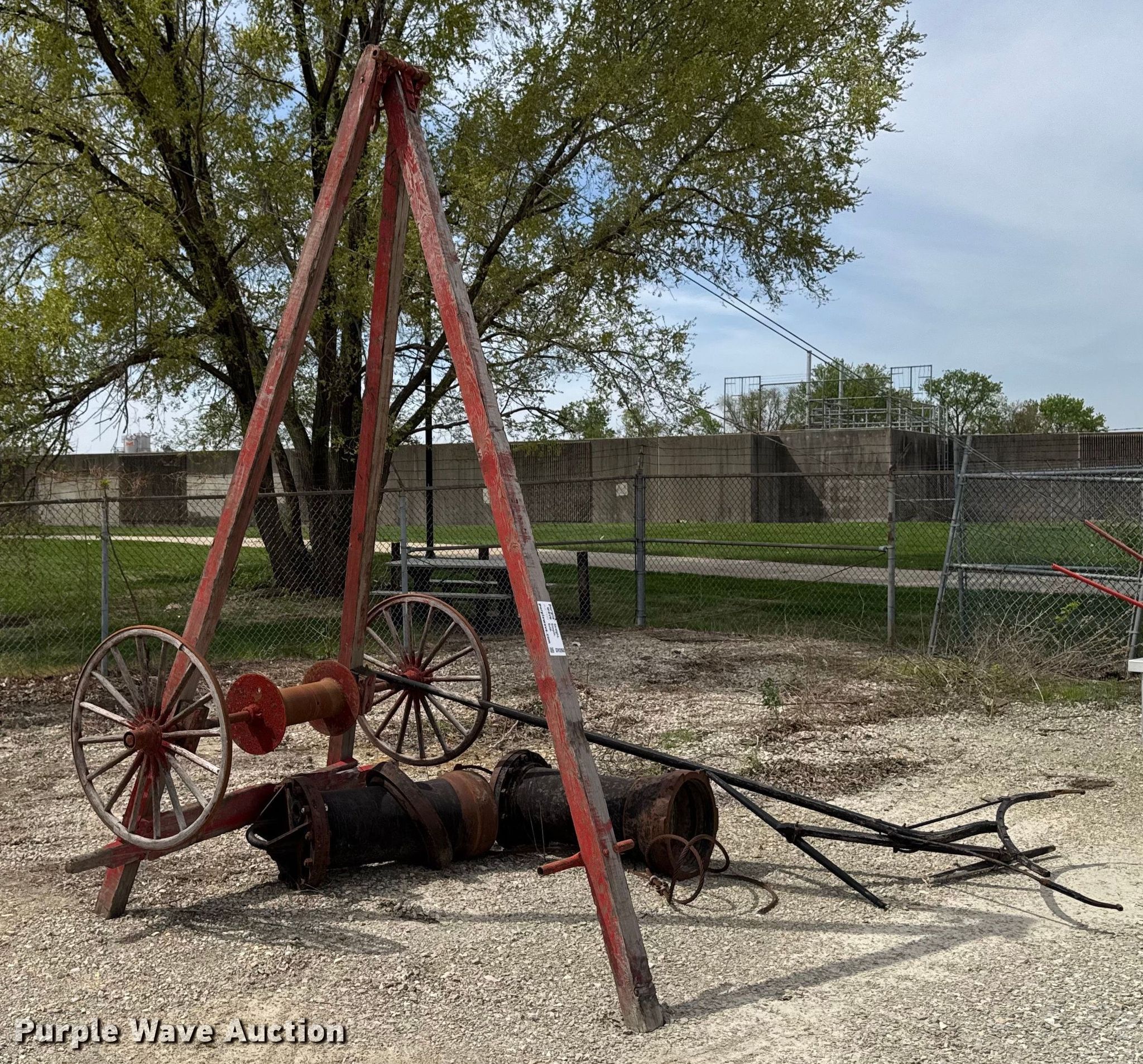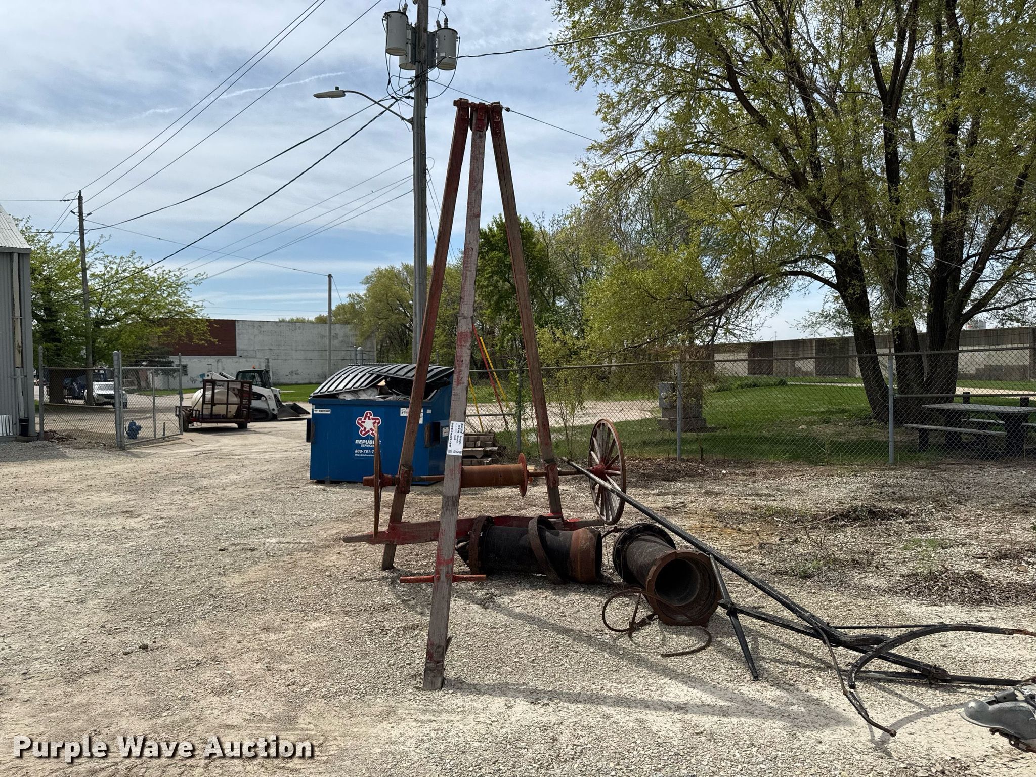 Purple Wave is selling a used Irrigation Equip. Attach. in Iowa. This item is a (2) 12" water main pulling heads with the following: Tripod lifting device, Horse hookup included