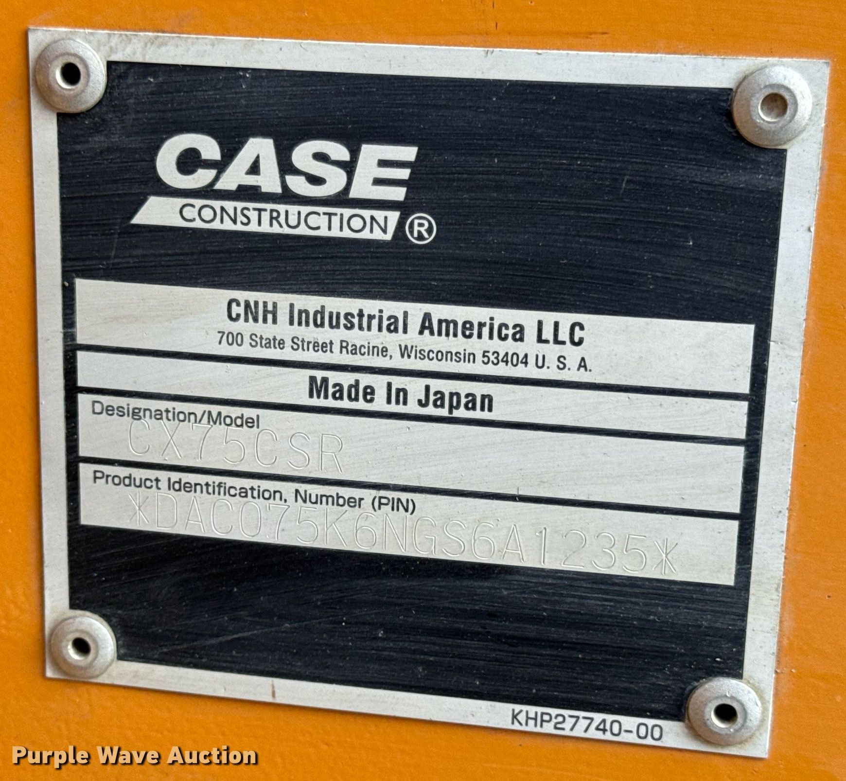 Purple Wave is selling a used Hydraulic Excavator in Missouri. This item is a 2016 Case CX75C SR mini excavator with the following: Hours: 4,536 on meter, Serial: DAC075K6NGS6A1235, Unit #: 358