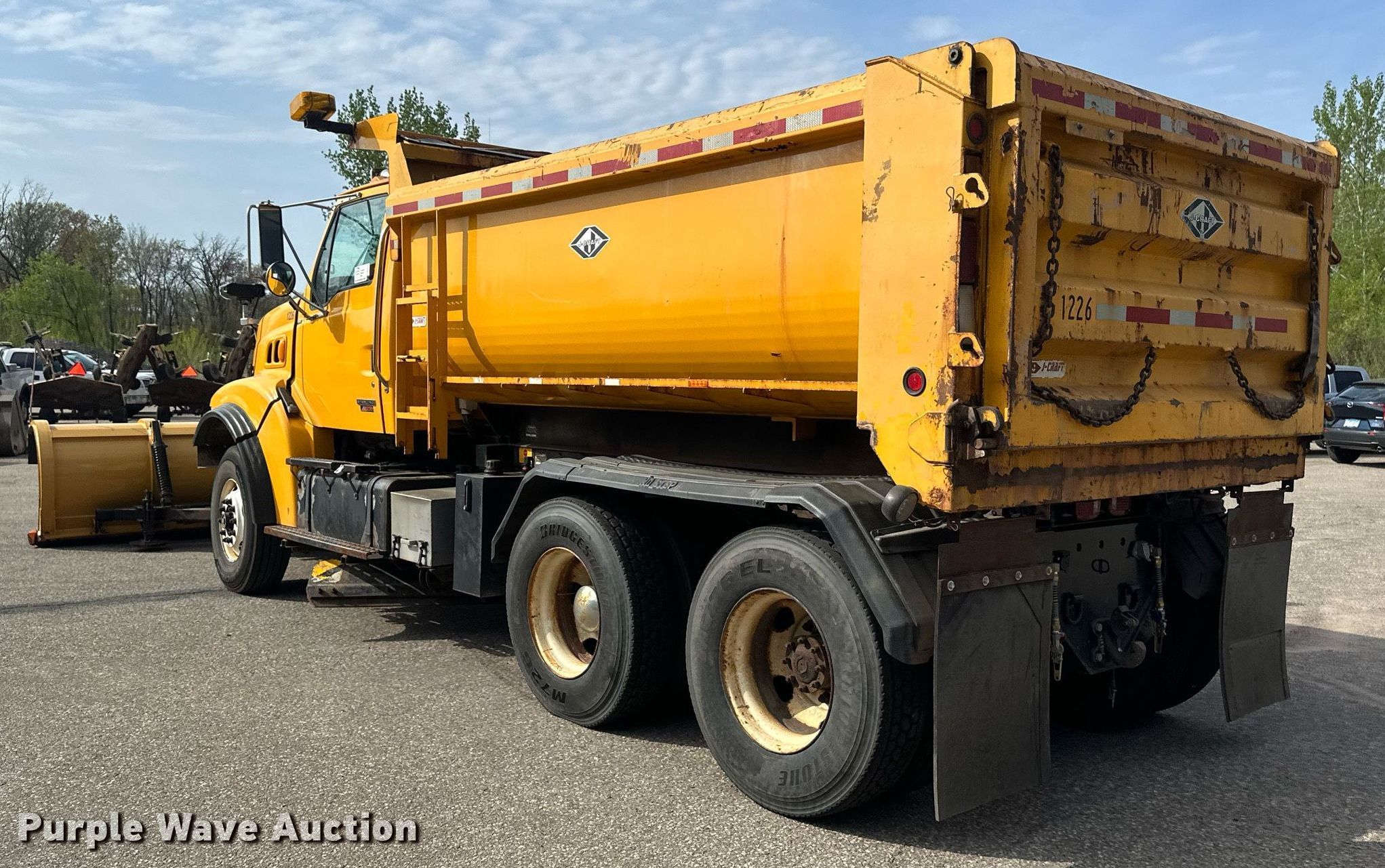 2004 Sterling LT9500 dump truck. Miles: 84,426 on odometer, Hours: 6,972 on meter, VIN: 2FZHAZAN74AM26537, Unit #: 1226. Engine Caterpillar C10, Displacement: 10.3L, Cylinders: 6, Fuel type: Diesel. Transmission Allison, Automatic. Chassis Axles: Tandem, Differential lock: Inter-axle, Suspension: Spring over walking beam, Brakes: Air, PTO, GVWR: 58,000 lbs. Interior AC, Heat, Heated mirrors, Power windows, Cruise control. Features Dump bed J Craft 130 ELL, 13' L x 8' W, Side height: 42", Bed type: Steel, Ram: Dual, End gate: Air operated, Plow Falls, Width: 144", Wing plow Width: 120", Mid-mount plow Width: 132". Tires Front: 315/80R22.5, Rear: 11R22.5. Notes Dash warning indicator: Check engine, Dead battery. Minnesota title. Title distribution may be delayed up to 14 days from verification of funds. City of Blaine. Blaine, MN 55449