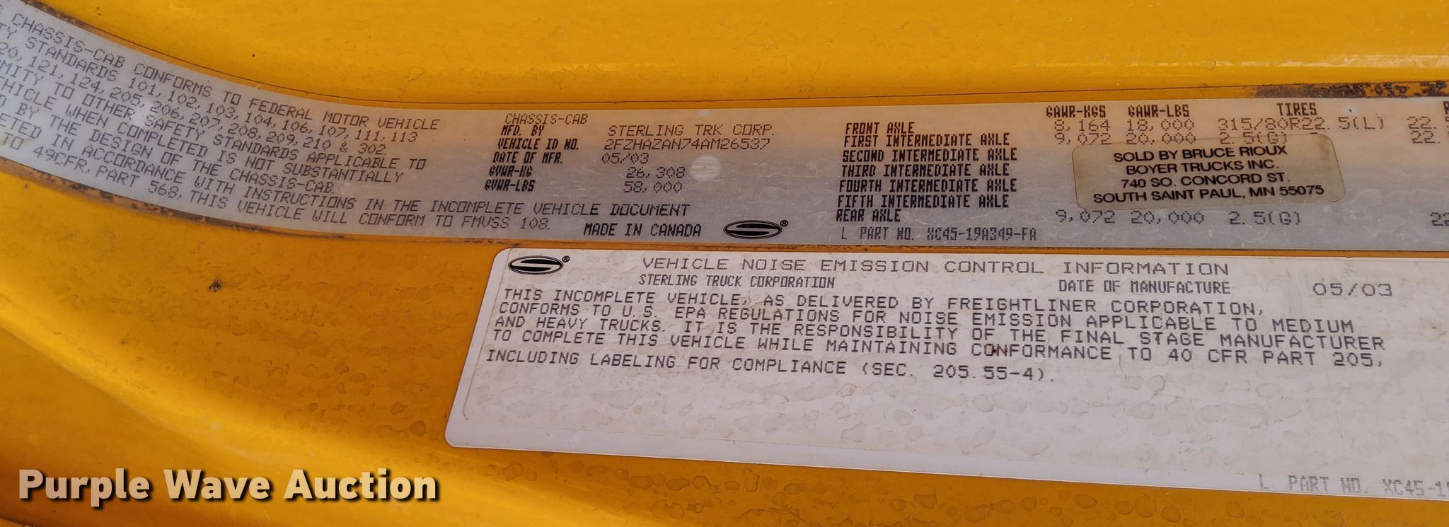 2004 Sterling LT9500 dump truck has sold in Blaine, Minnesota for $17050. Item EB2519 sold on June 10th, 2025.