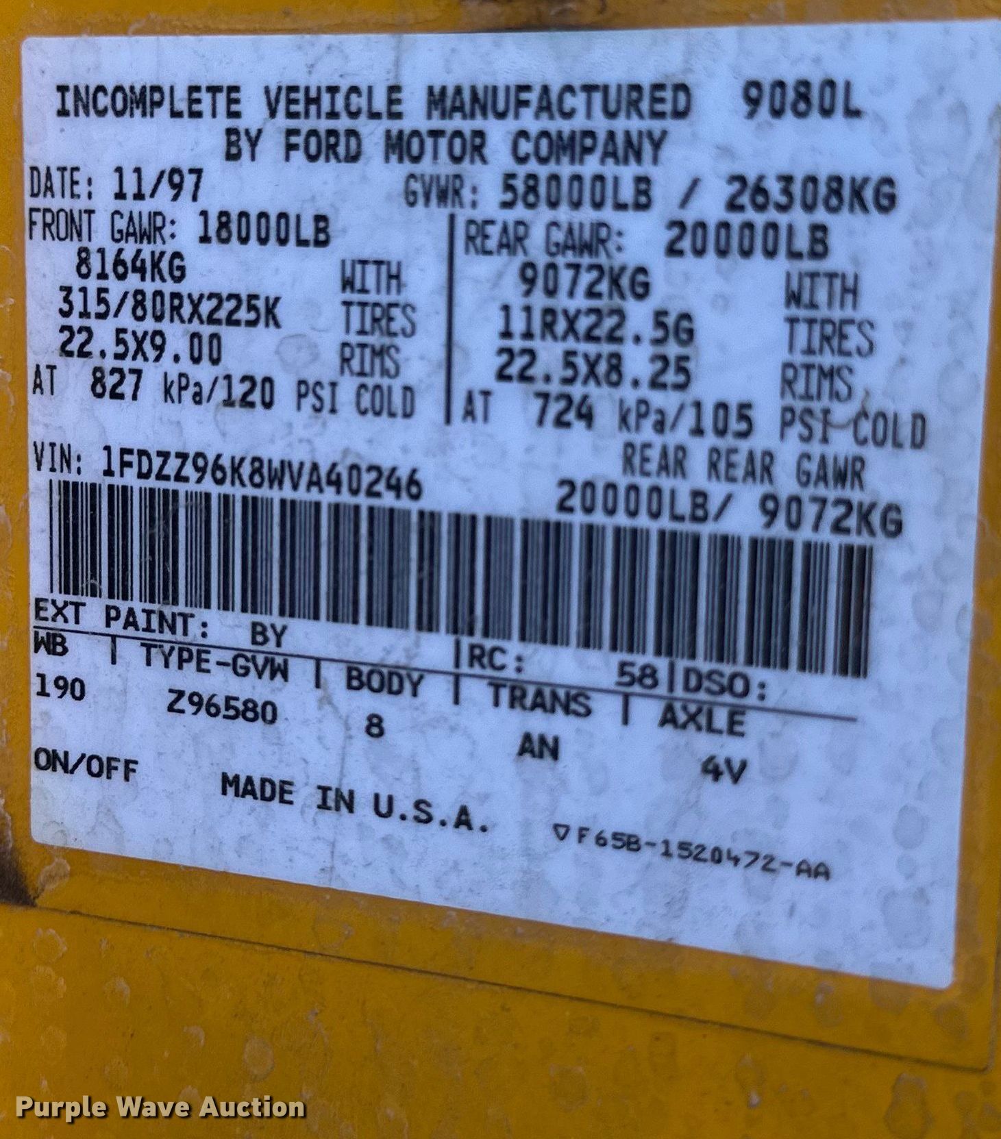 - VIN: 1FDZZ96K8WVA40246