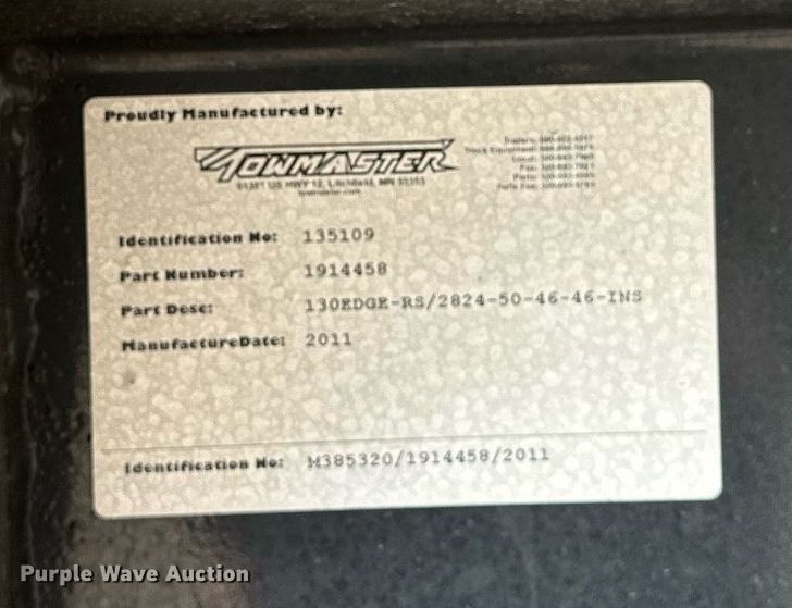 2000 Sterling L9511 dump truck. Miles: 113,204 on odometer, Hours: 9,346 on meter, VIN: 2FZNNECB7YAF34894, Unit #: 1200. Engine Caterpillar C10, Displacement: 10.3L, Cylinders: 6, Fuel type: Diesel. Transmission Allison, Automatic. Chassis Axles: Tandem, Differential lock: Inter-axle, Suspension: Spring over walking beam, Brakes: Air, PTO, GVWR: 58,000 lbs. Interior AC, Heat, Heated mirrors, Power windows, Cruise control, Brake controller. Features Dump bed Towmaster Edge RS, 13' L x 8' W, Side height: 43", Bed type: Aluminum, Bed vibrator, Ram: Dual, End gate: Air operated, Plow Falls, Width: 144", Wing plow Falls, Width: 120", Mid-mount plow Width: 132". Tires Front: 315/80R22.5, Rear: 11R22.5. Minnesota title. Title distribution may be delayed up to 14 days from verification of funds. City of Blaine. Blaine, MN 55449