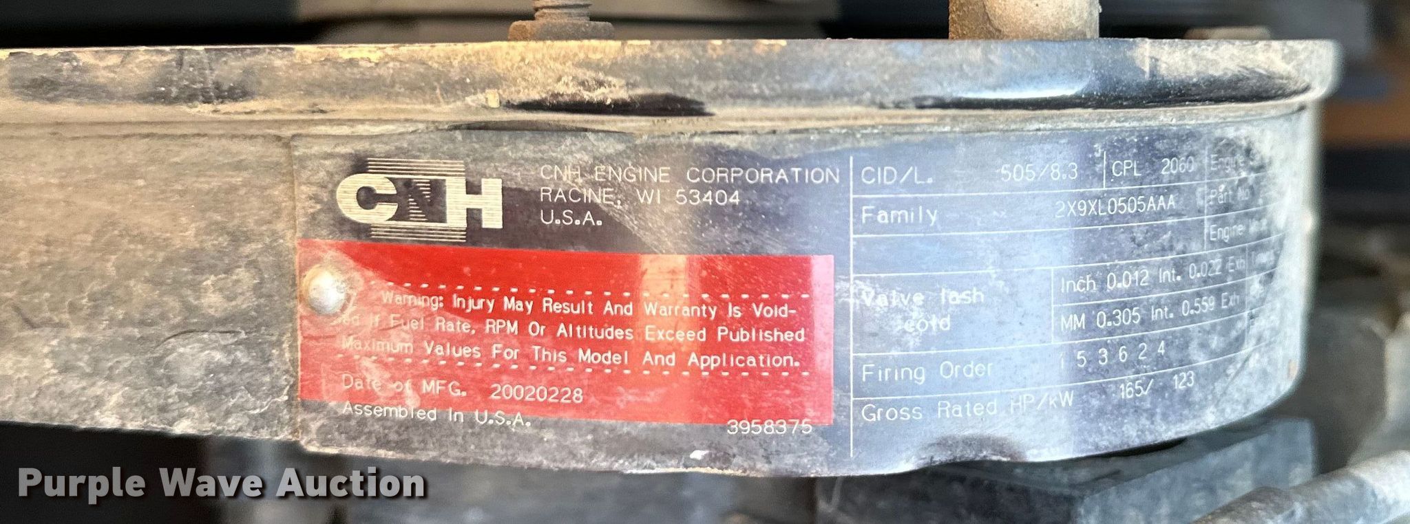 2002 Case 721C wheel loader. Hours: 65,018 on meter, Serial: JEE0126271. Engine Cummins 6T-830, Displacement: 8.3L, Cylinders: 6, Fuel type: Diesel, HP: 165. Transmission Powershift, 4F - 3R. Operators station Enclosed cab, AC, Heat, Bucket controls: Joystick. Features Auxiliary hydraulics: Front, Auxiliary electrical outlet, Quick coupler: Hydraulic ACS, Bucket Width: 101", Cutting edge: Bolt-on, Snow pusher Leo, Width: 10' 5". Tires Size: 20.5R25. City of Blaine. Blaine, MN 55449