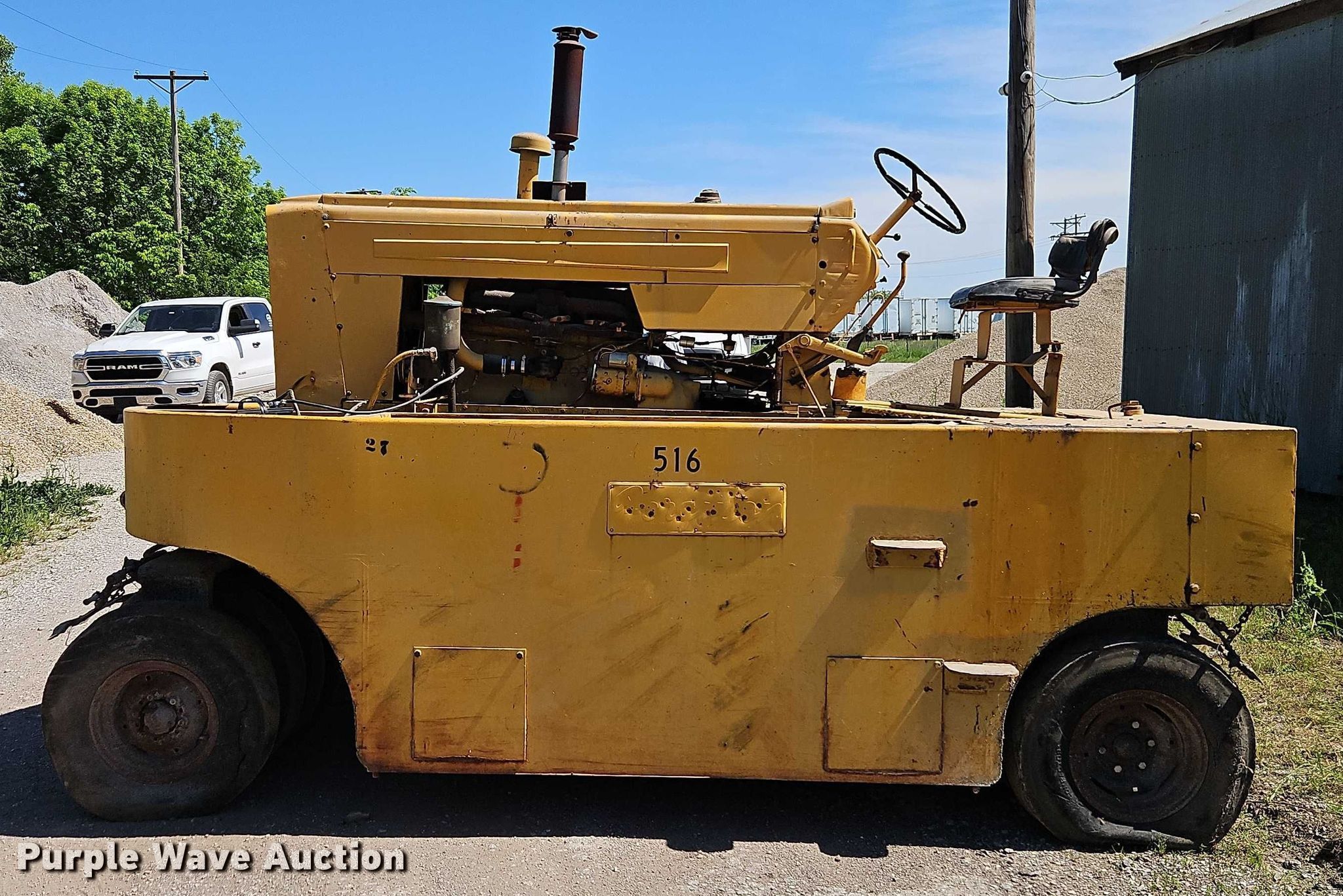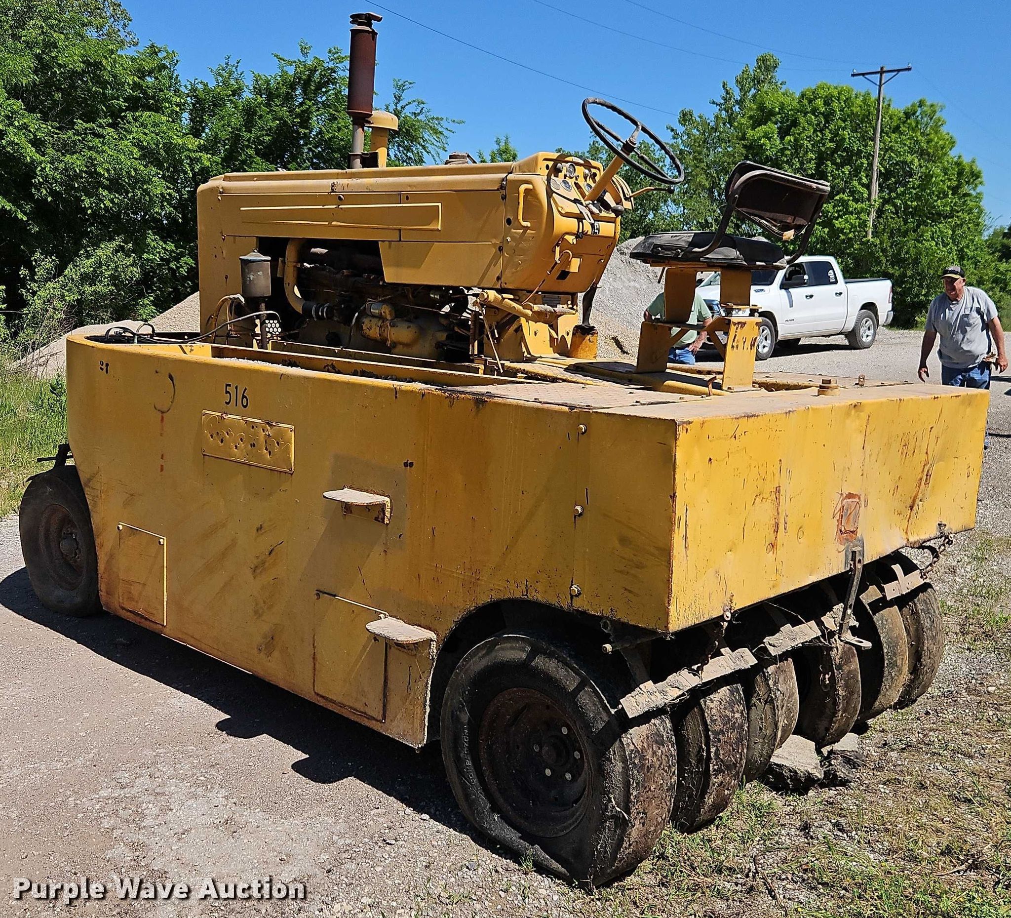 Ferguson 555-7109 pneumatic roller. Serial: 222784-507. Engine Oliver, Cylinders: 6, Fuel type: Gas. Transmission Shuttle shift, 6F - 6R. Features Drum scrapers: Front, Rear, Water spray applicator: Front, Rear. Tires Size: 7.50-15, Quantity: 11. Notes Dead battery. City of Osage City, KS. Osage City, KS 66523