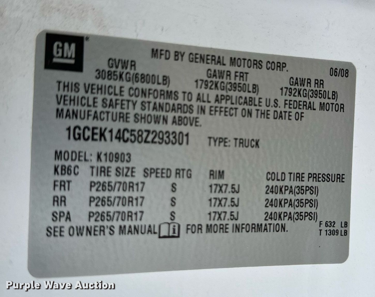 Purple Wave is selling a used 1/2 Ton Pickup or Van in Minnesota. This item is a 2008 Chevrolet Silverado 1500 pickup truck with the following: Miles: 103,788 on odometer, VIN: 1GCEK14C58Z293301