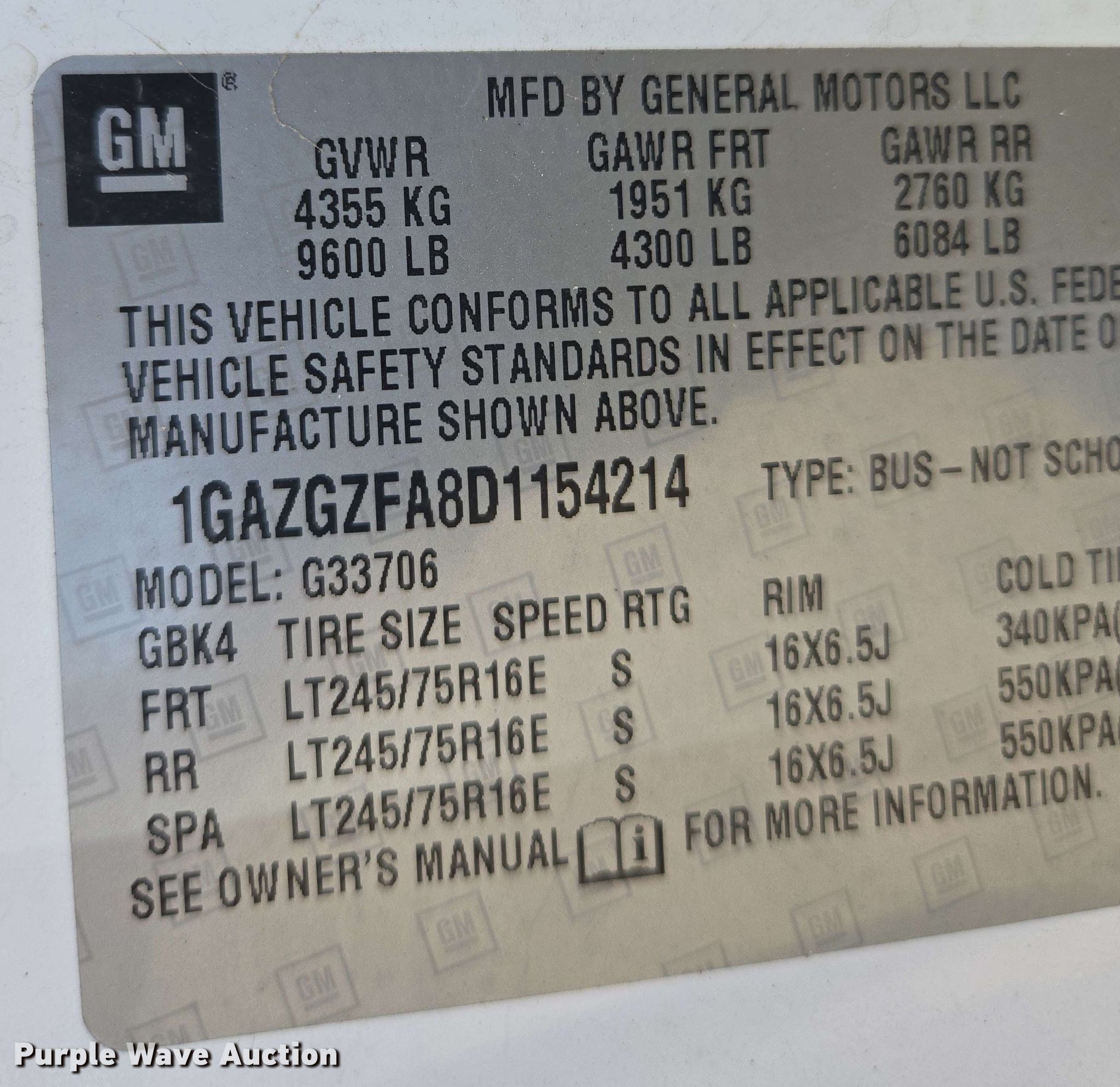 - VIN: 1GAZGZFA8D1154214
