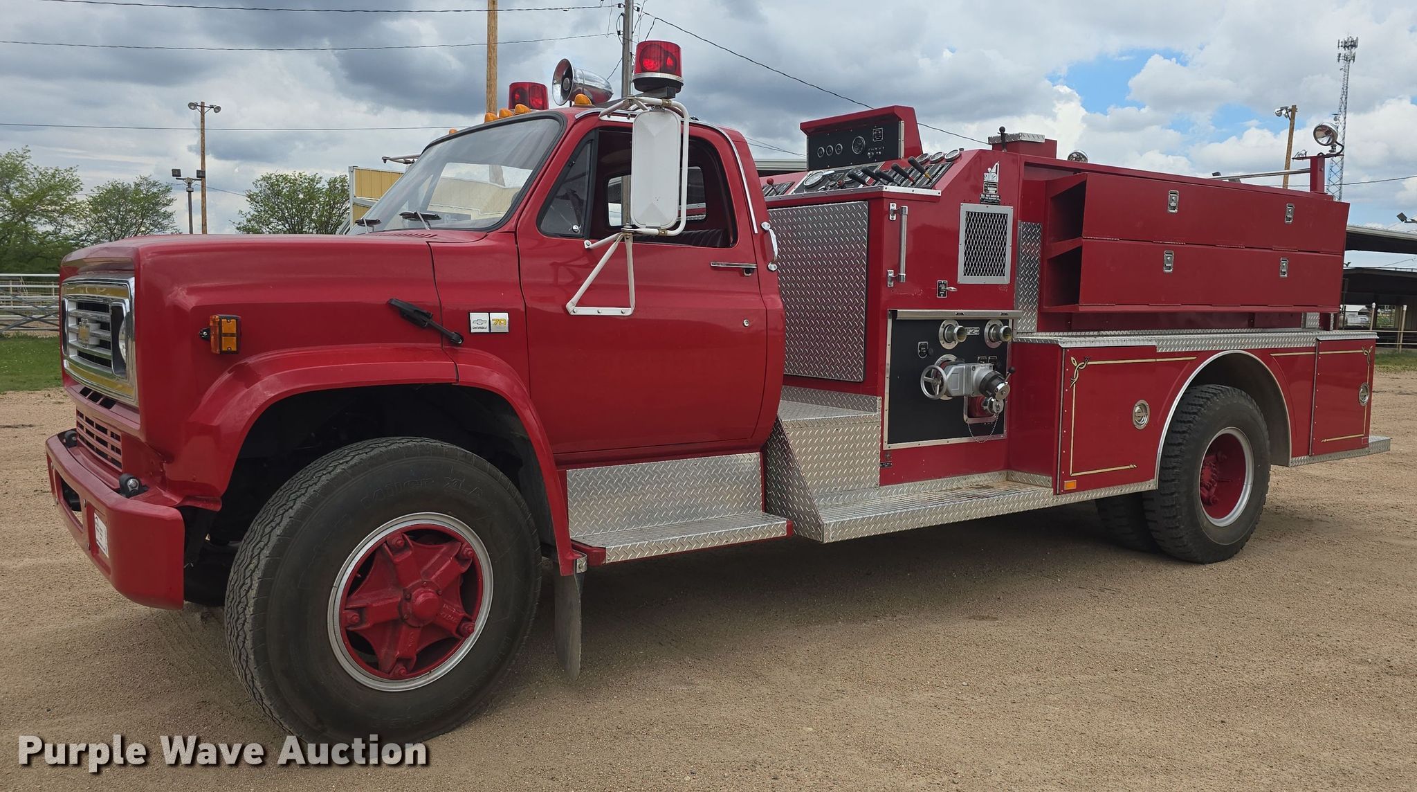 Purple Wave is selling a used Fire Truck or Emergency Vehicle in Kansas. This item is a 1989 Chevrolet 70 custom deluxe pumper fire truck with the following: Miles: 2,366 on odometer, VIN: 1GBJ7D1B2KV102644