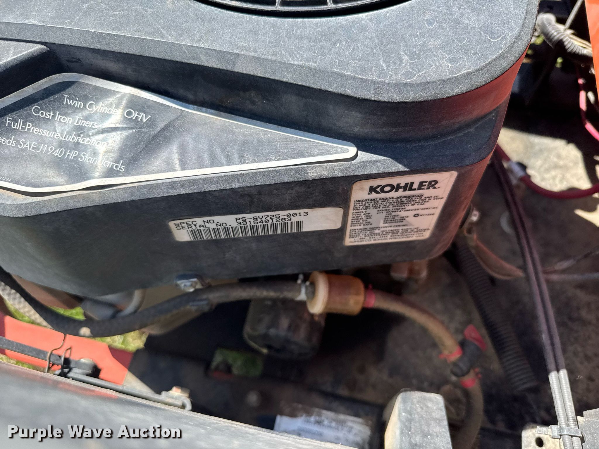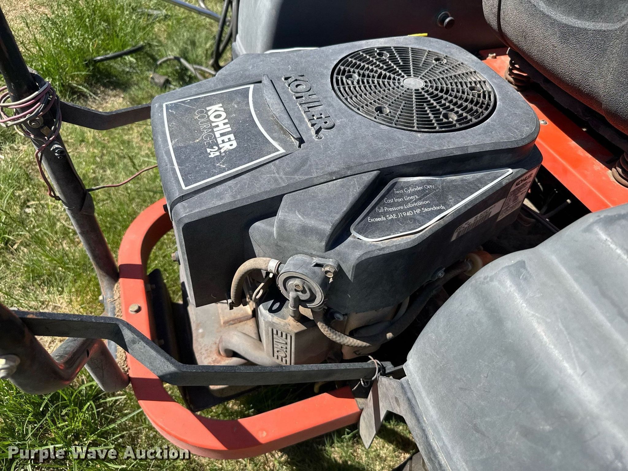 2009 Husqvarna RZ5424 ZTR lawn mower. Hours: 290 on meter, Cutting width: 54", Serial: 092592265. Engine Kohler Courage 24, Serial: 3915401283, Displacement: 726 cc, Cylinders: 2, Fuel type: Gas. Transmission Hydrostatic. Tires Front: 4.10/8.5-5, Rear: 18x9.50-8. Notes Non-operational unit. USD 212 Northern Valley. Almena, KS 67622