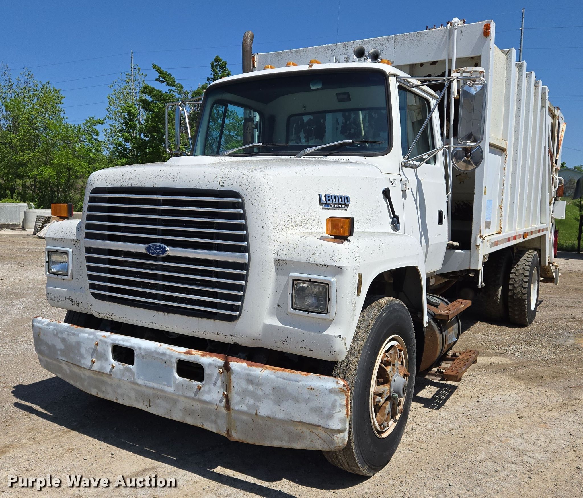 1994 Ford L8000 refuse truck. Miles: 112,220 on odometer, VIN: 1FDXR82E7RVA16994. Engine Cummins, Displacement: 8.3L, Cylinders: 6, Fuel type: Diesel. Transmission Allison, Automatic. Chassis Axles: Single, Suspension: Spring, Brakes: Air, PTO. Interior Heat. Features Refuse bed Leach Alpha, Serial: 2216, Capacity: 20 cu.yd., Load: Rear. Tires Size: 11R22.5. Missouri title. Title distribution may be delayed up to 14 days from verification of funds. City of Perryville, MO. Perryville, MO 63775