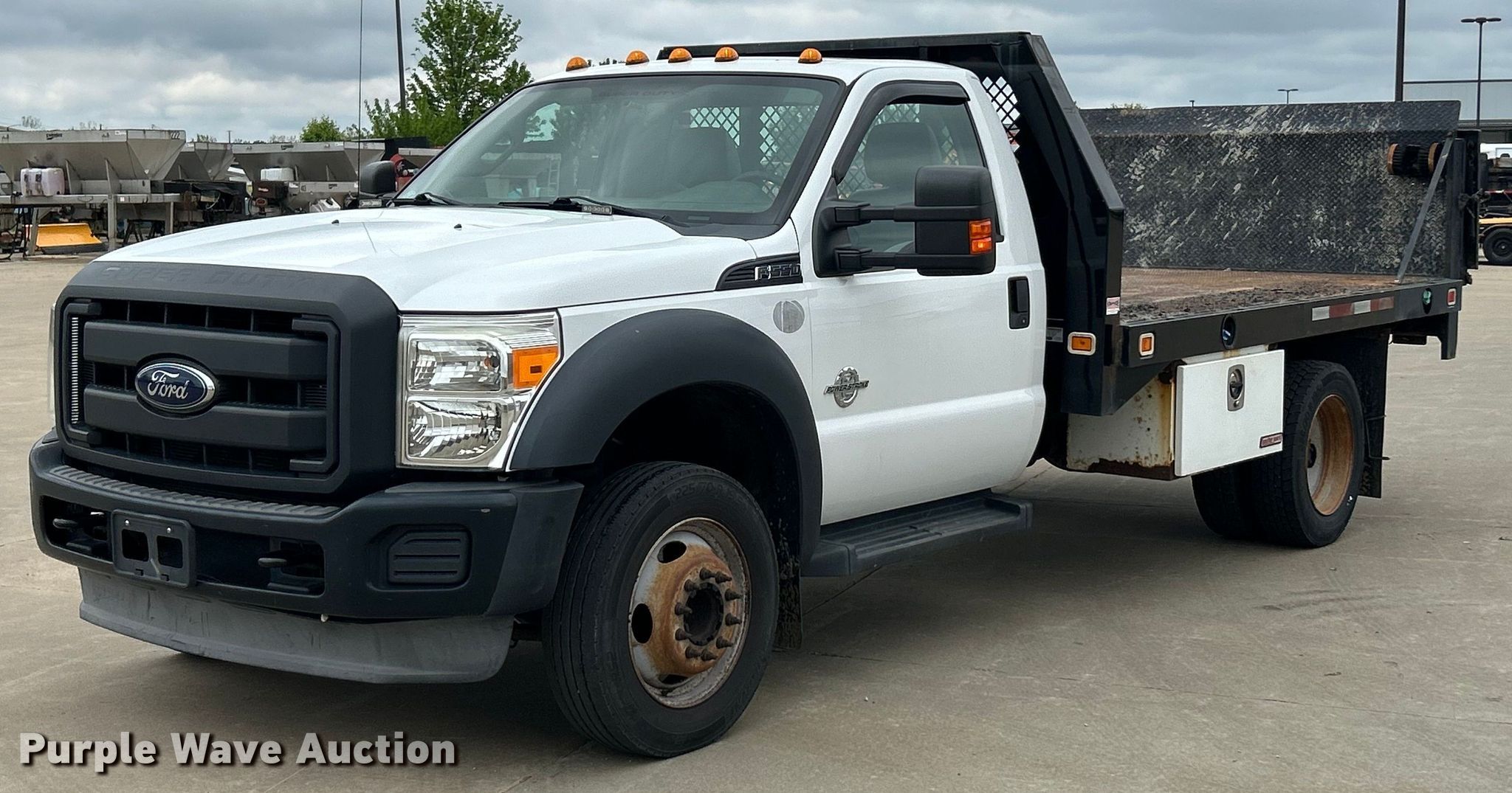 Purple Wave is selling a used Flat Bed Truck in Missouri. This item is a 2014 Ford F550 Super Duty XL flatbed truck with the following: Miles: 110,292 on odometer, VIN: 1FDUF5GT1EEA49260
