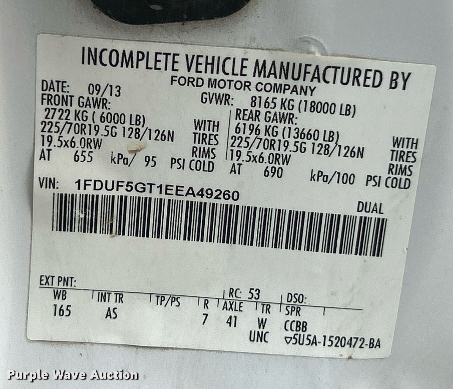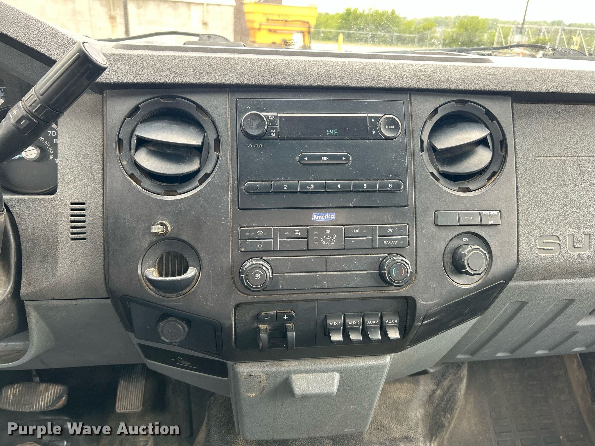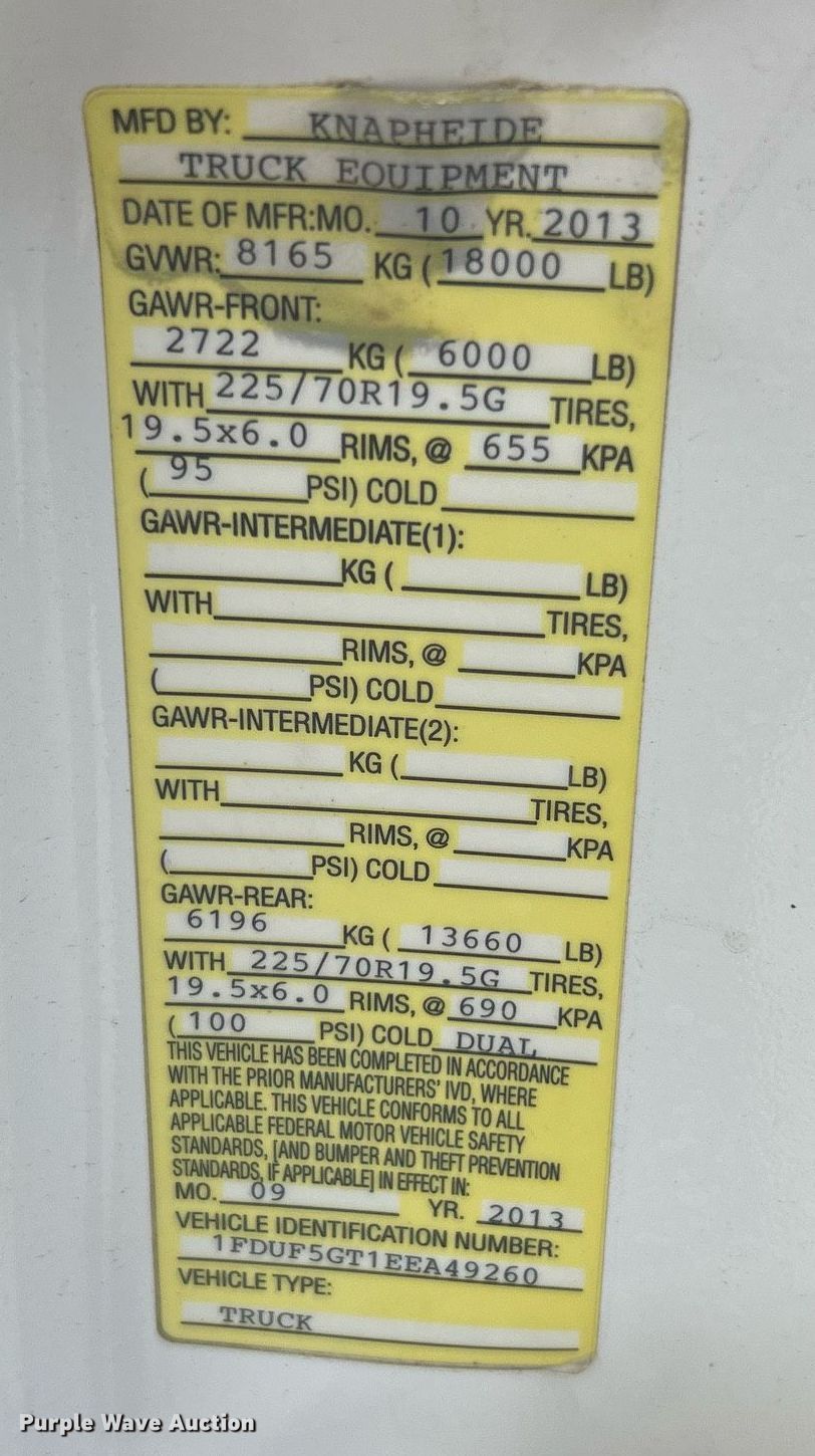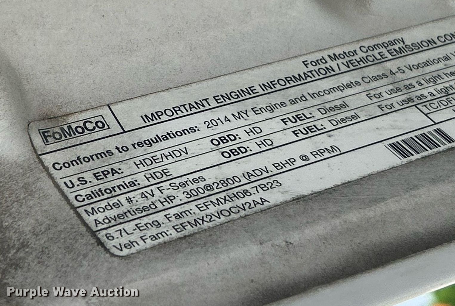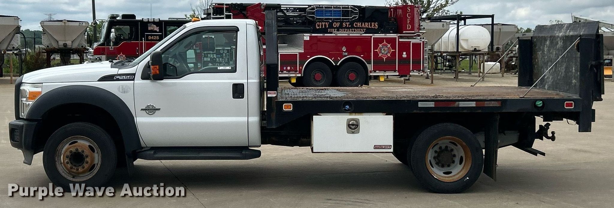 2014 Ford F550 Super Duty XL flatbed truck. Miles: 110,292 on odometer, VIN: 1FDUF5GT1EEA49260. Engine Displacement: 6.7L, Cylinders: 8, Fuel type: Diesel. Transmission Automatic. Chassis Axles: Single, Suspension: Spring, Brakes: Hydraulic, GVWR: 18,000 lbs. Interior AC, Heat, Heated mirrors, Power windows, Power locks, Auxiliary controls, Brake controller. Features Flatbed Knapheide PVMX-113C, 11' 3" L x 96" W, End gate lift Tommy Gate. Tires Size: 225/70R19.5. View repairs. Missouri title. Seller is a government entity who will be assigning and distributing the title. Please contact the seller for distribution questions. Title distribution may be delayed up to 14 days from verification of funds. City of Saint Charles, MO. Saint Charles, MO 63301
