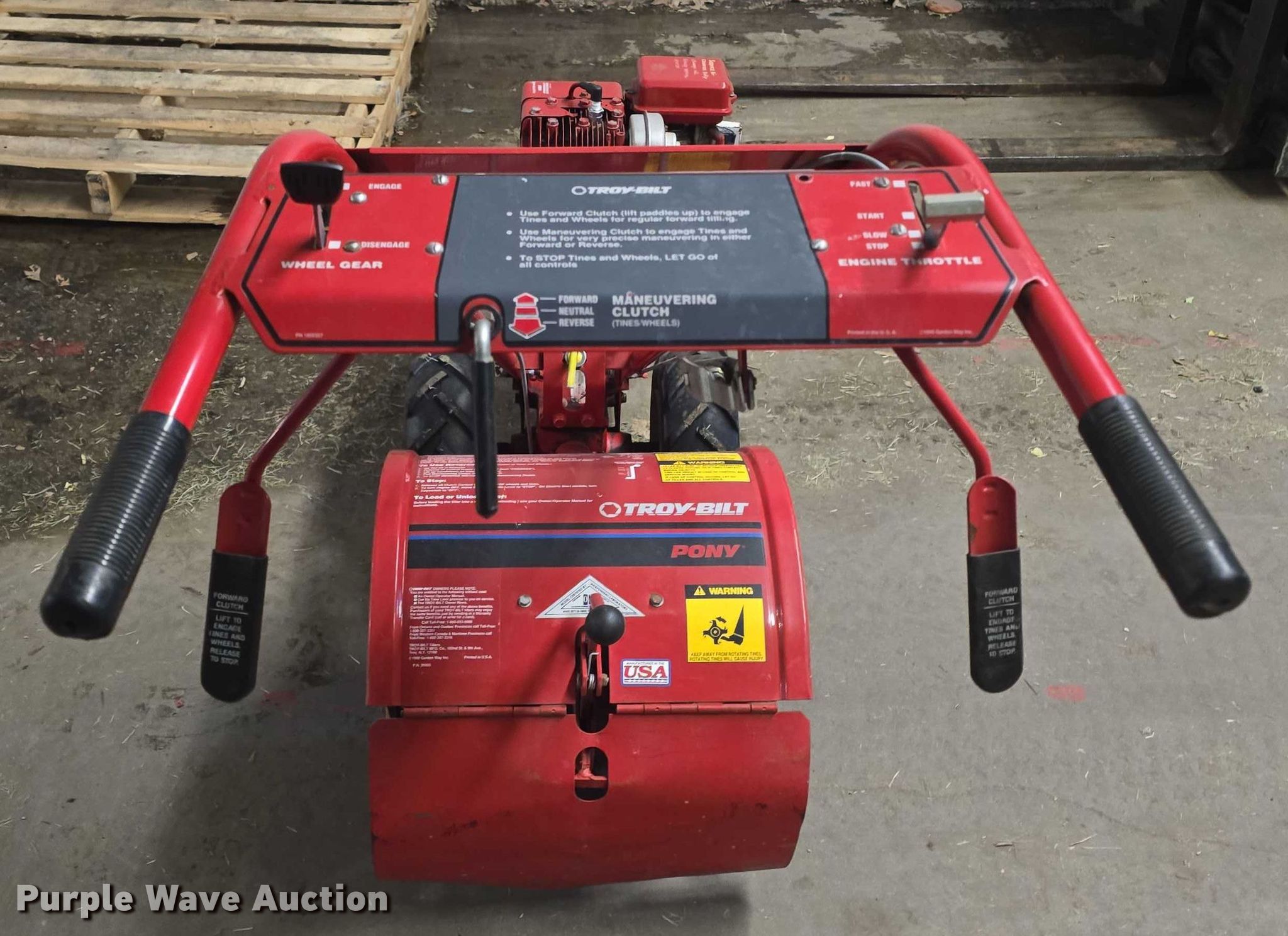 Purple Wave is selling a used Lawn and Garden in Kansas. This item is a Troy-Bilt Pony rototiller with the following: Serial: S0283514