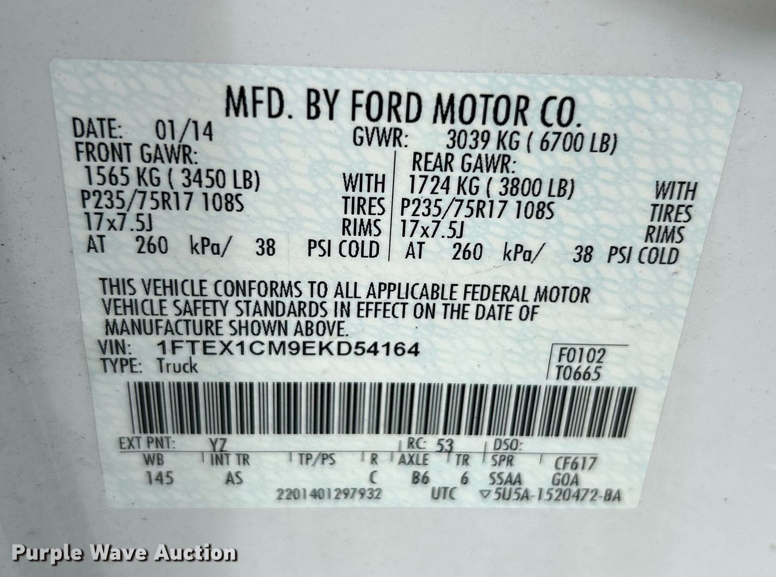 - VIN: 1FTEX1CM9EKD54164