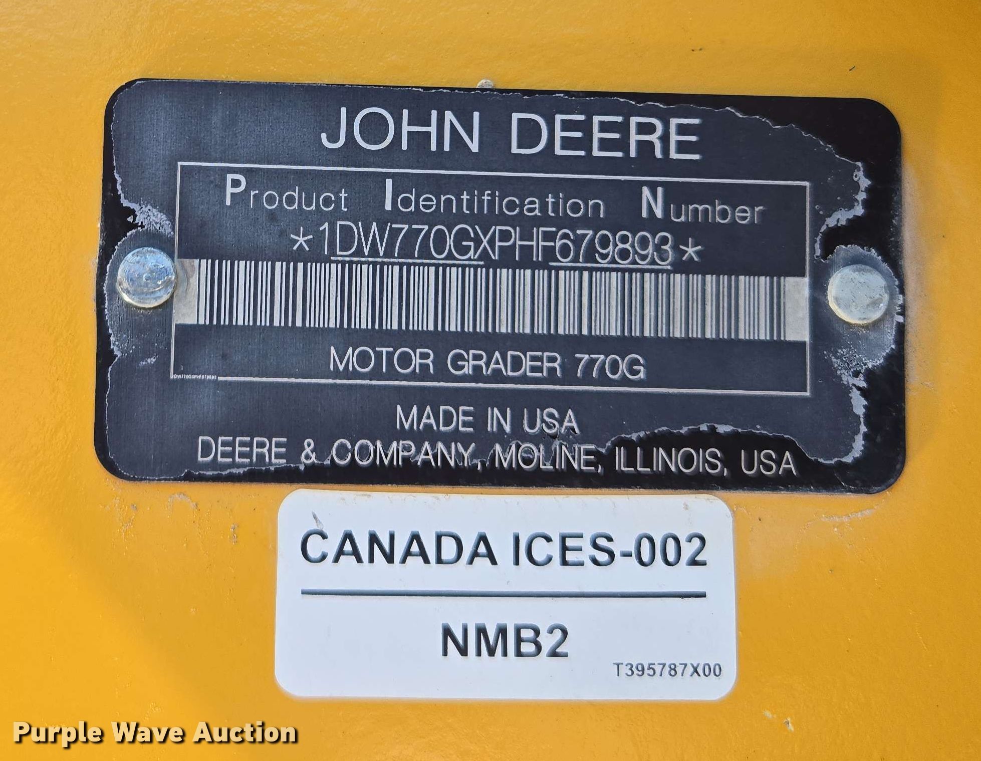 Purple Wave is selling a used Motor Grader in Missouri. This item is a 2017 John Deere 770G motor grader with the following: Hours: 8,210 on meter, Serial: 1DW770GXPHF679893