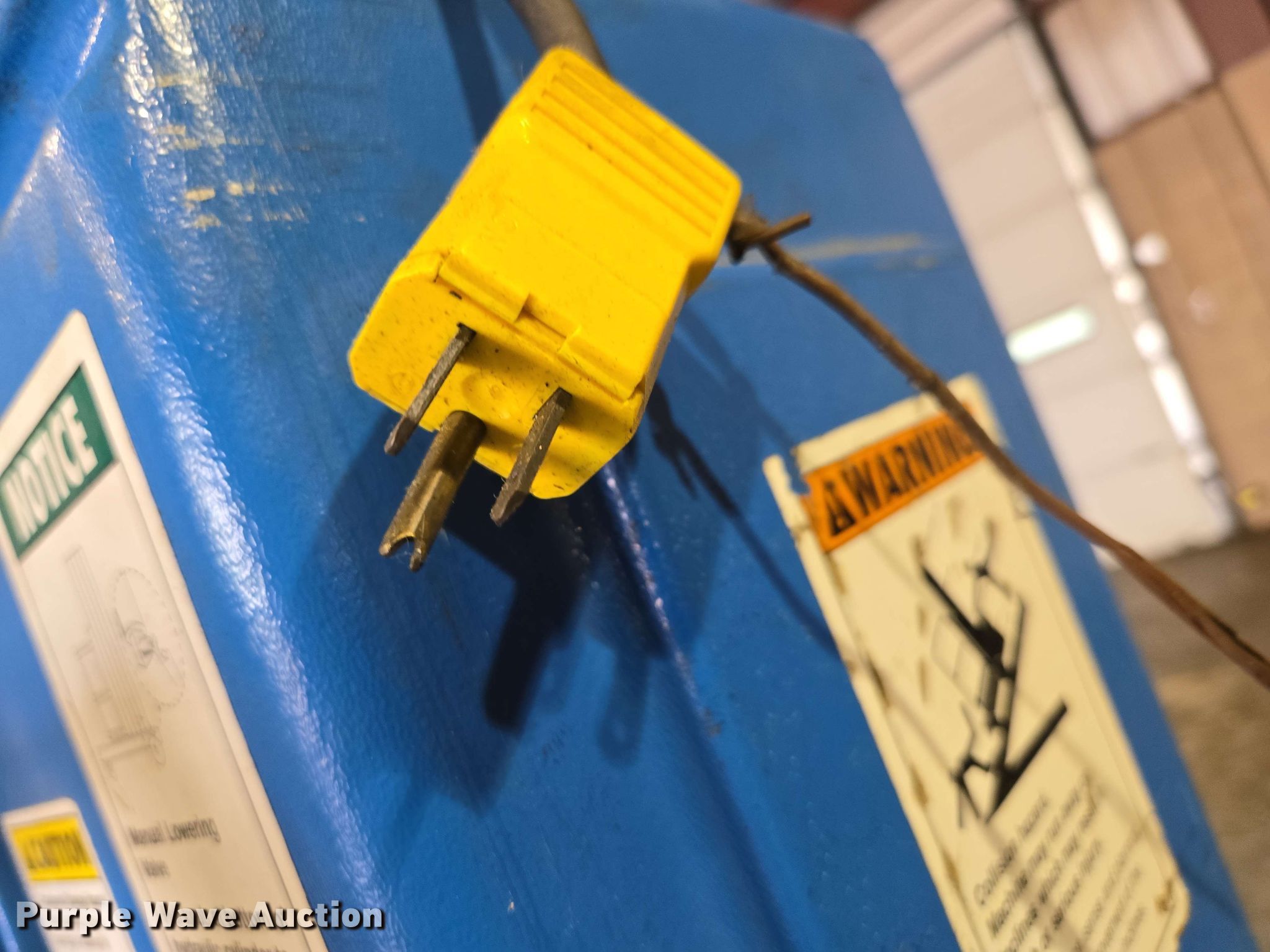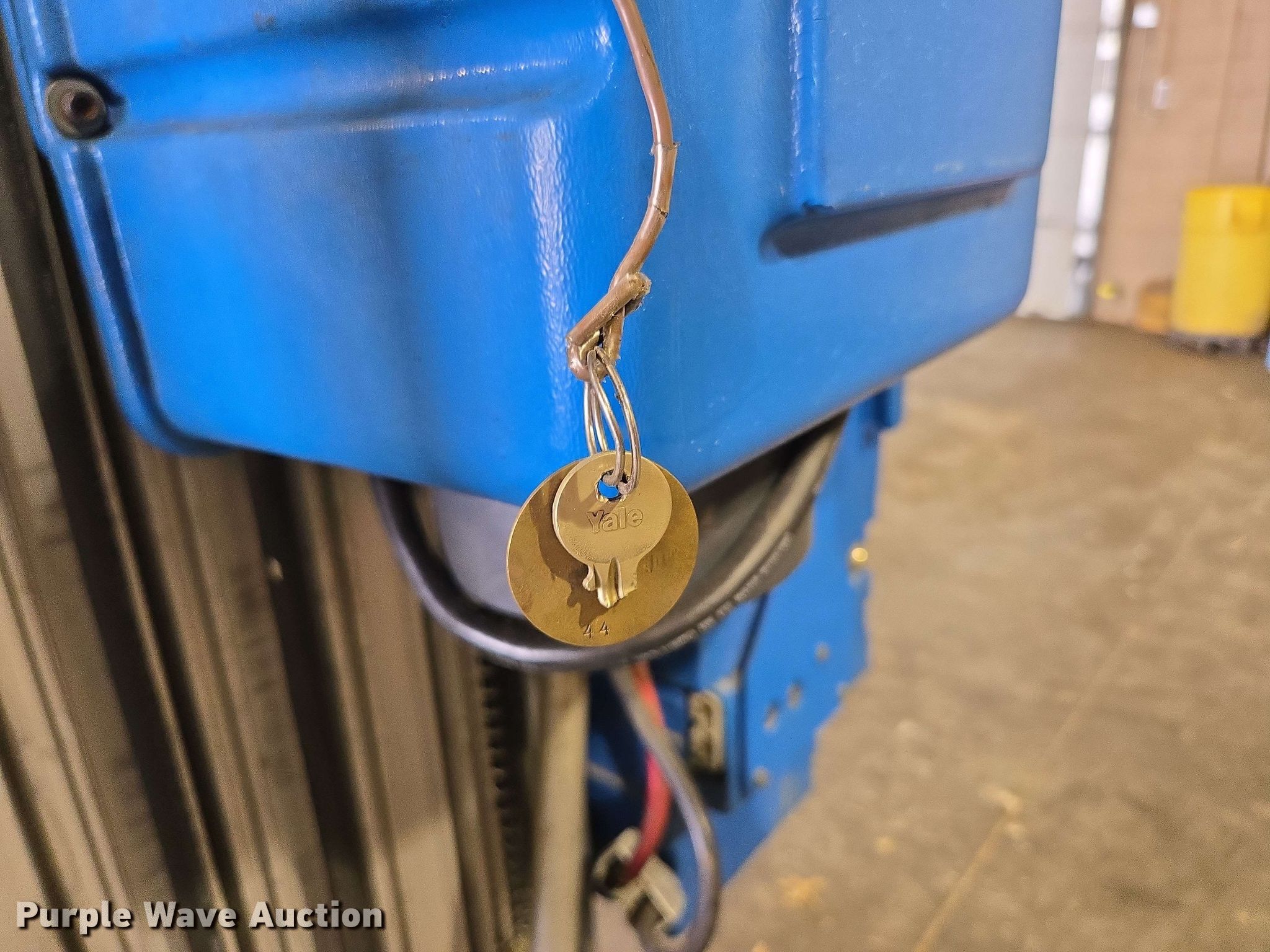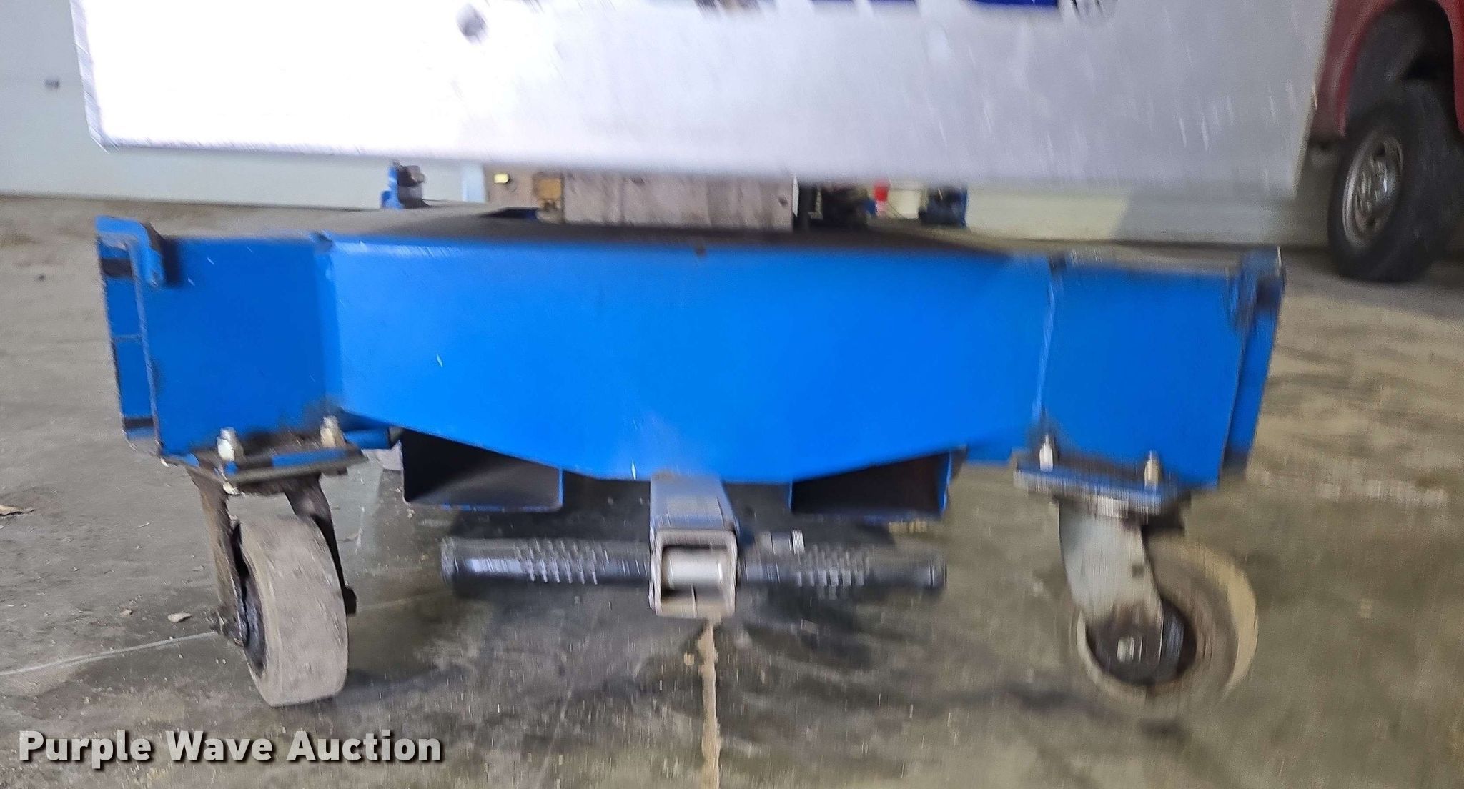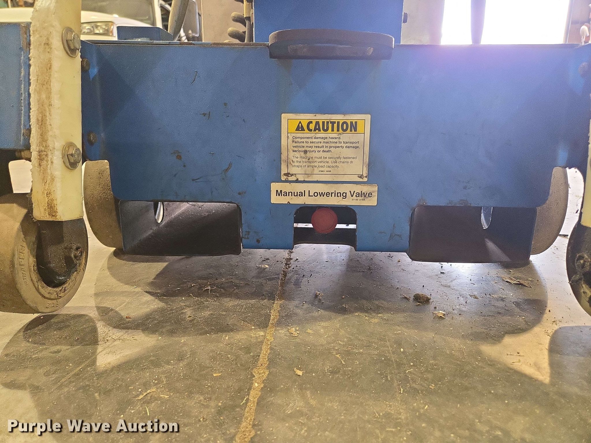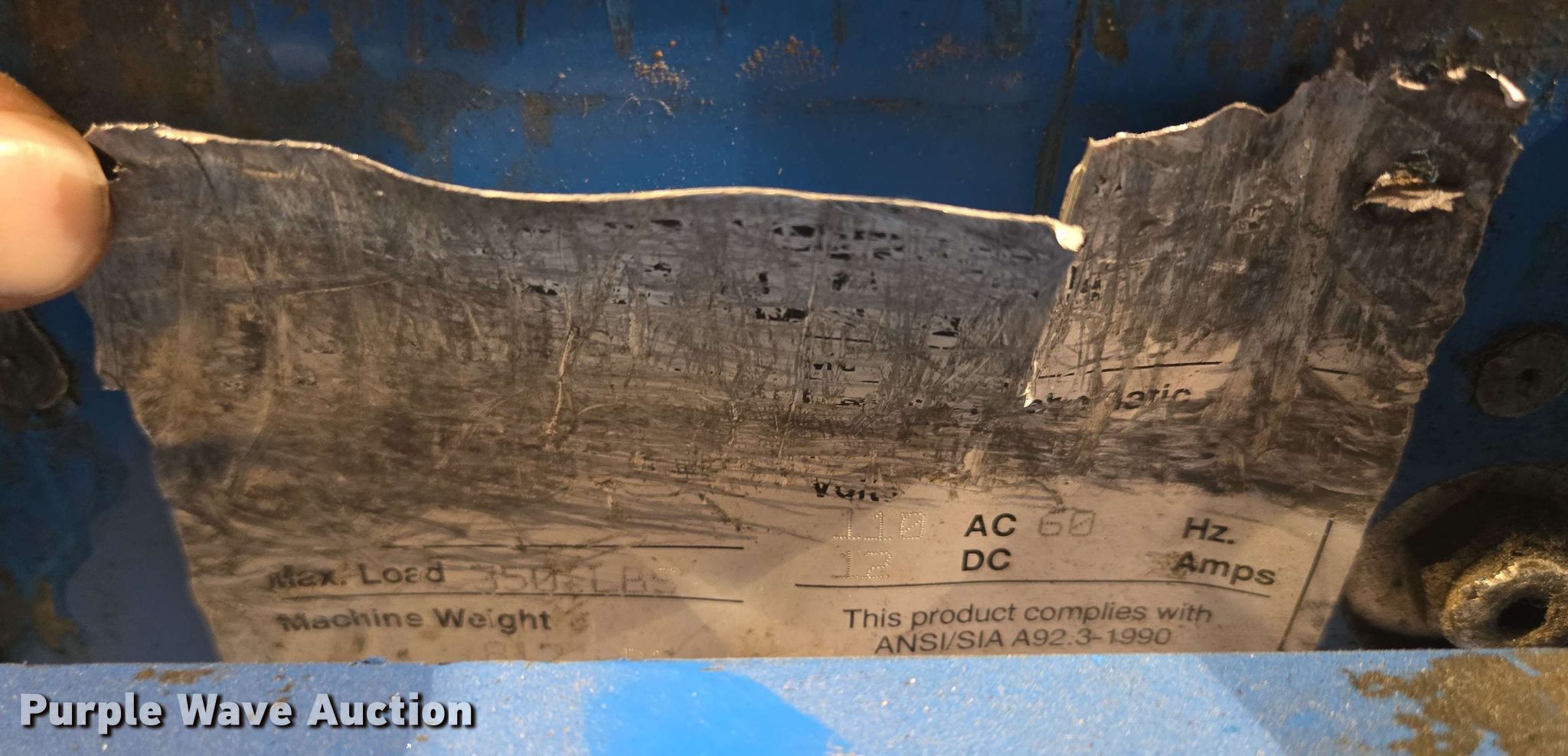 Genie AWP-25S vertical lift. Unit #: 3738. Features Maximum lift capacity: 350 lbs, Maximum lift height: 25', Platform: 25.5" L x 19.5" W, AC power outlet, Controls: Platform, Ground. Tires Solid. Notes Lifting issues, Key issues, broken inside switch, Non-operational unit. Pittsburg State University. Pittsburg, KS 66762
