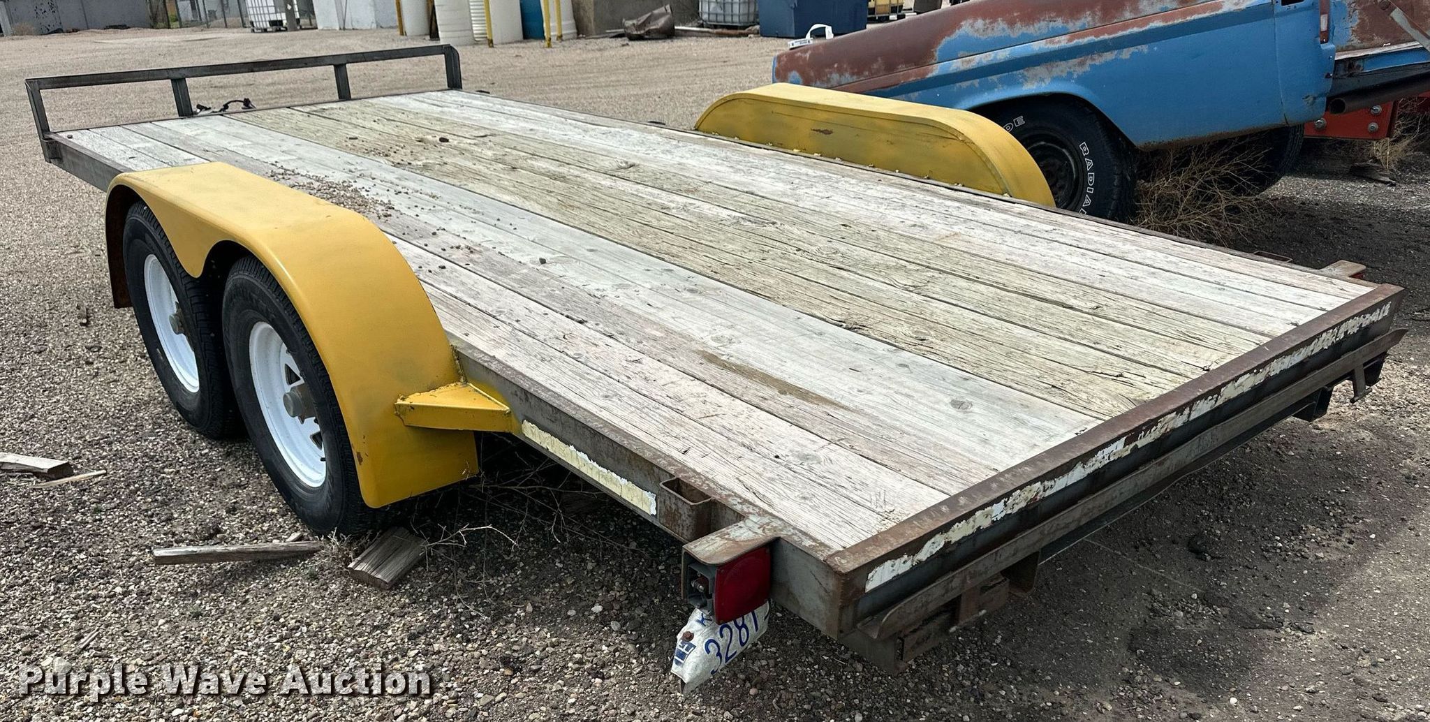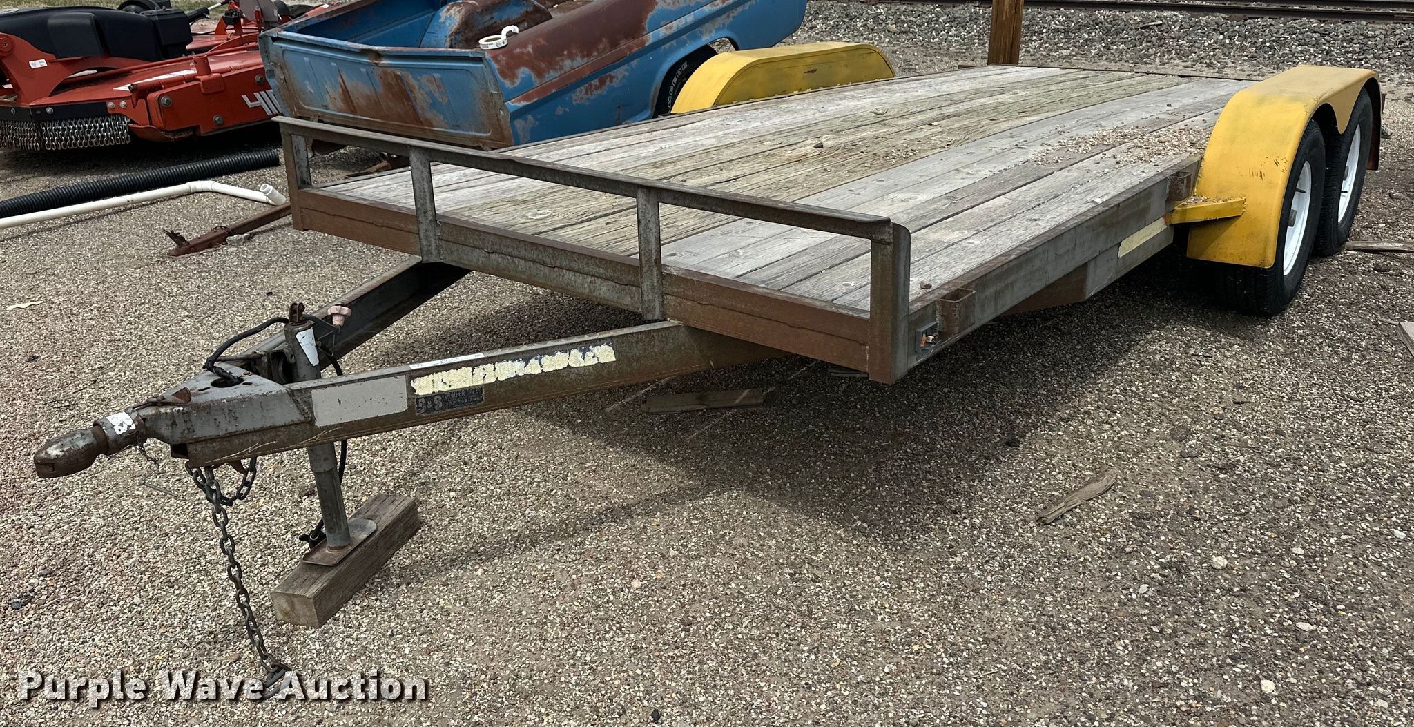 1998 Neal utility trailer. VIN: 4A0BA1623W1000611. Dimensions Overall: 20' 6" L x 104" W, Deck: 16' L x 83" W, Ramps: Manual Length: 5'. Features Deck type: Wood. Chassis Ball hitch: 2 5/16", Landing gear: Single, Suspension: Spring, Brakes: Electric, Axles: Tandem. Tires Steel wheels, Size: 235/75R15. Kansas title. Title distribution may be delayed up to 14 days from verification of funds. City of Dighton. Dighton, KS 67839