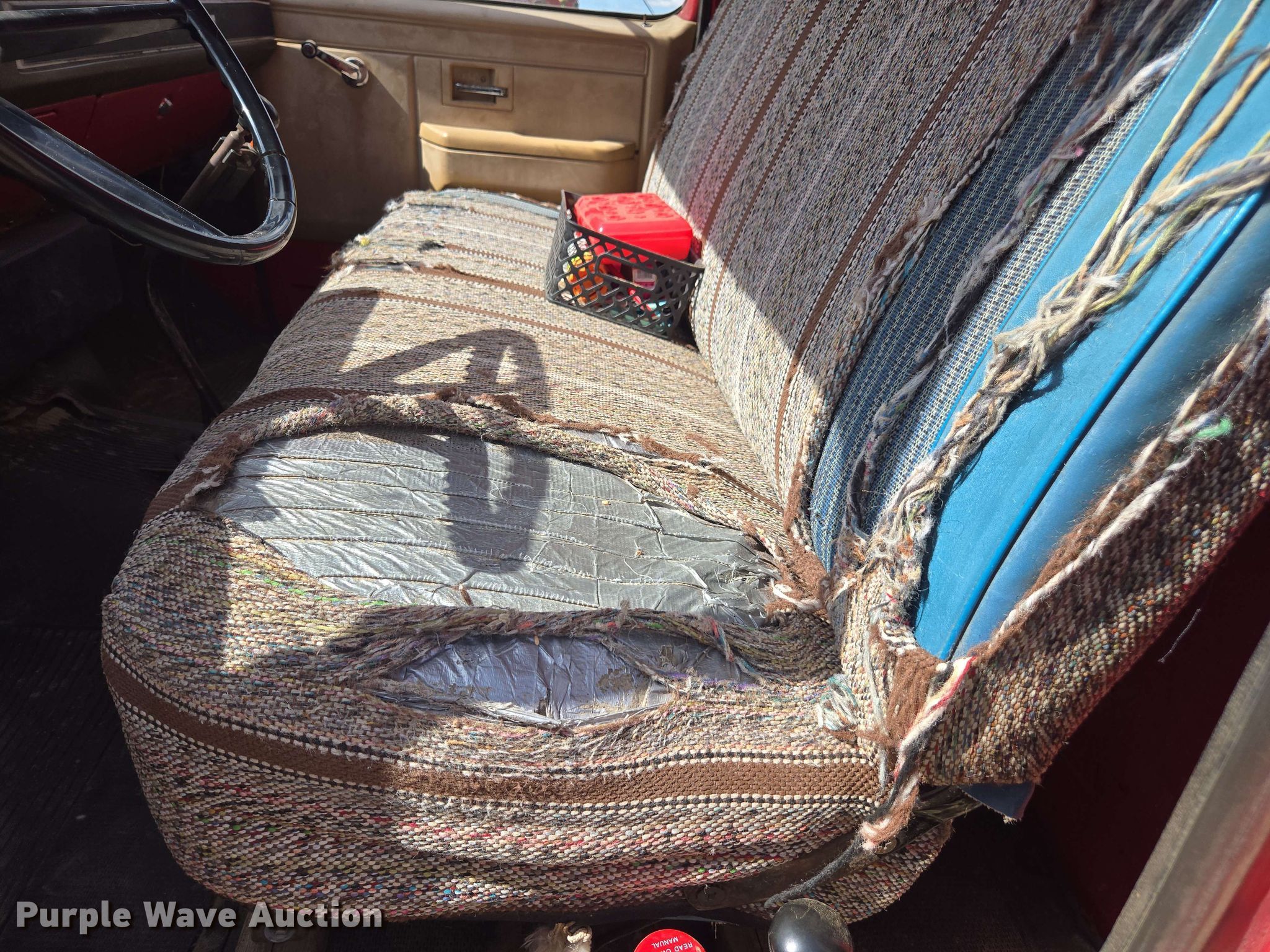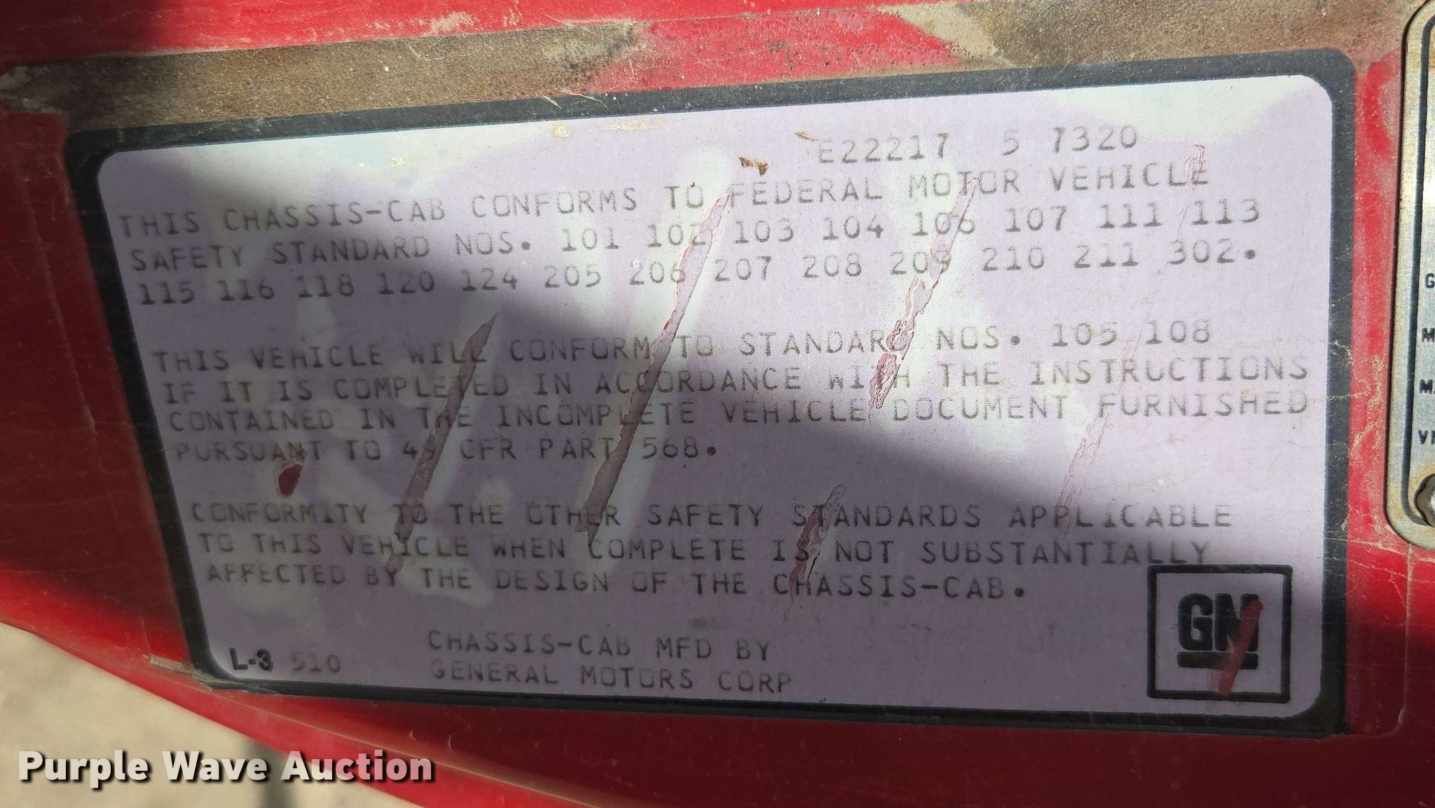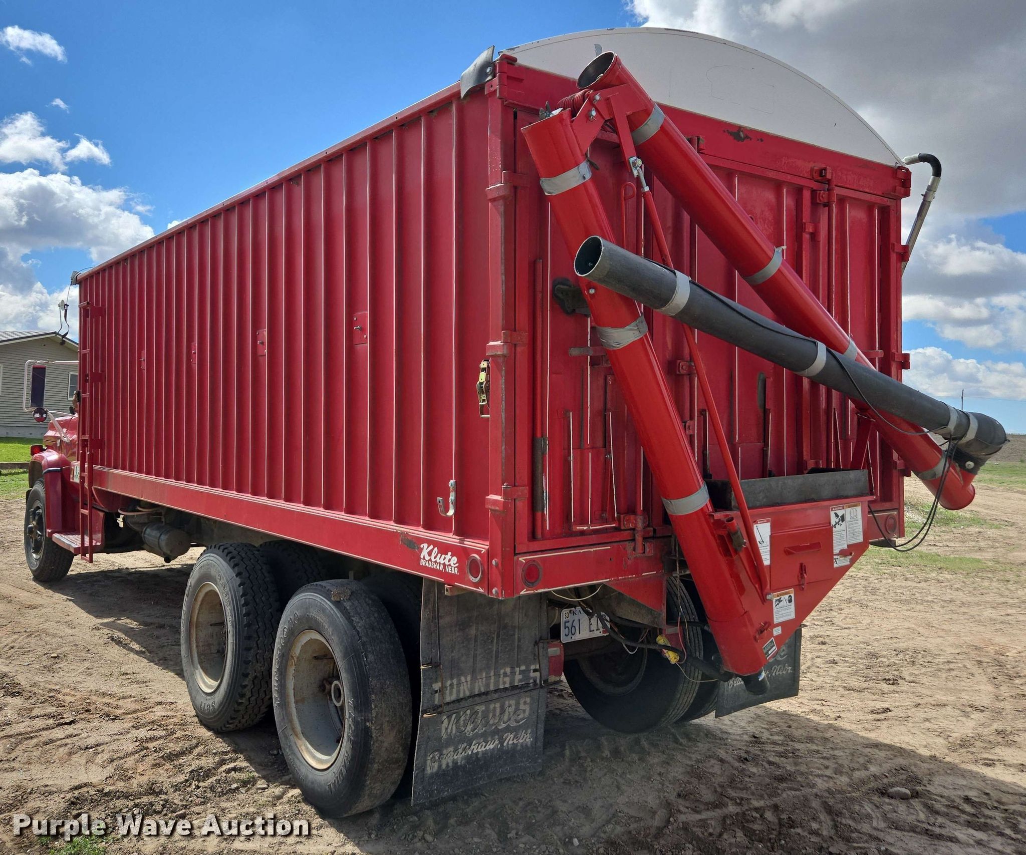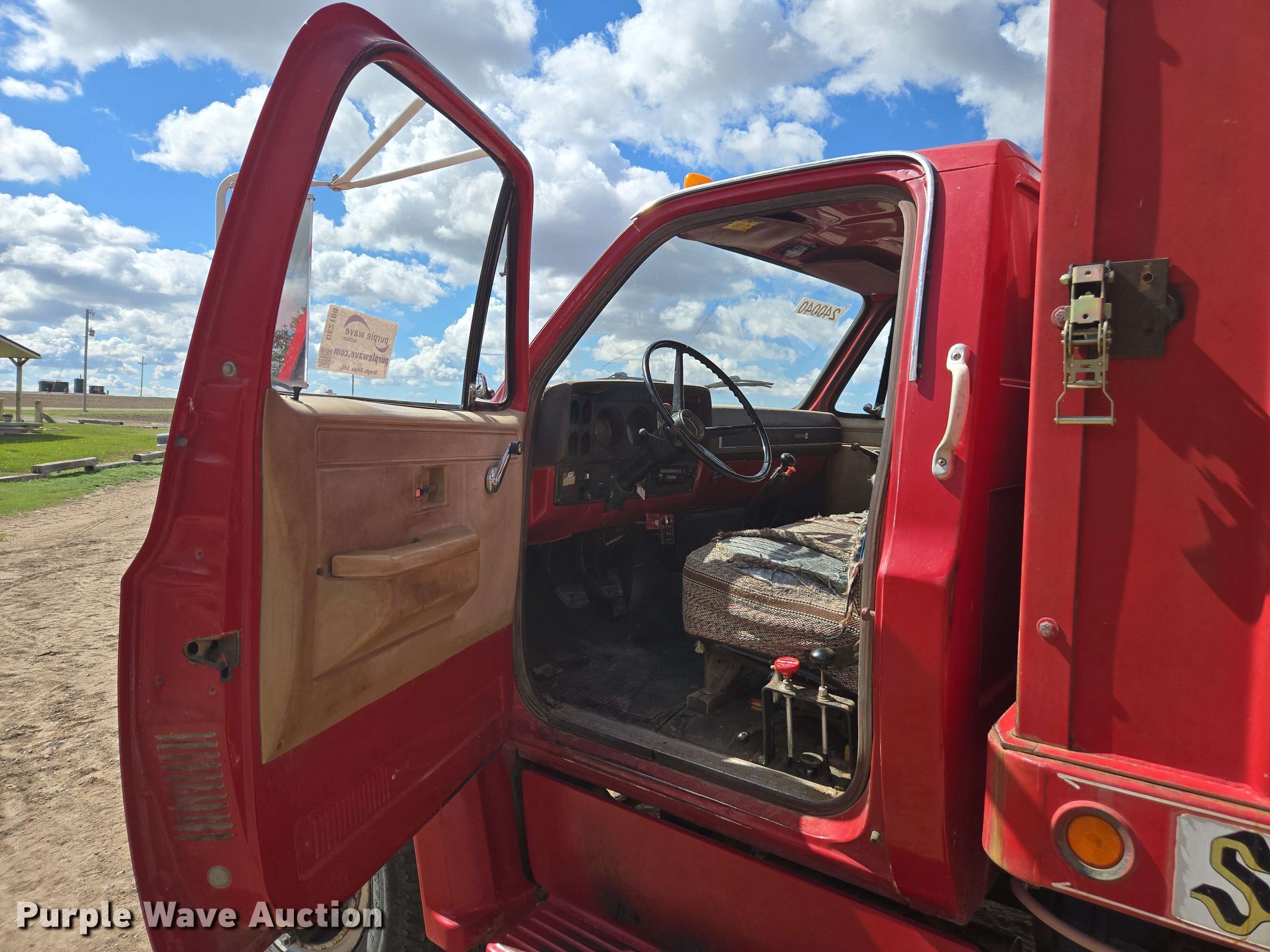 1986 GMC 7000 grain truck. Miles: 70,000 on odometer, VIN: 1GDL7D1BXGV524961. Engine Displacement: 6.0L, Cylinders: 8, Fuel type: Gas. Transmission Manual, Speed: 5, plus 2. Chassis Axles: Tandem, Suspension: Spring, Brakes: Hydraulic, PTO, GVWR: 28,000 lbs FAWR: 9,000 lbs, RAWR: 19,000 lbs. Interior Heat. Features Dump bed Scott, 20' L x 96" W, Side height: 62", Bed type: Steel, Roll tarp, Ram: Dual, End gate: Manual, Auger Westfield Industries. Tires Front: 10.00-20, Rear: 9.00R20. Notes Windshield chipped or cracked. Kansas rebuilt salvage antique title. Title distribution may be delayed up to 30 days from verification of funds. Flipse Hay Service. Oakley, KS 67748