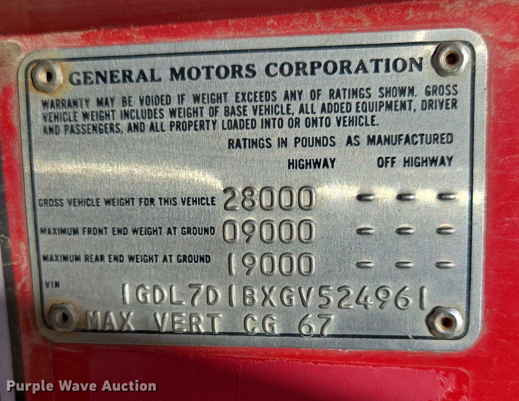 Purple Wave is selling a used Grain Truck in Kansas. This item is a 1986 GMC 7000 grain truck with the following: Miles: 70,000 on odometer, VIN: 1GDL7D1BXGV524961