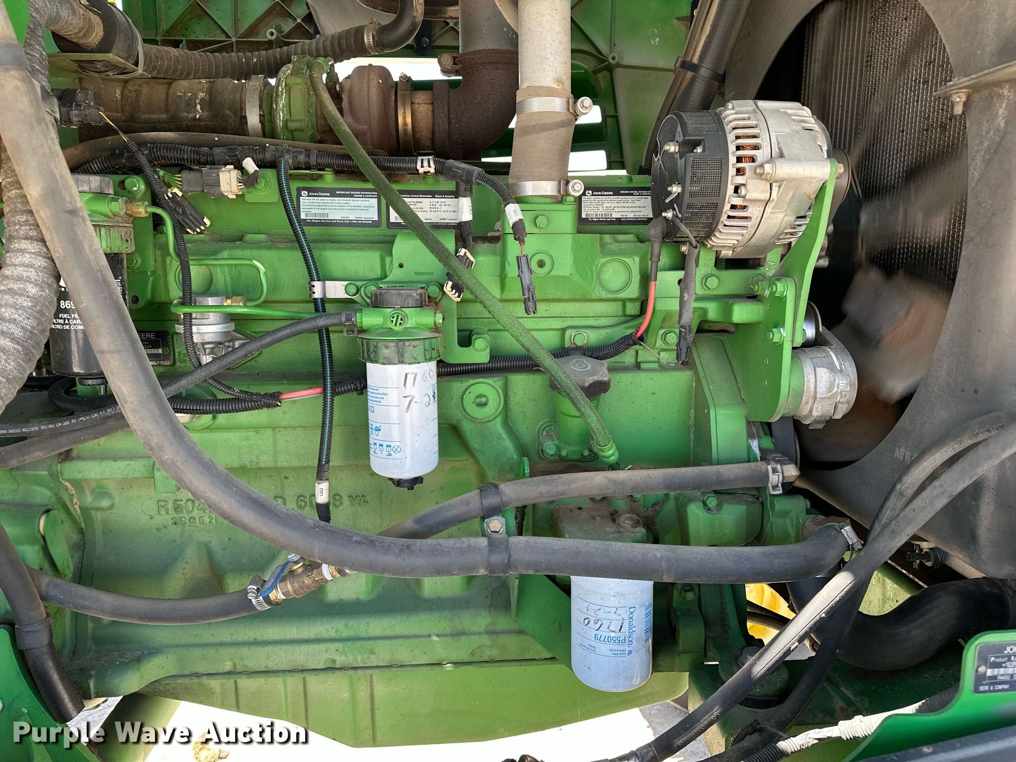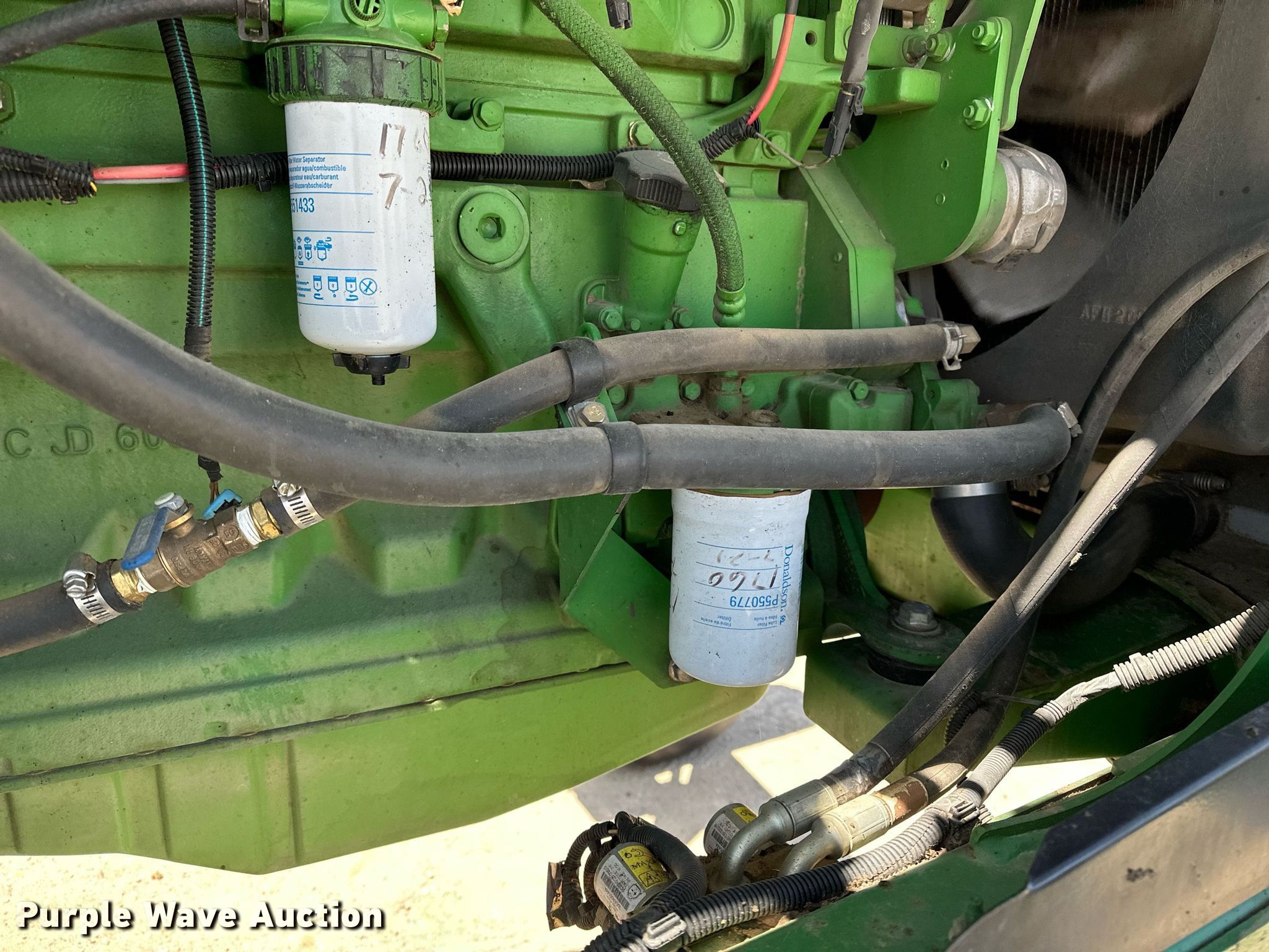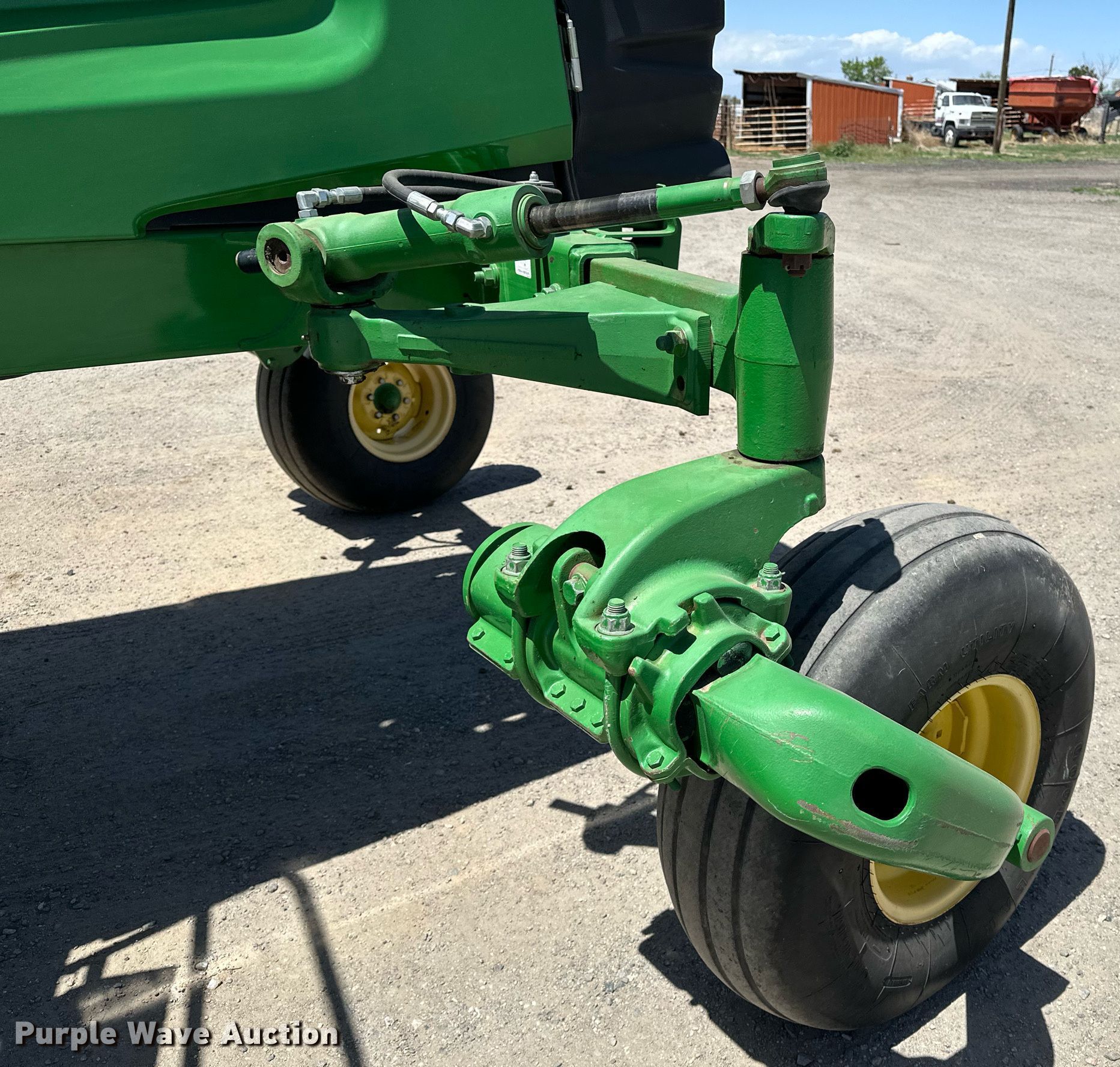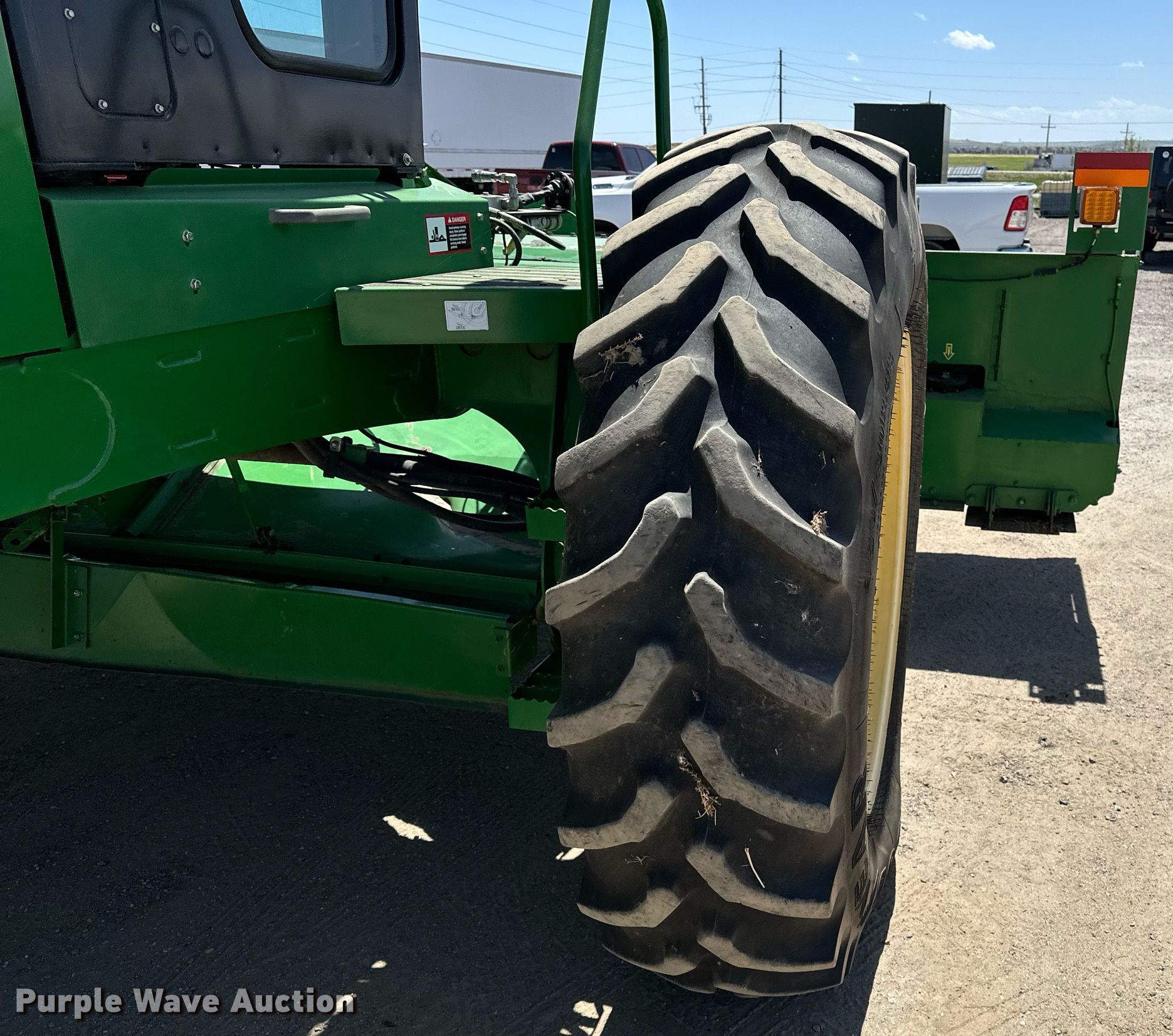 2013 John Deere R450 swather / windrower. Engine hours: 1,976 on meter, Header hours: 1,254 on meter, Serial: 1E0R450XVDD391213. Engine John Deere 6068HE051, Serial: PE6068L916524, Displacement: 6.8L, Cylinders: 6, Fuel type: Diesel. Transmission Hydrostatic, Two speed travel. Operators station AC, Heat. Features Electronics Auto steer John Deere AutoTrac Universal Steering Kit 200, Head Disc, John Deere 995, Serial: 1E00995TLDD390539, Width: 16', Hydraulic head tilt, Conditioners: Flail, Suitcase weights: 4. Tires Front: 480/80R38, Rear: 14L-16.1SL. Notes Dash warning indicator: ECU 97.03, ECU 97.04, MHC-Platform reverse switch stuck closed, MHC-Quick stop switch stuck closed. Elmer Hamann Retirement Auction. Aurora, CO 80011