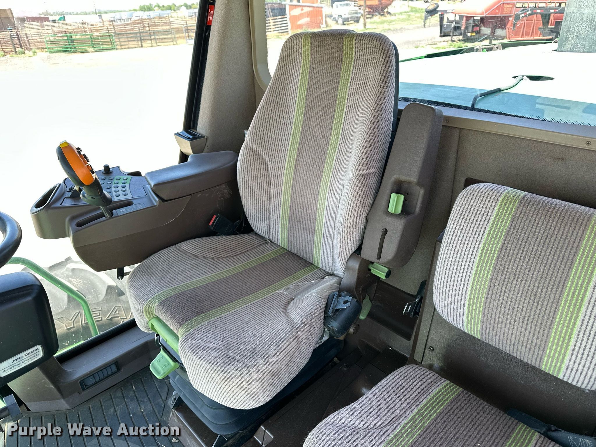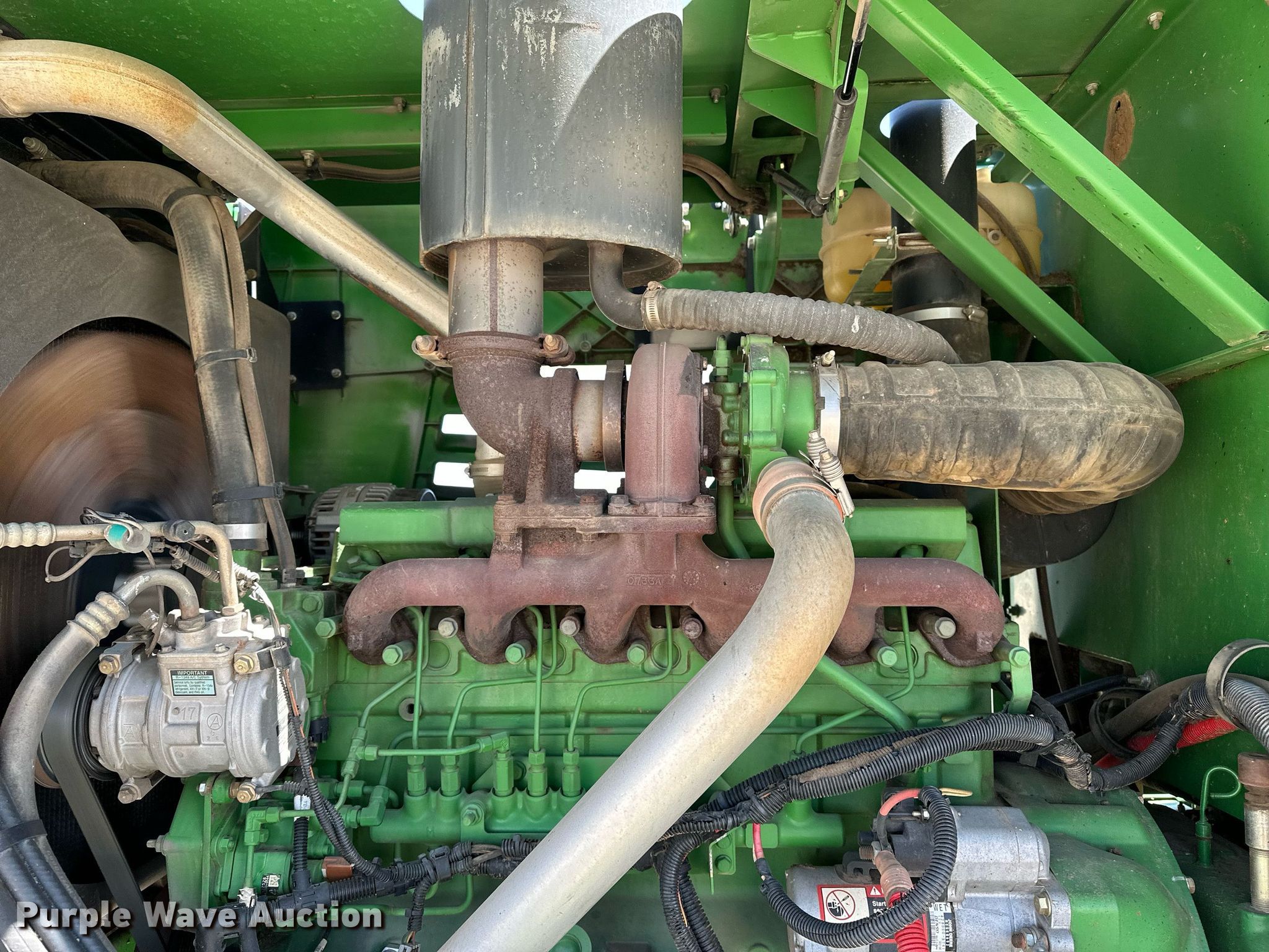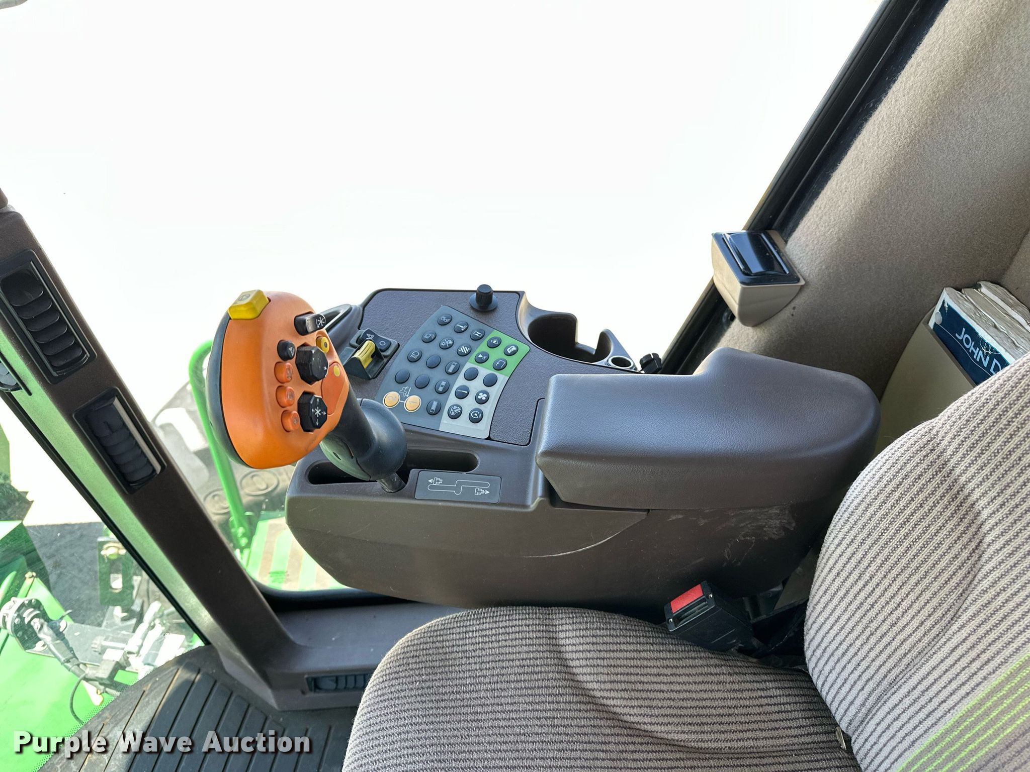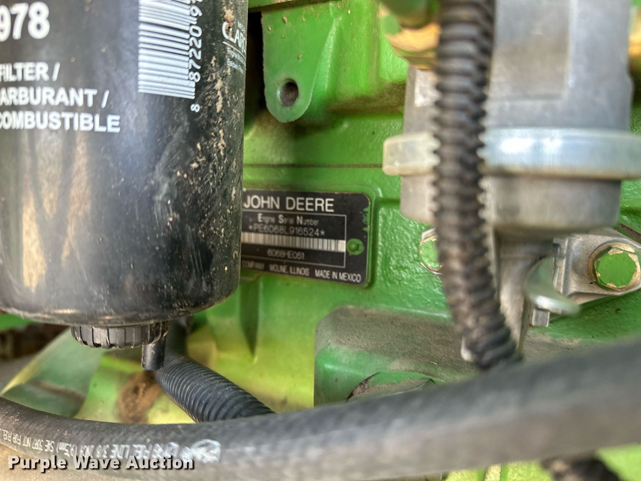 2013 John Deere R450 swather / windrower. Engine hours: 1,976 on meter, Header hours: 1,254 on meter, Serial: 1E0R450XVDD391213. Engine John Deere 6068HE051, Serial: PE6068L916524, Displacement: 6.8L, Cylinders: 6, Fuel type: Diesel. Transmission Hydrostatic, Two speed travel. Operators station AC, Heat. Features Electronics Auto steer John Deere AutoTrac Universal Steering Kit 200, Head Disc, John Deere 995, Serial: 1E00995TLDD390539, Width: 16', Hydraulic head tilt, Conditioners: Flail, Suitcase weights: 4. Tires Front: 480/80R38, Rear: 14L-16.1SL. Notes Dash warning indicator: ECU 97.03, ECU 97.04, MHC-Platform reverse switch stuck closed, MHC-Quick stop switch stuck closed. Elmer Hamann Retirement Auction. Aurora, CO 80011