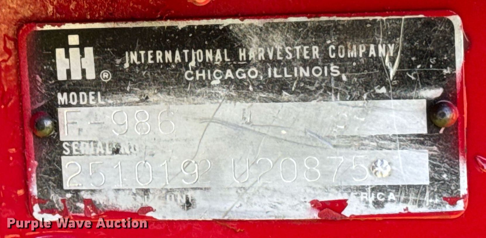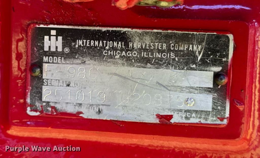 Purple Wave is selling a used Tractor in Iowa. This item is a 1979 International F-986 tractor with the following: Hours: 2,743 on meter, Serial: 2510192 U20875
